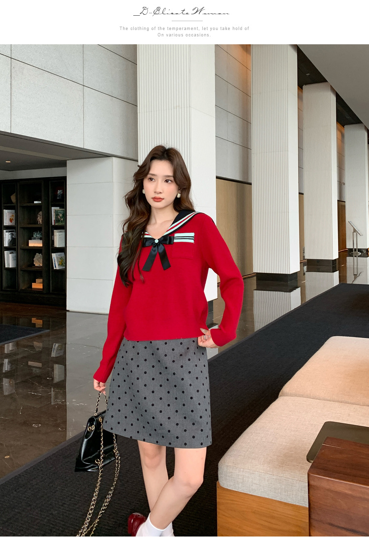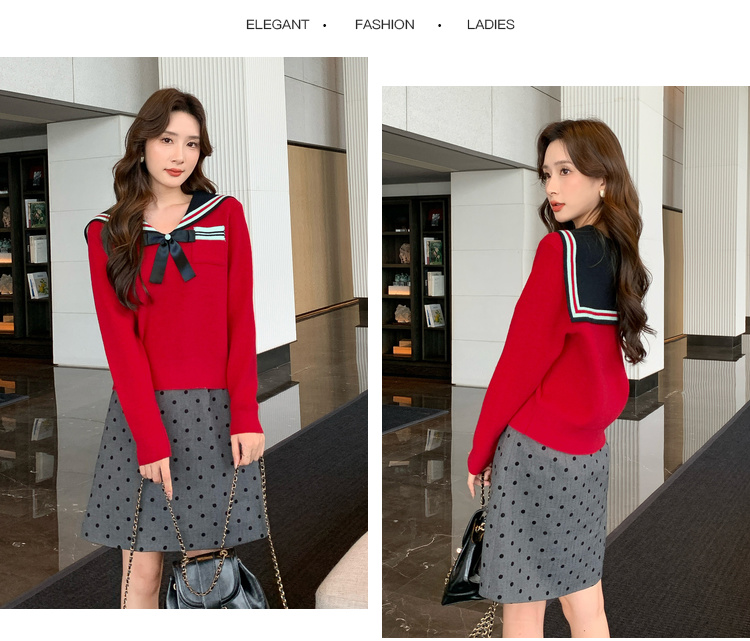 奢姿2025秋季新款大码女装拼色小香风上衣胖妹妹减龄海军领针织衫9843663145