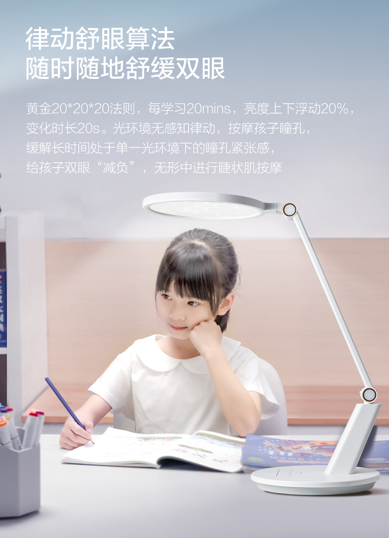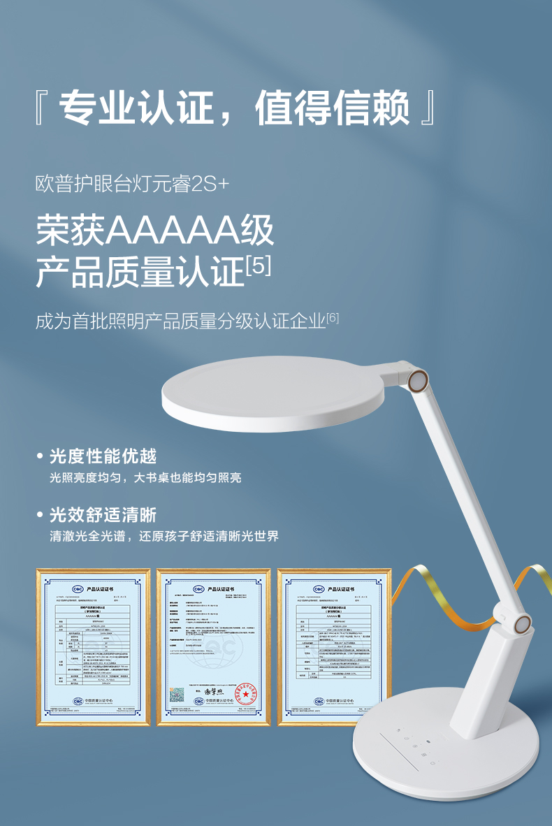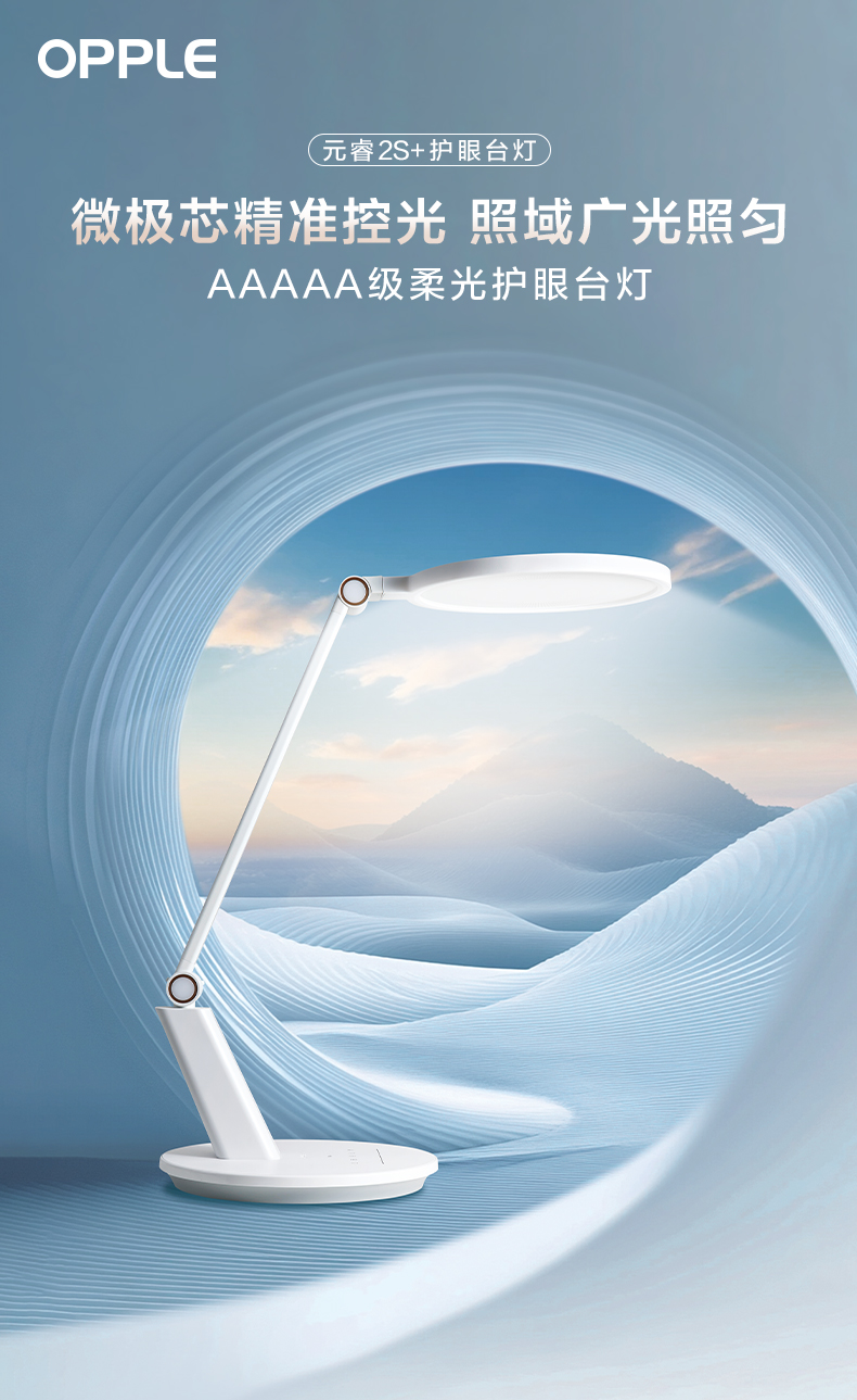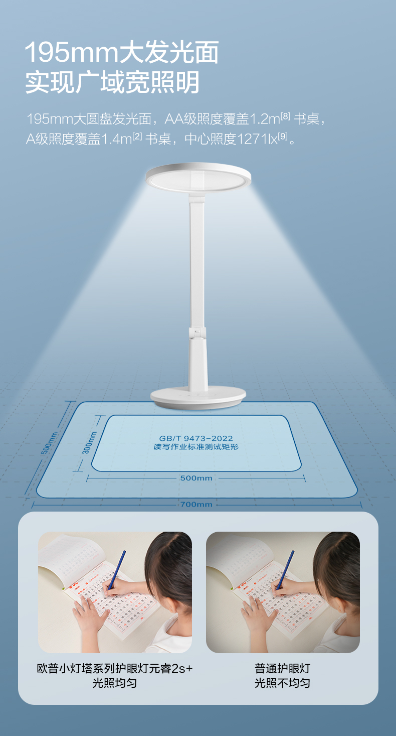 欧普小灯塔(OPPLE)清澈光全光谱护眼灯书桌立式台灯学生儿童房阅读学习读写圆形元睿2S+