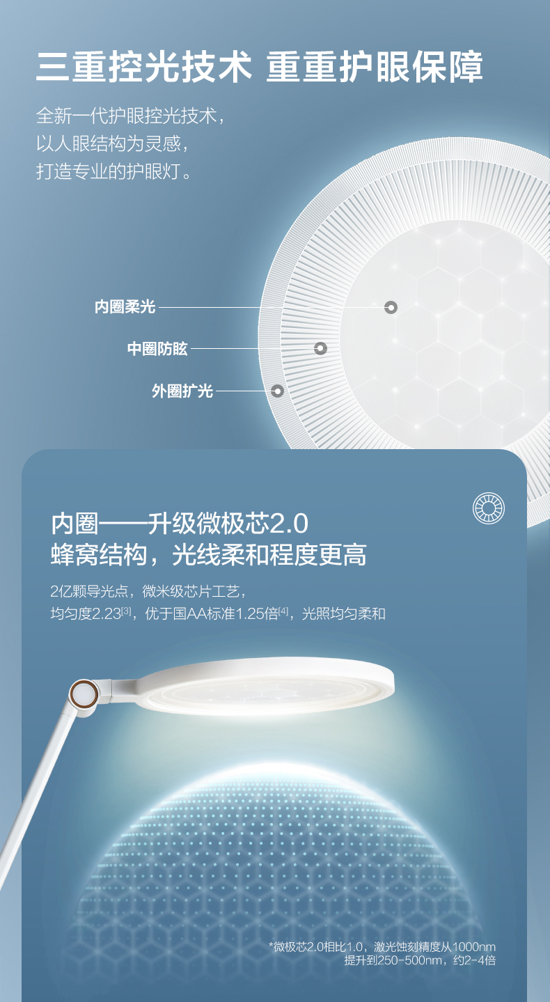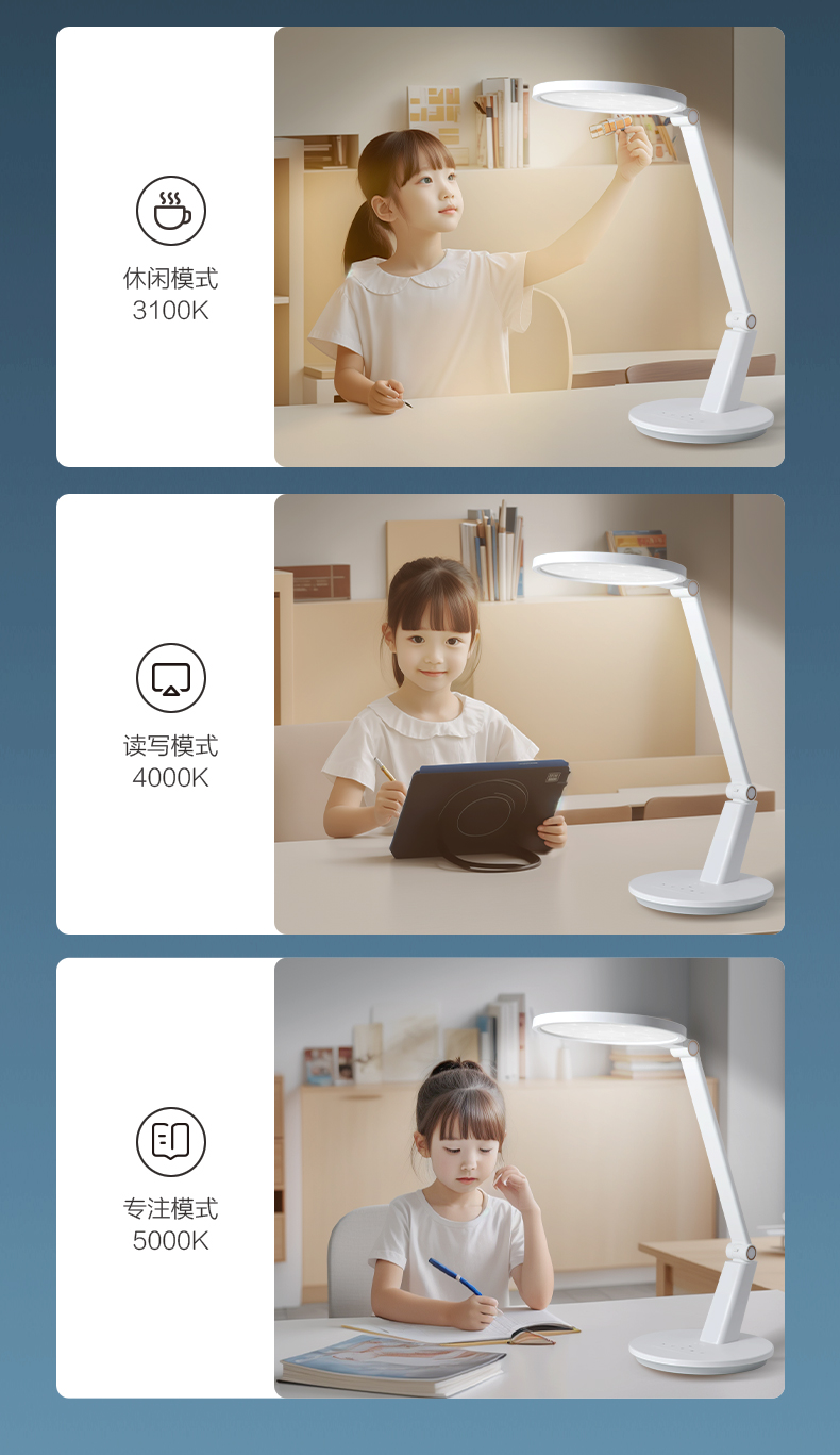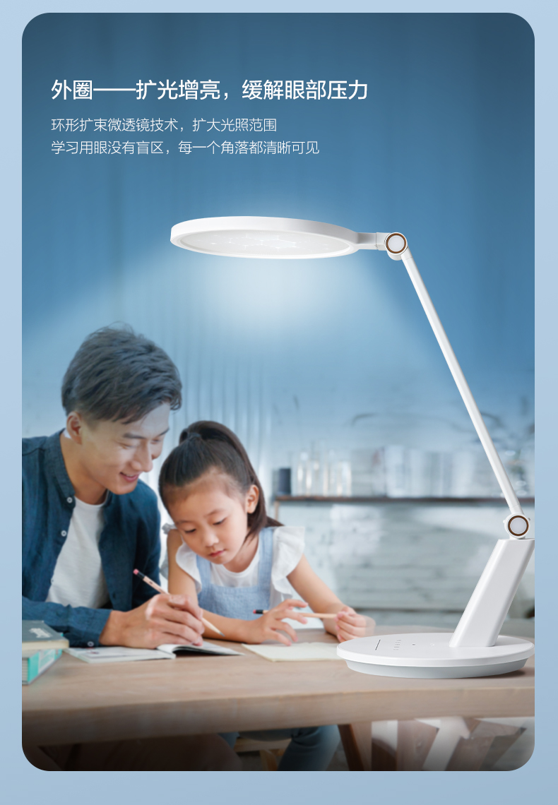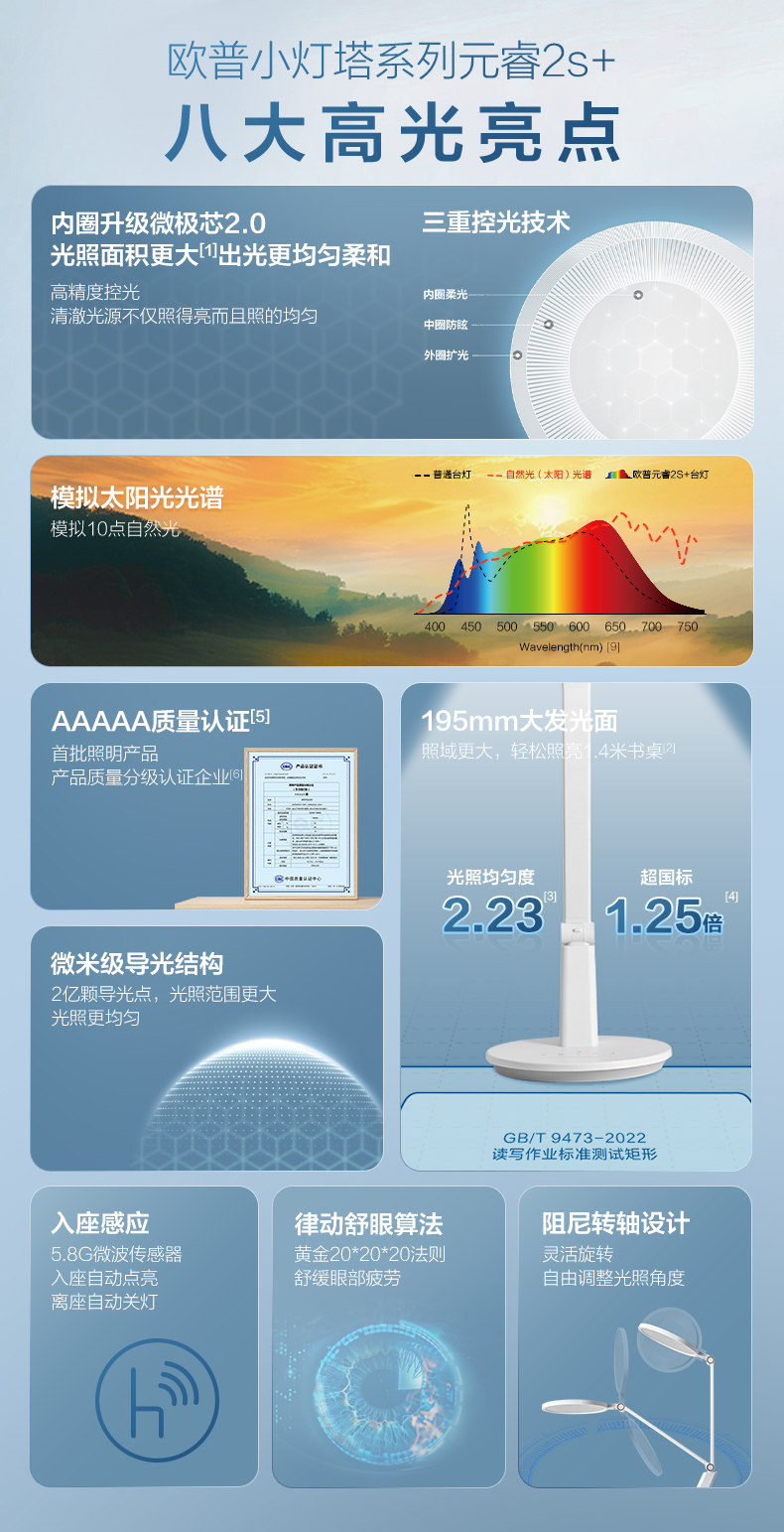 欧普小灯塔(OPPLE)清澈光全光谱护眼灯书桌立式台灯学生儿童房阅读学习读写圆形元睿2S+
