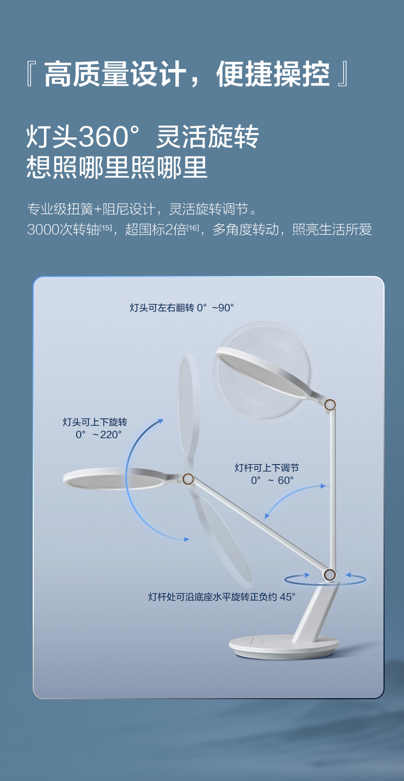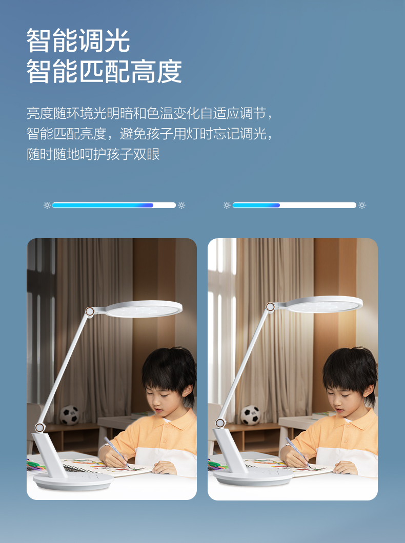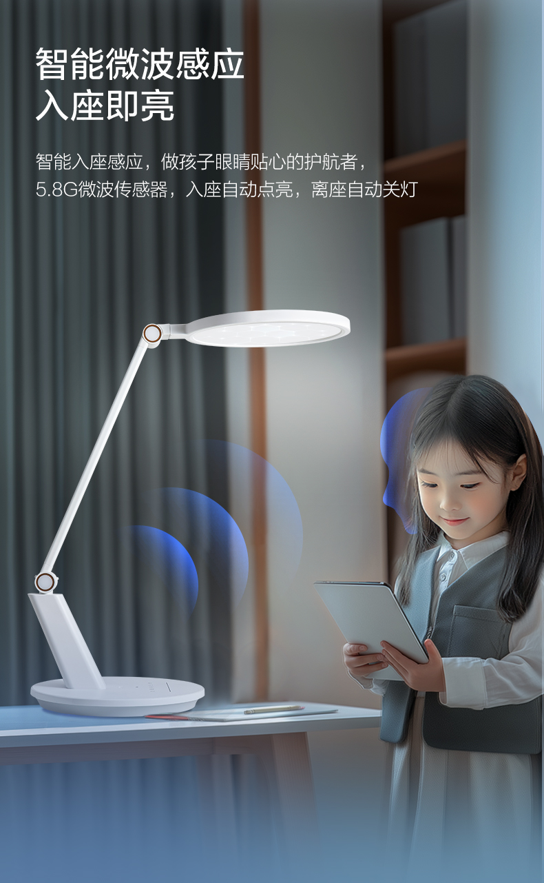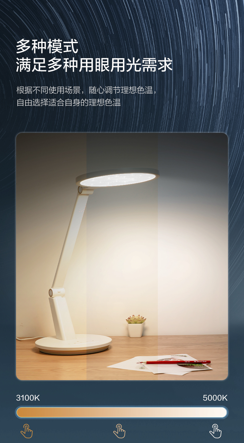 欧普小灯塔(OPPLE)清澈光全光谱护眼灯书桌立式台灯学生儿童房阅读学习读写圆形元睿2S+