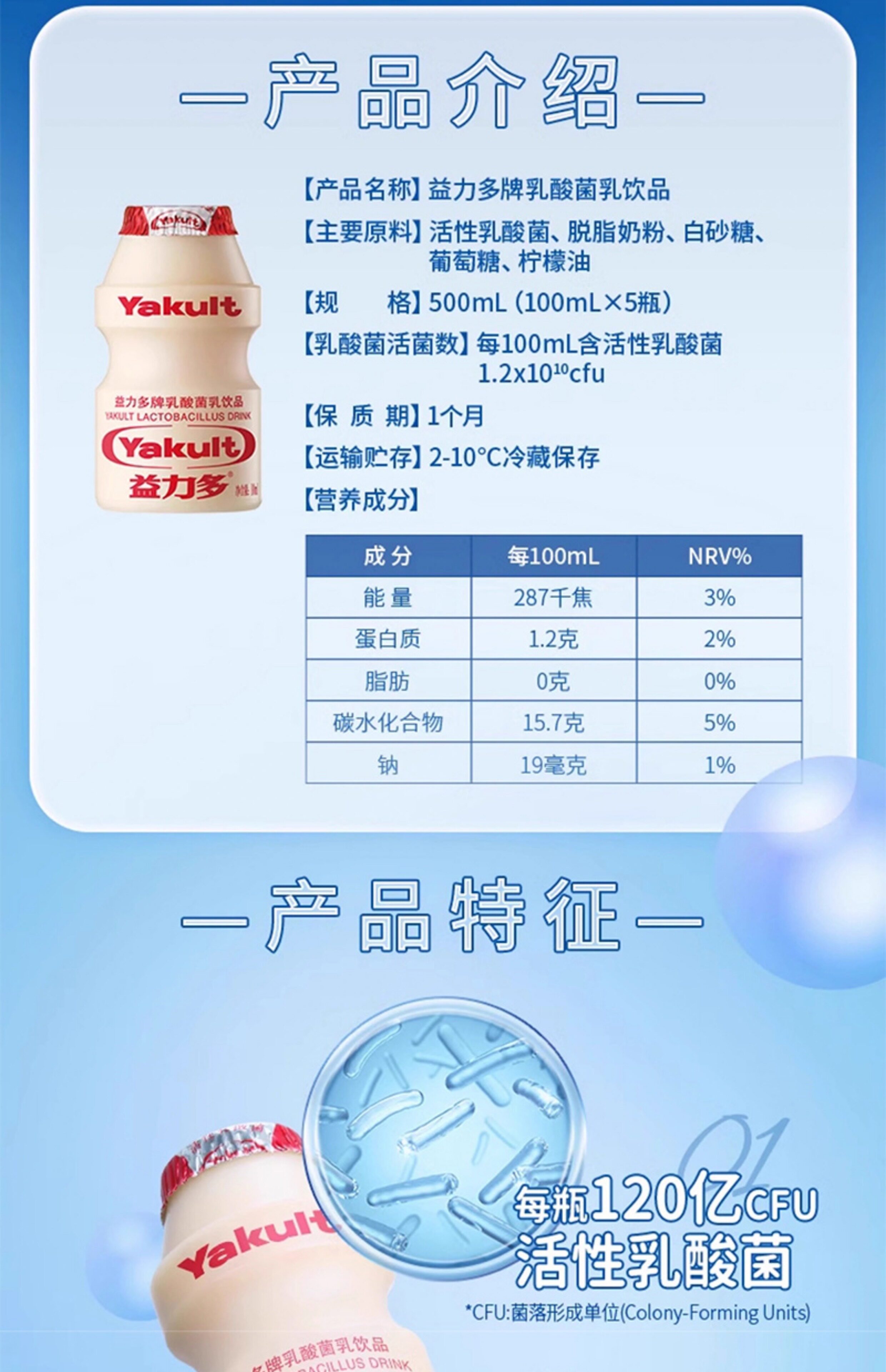 益力多乳酸菌乳饮品(原味)100ML*5