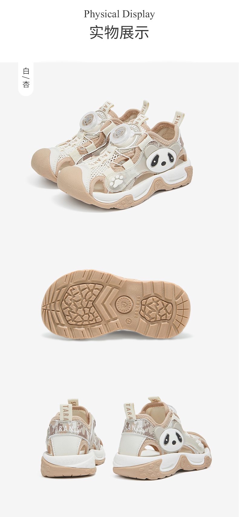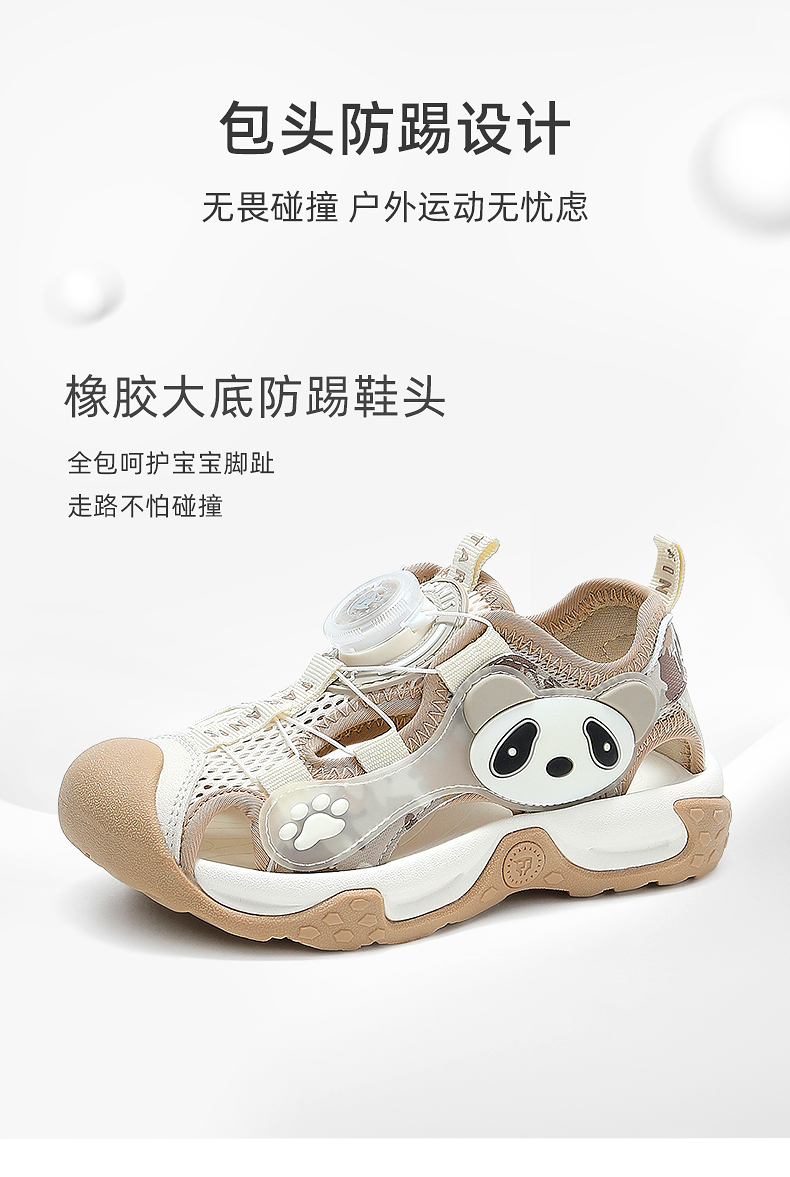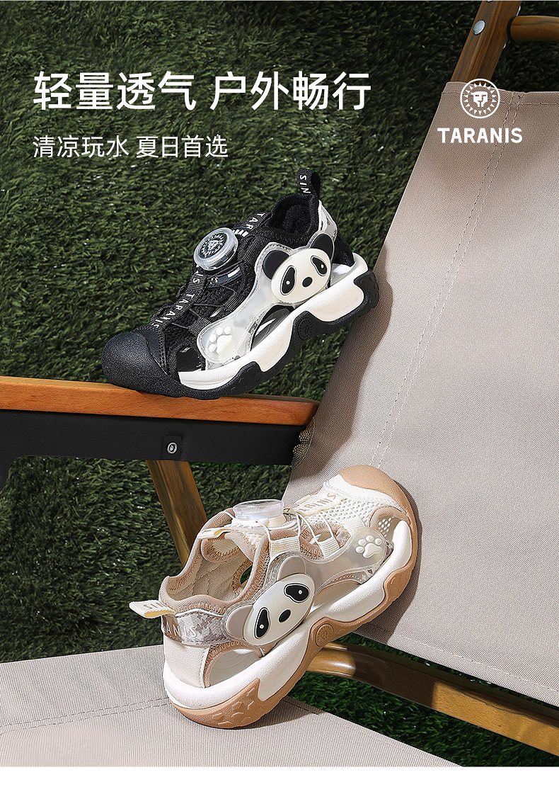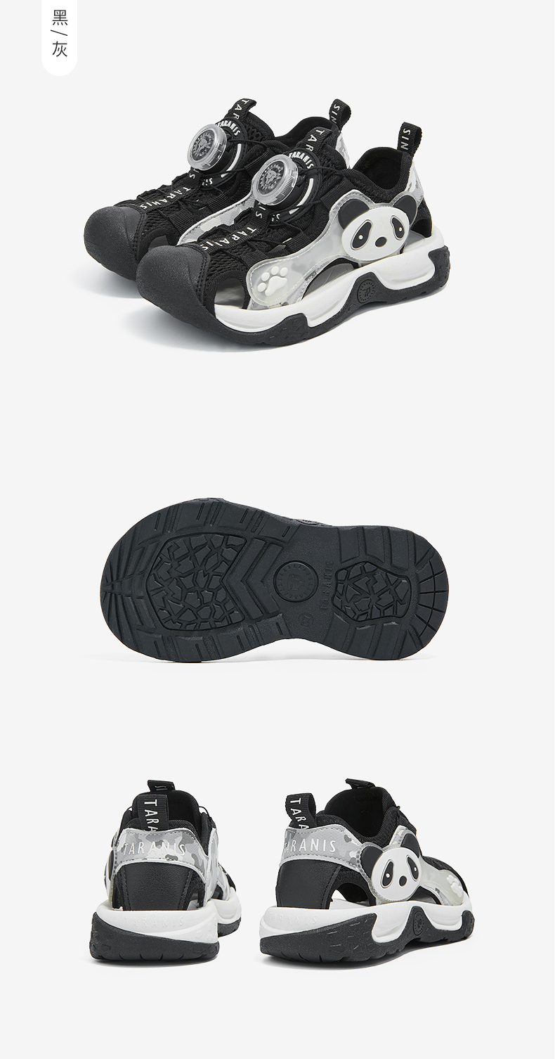 泰兰尼斯童鞋夏季新款男童运动凉鞋熊猫包头防踢沙滩户外儿童鞋子 T07X5B5670
