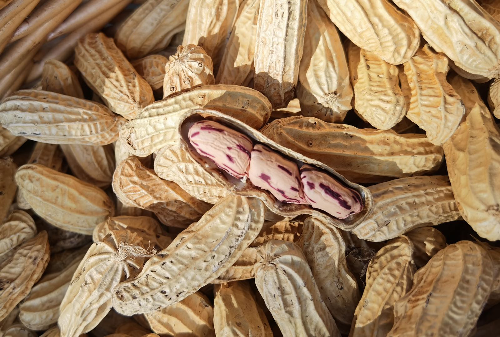 野地种植,花生果壳坚硬,纹路深壑清晰。