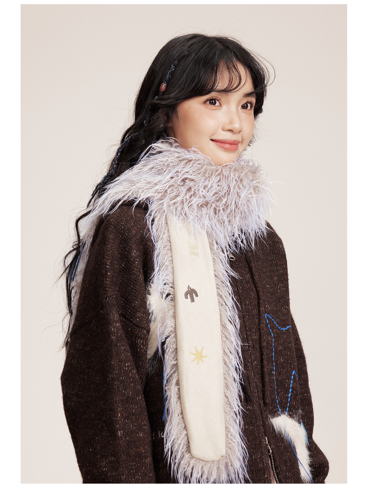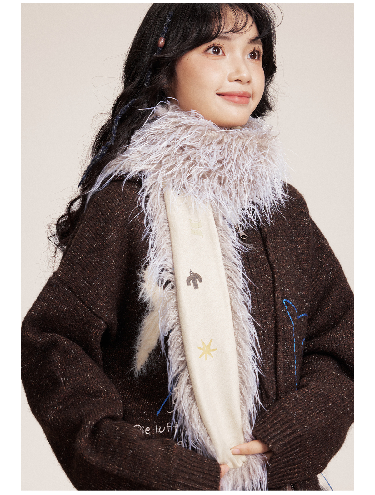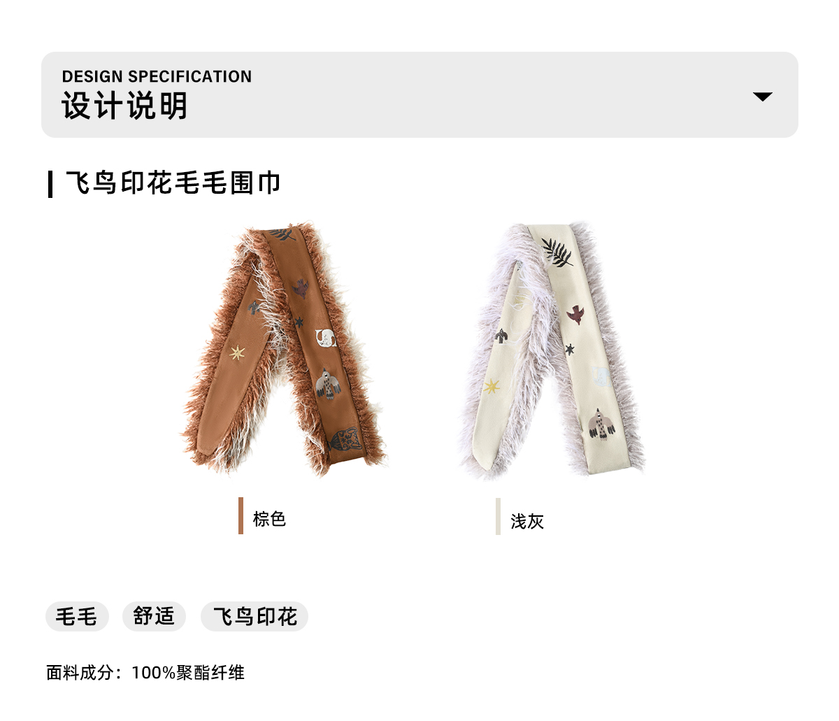 早乙女惠子saotome/STMPSWJ141145/飞鸟印花毛毛围巾