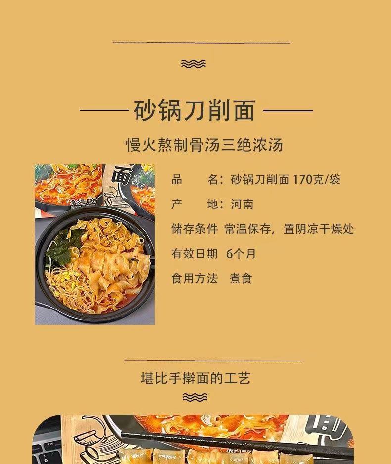 宛禾砂锅刀削面170克赠宛禾火锅面
