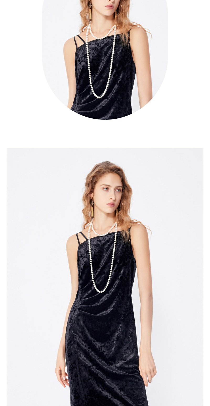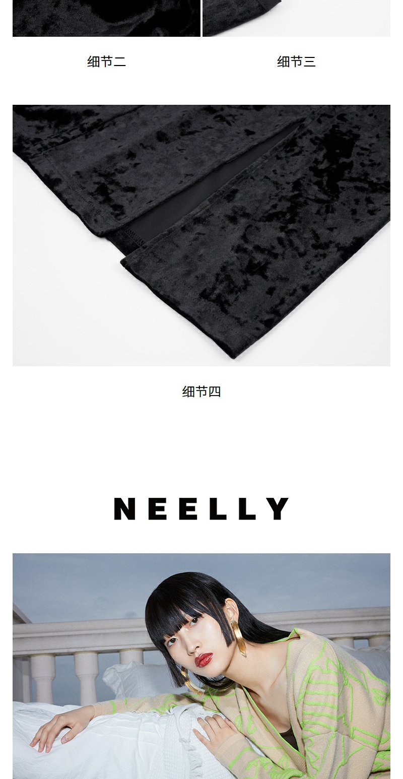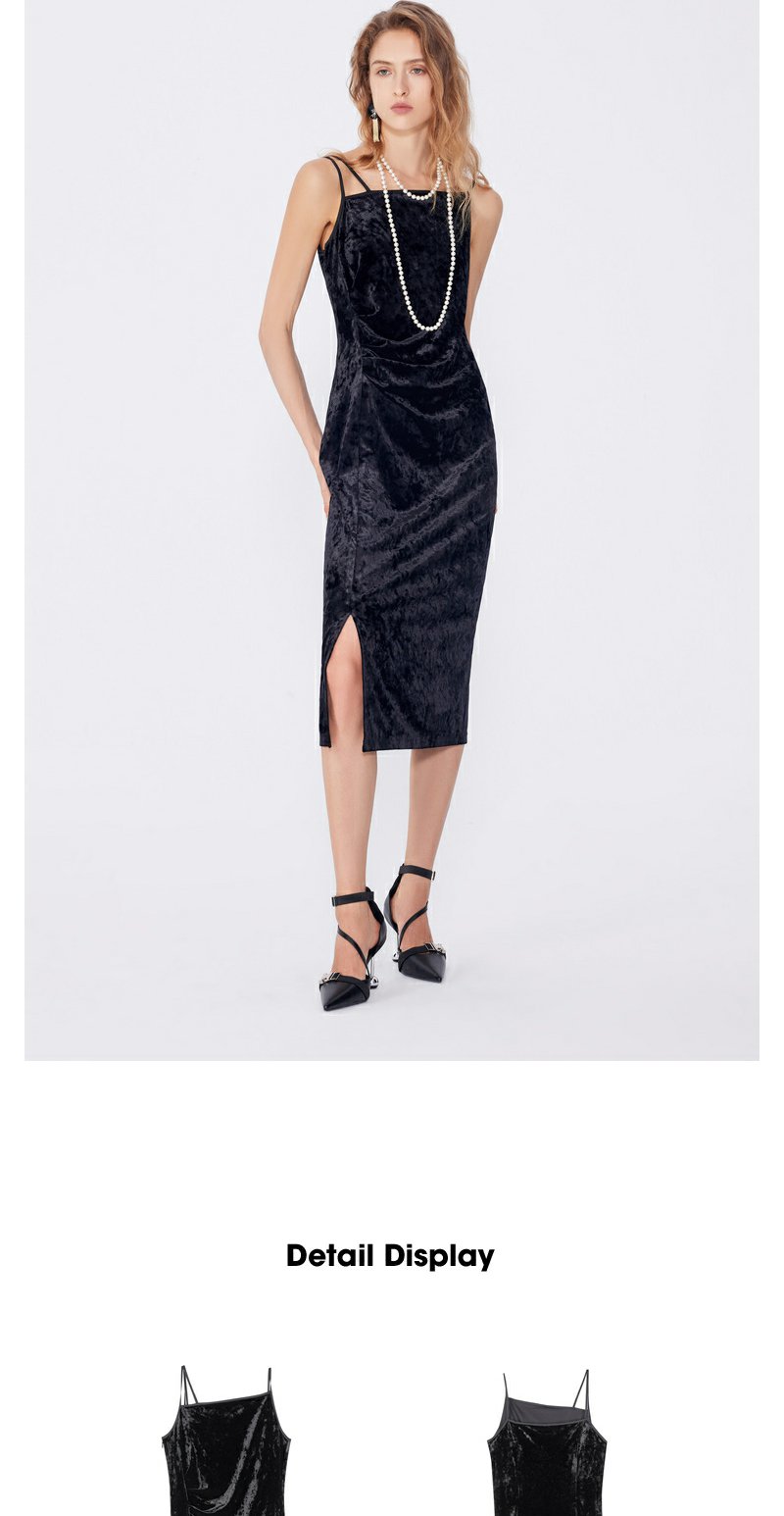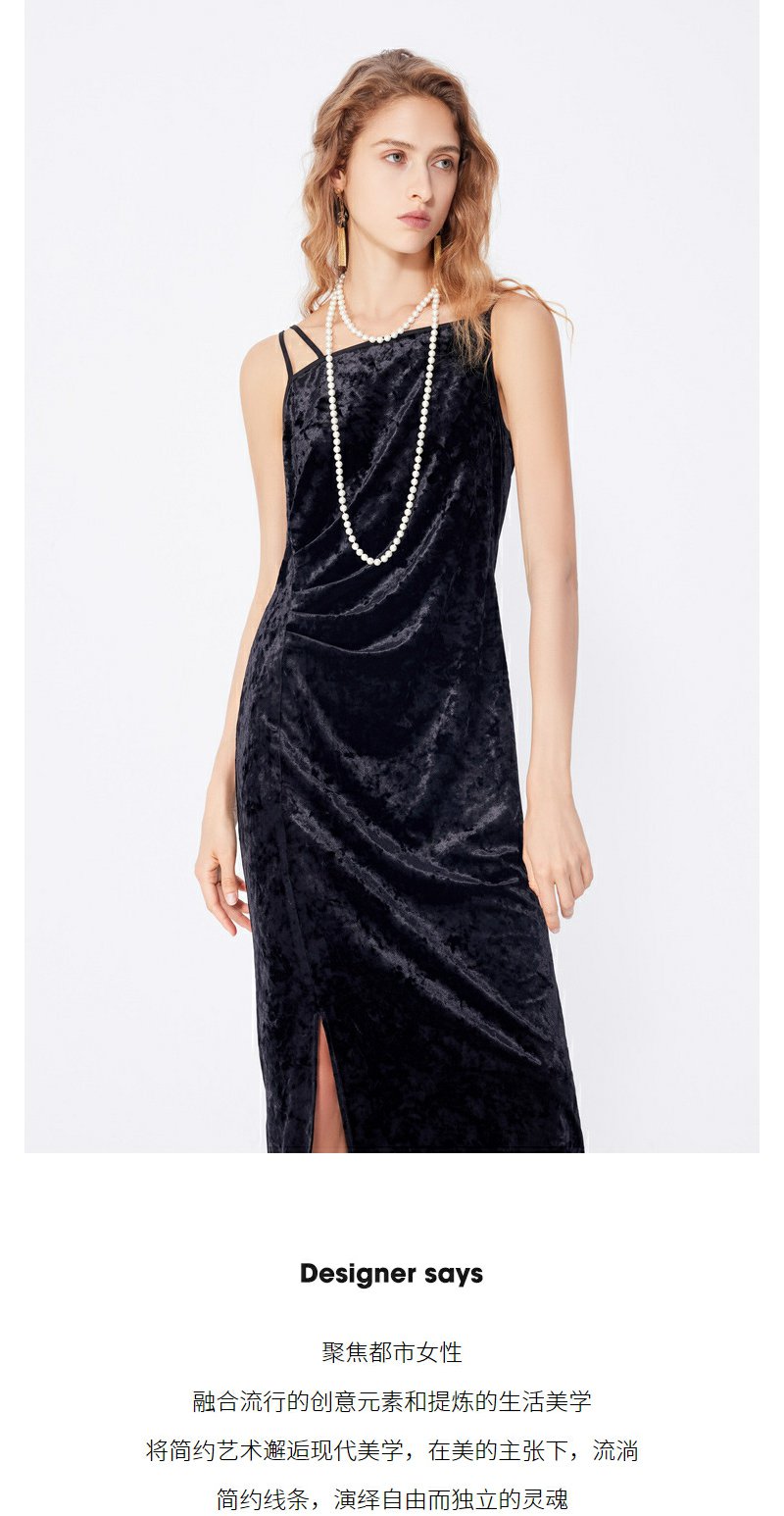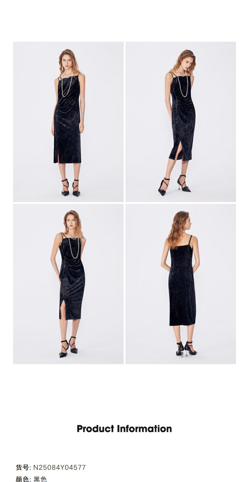 NEELLY纳俪秋季新款商场同款设计感吊带连衣裙女黑色内搭收腰长裙N25084Y04577