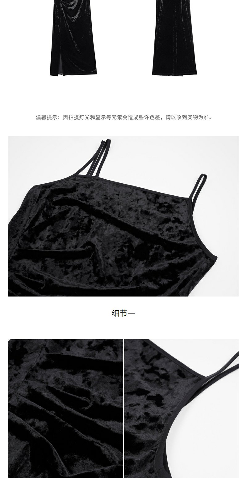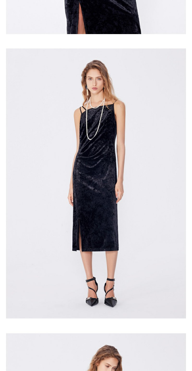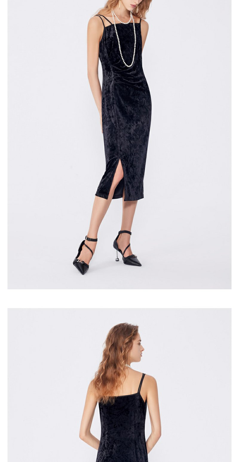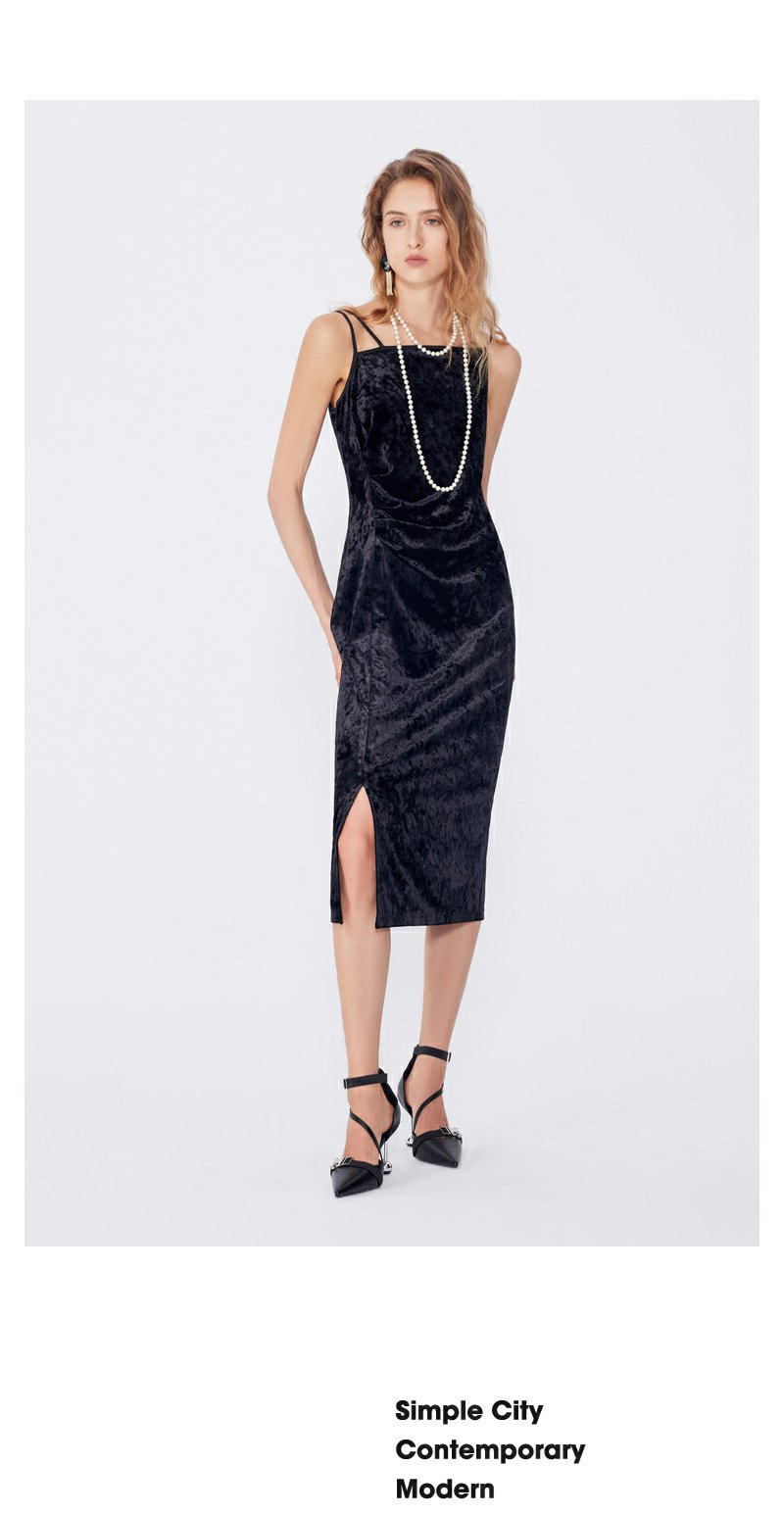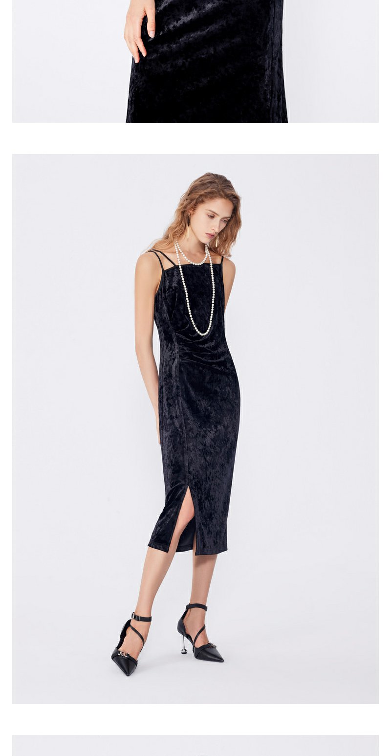 NEELLY纳俪秋季新款商场同款设计感吊带连衣裙女黑色内搭收腰长裙N25084Y04577