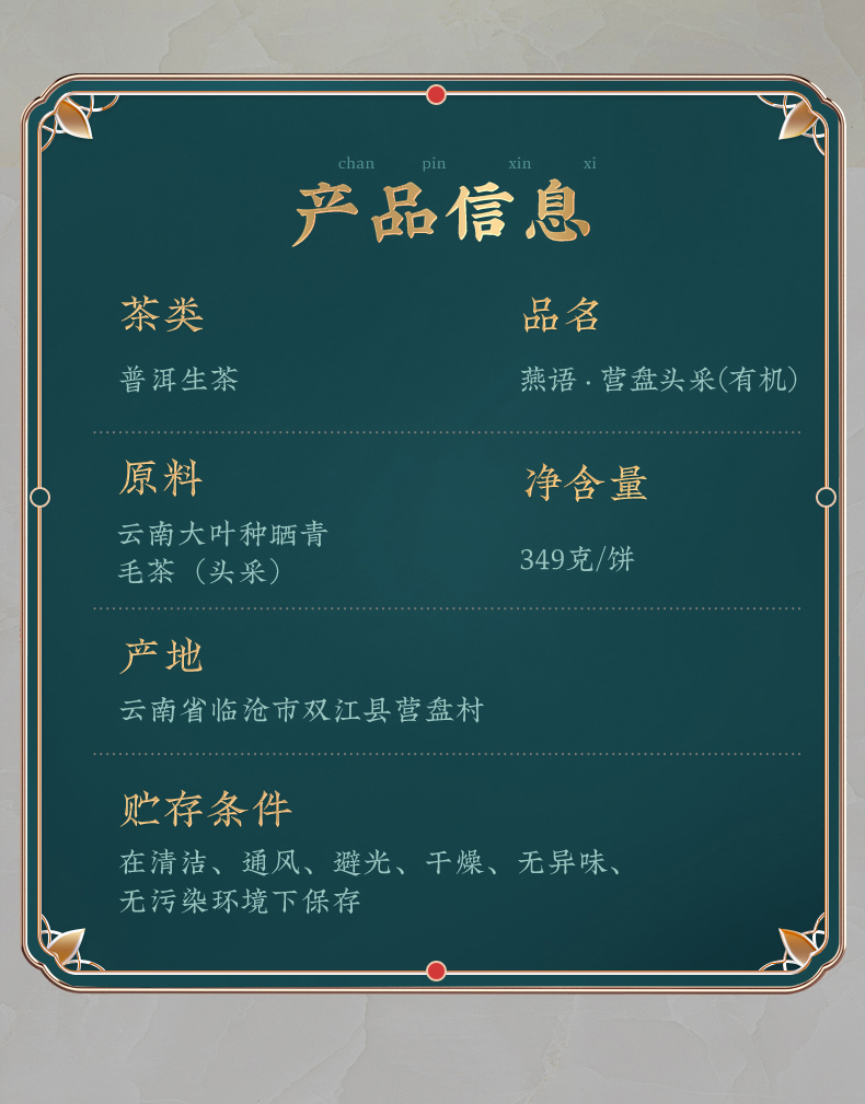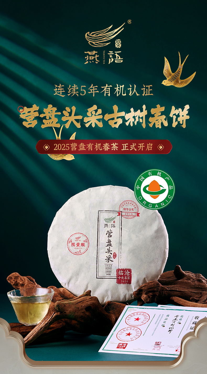 2025燕语有机营盘头采古树春饼礼盒装349g(生普)