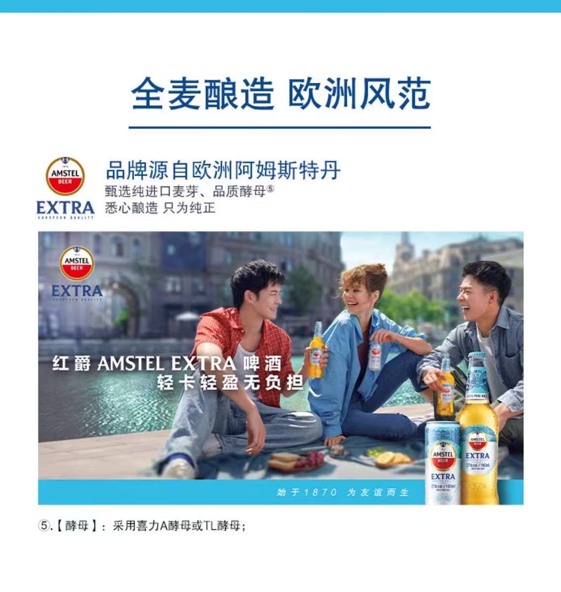 红爵AmstelExtra啤酒 酒精度:3.6°麦芽度:7.7°