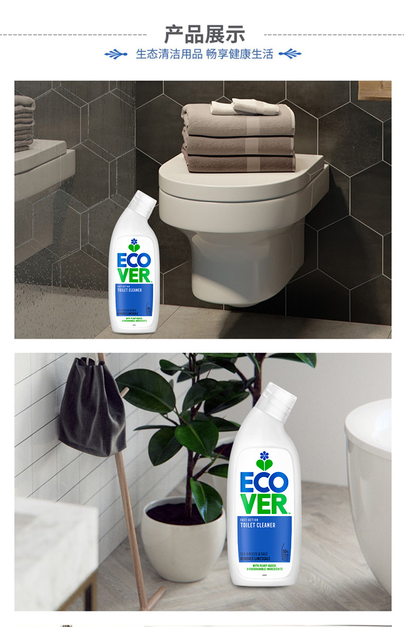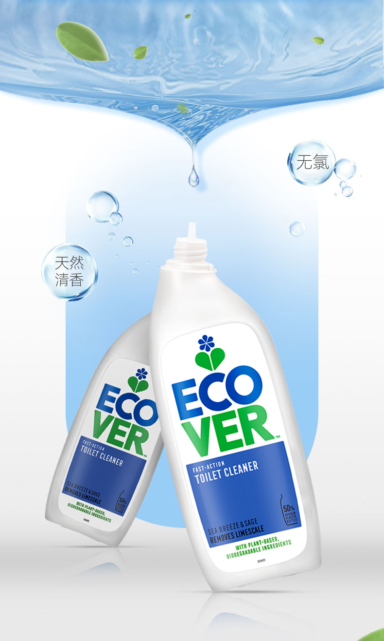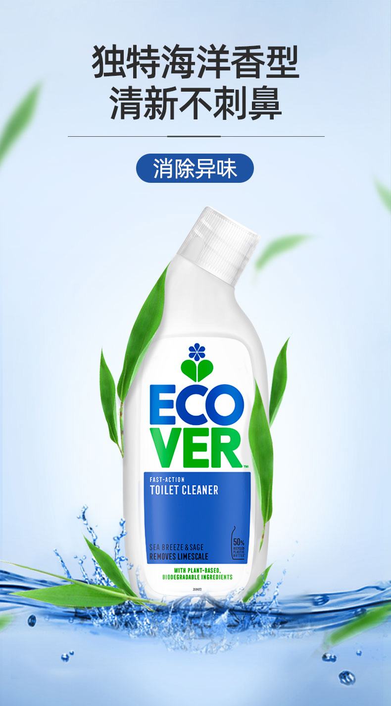 来自比利时环保型洗涤系列Ecover——【海洋香型洁厕剂】植物无氯马桶清洁剂,植物成分,不含石化成分,除便渍/除臭/除水垢三合一,洁厕同时保护釉质表面不被伤害,海洋清香去除卫生间异味