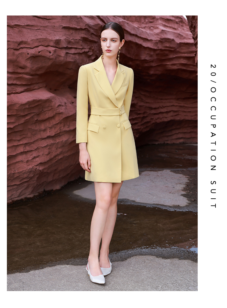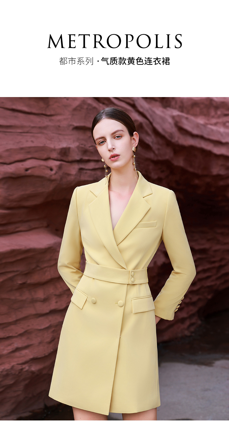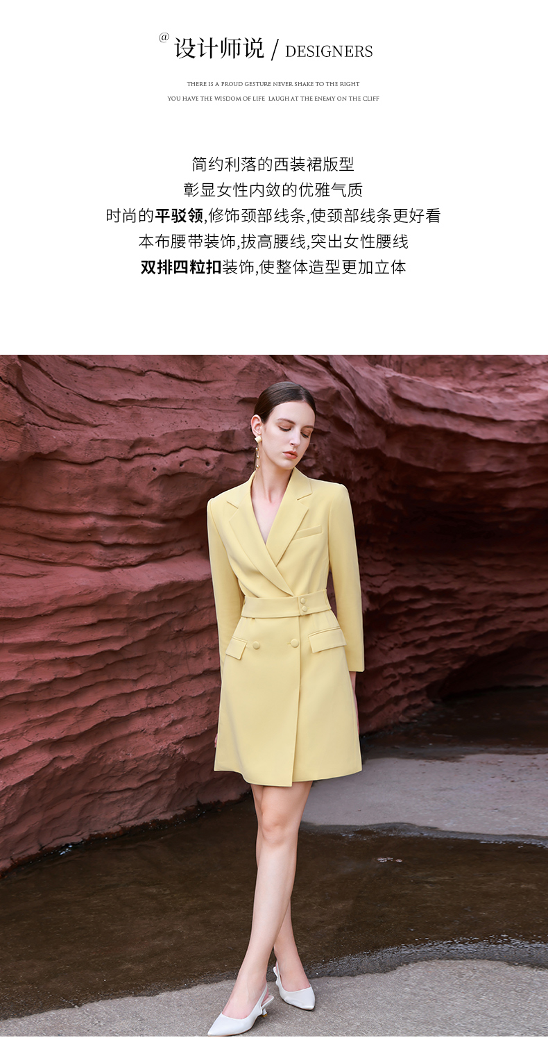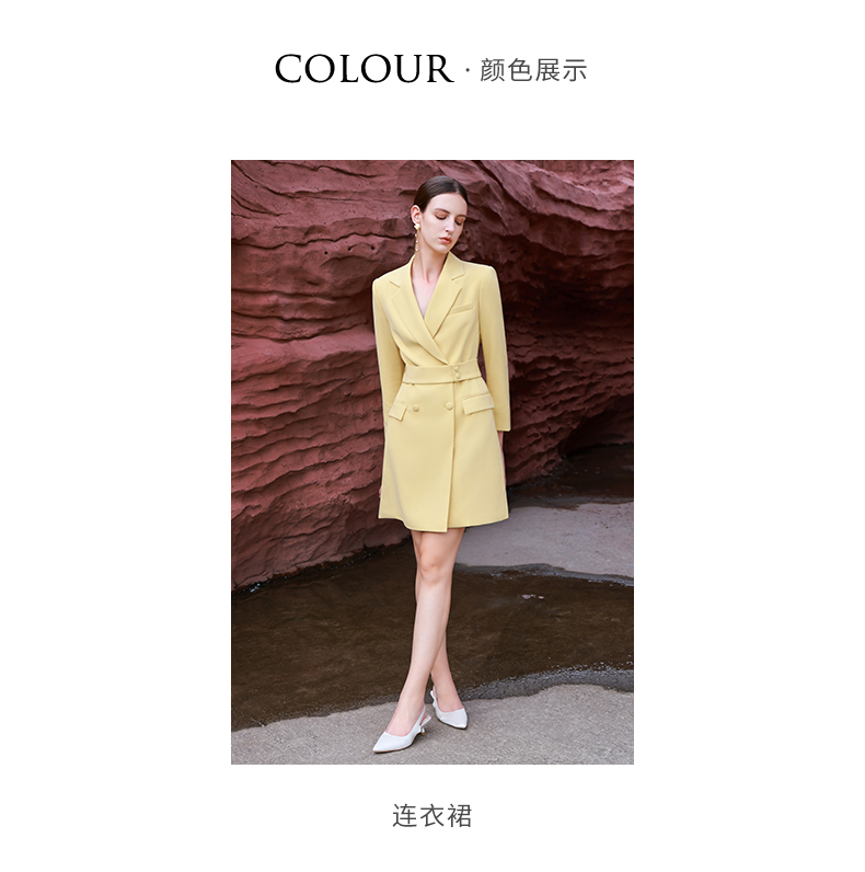 IWY/洋气黄色连衣裙女高级设计感西装修身显瘦气质主持人上镜职业装olQ13314