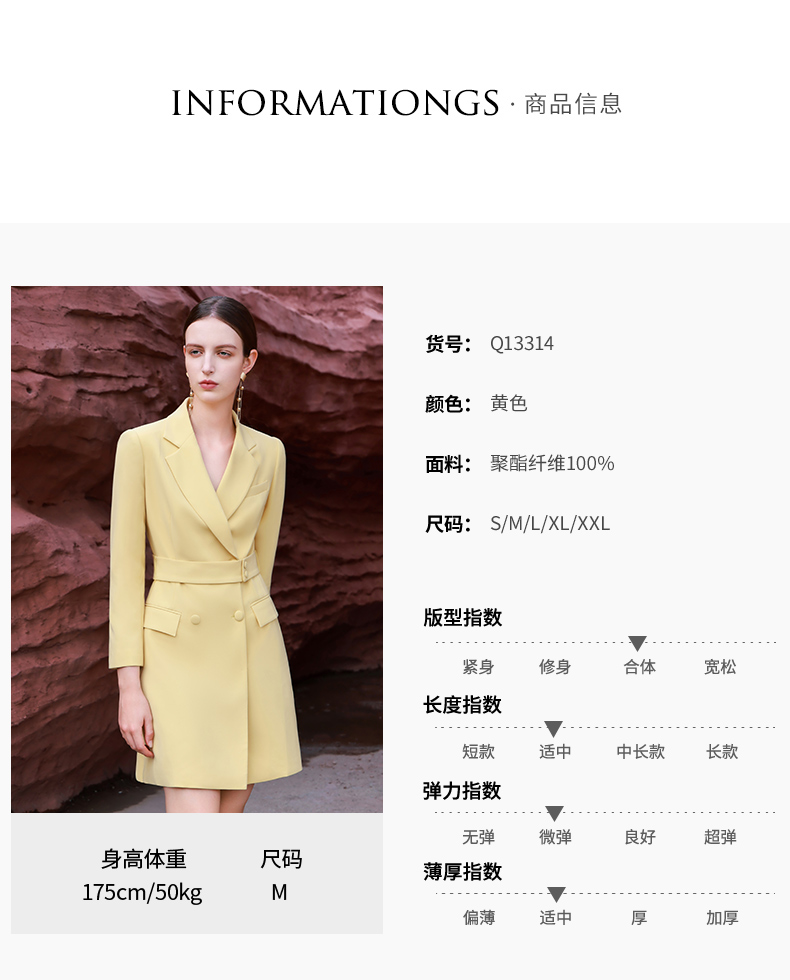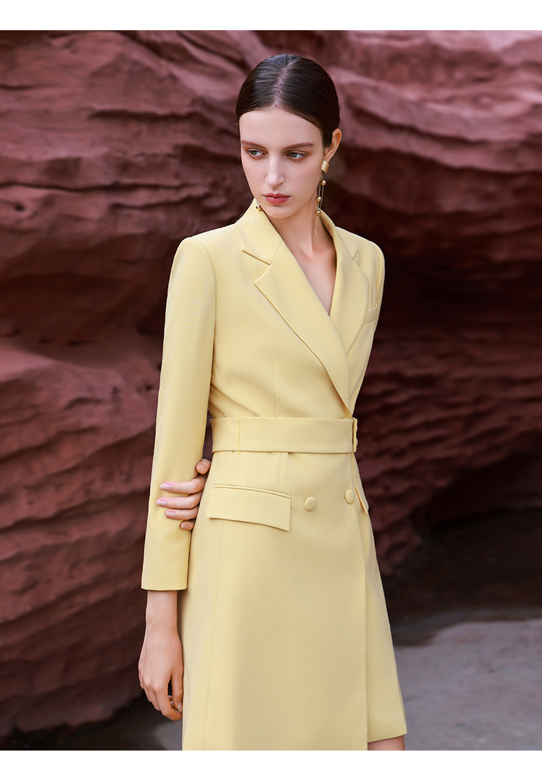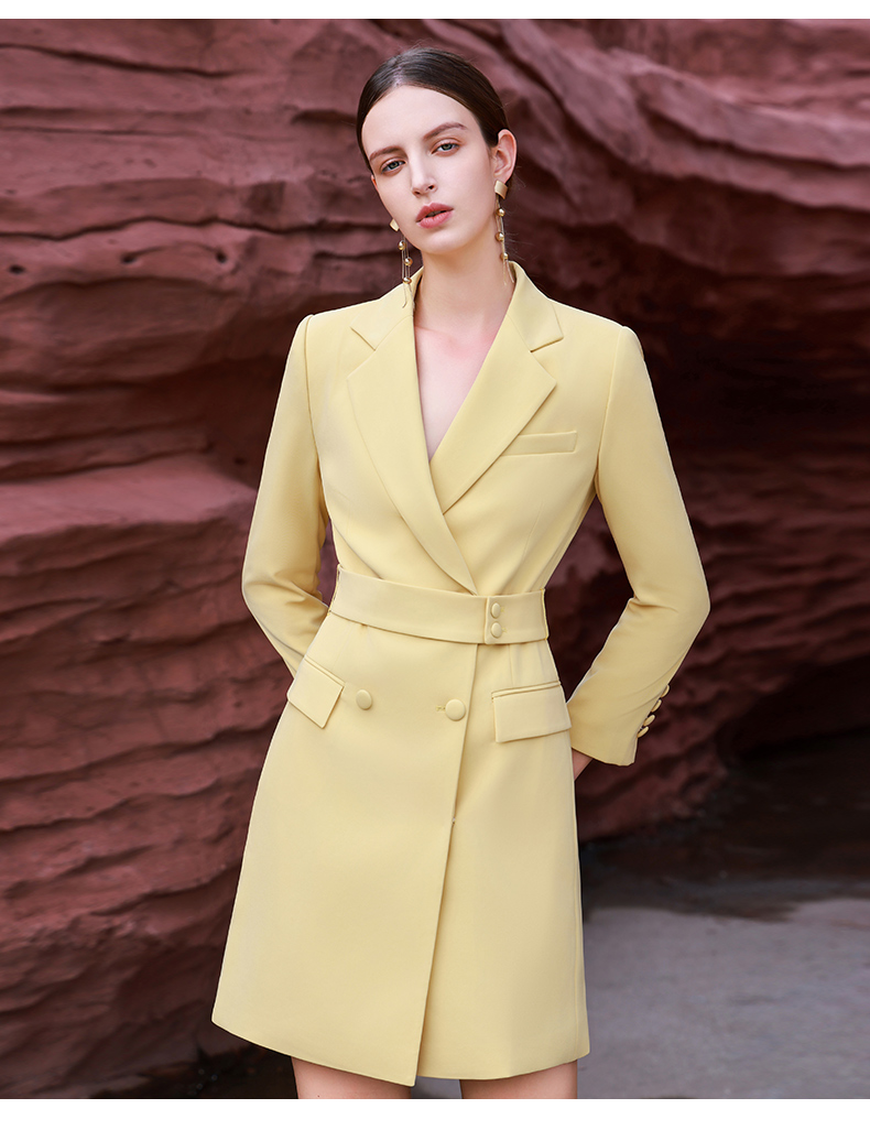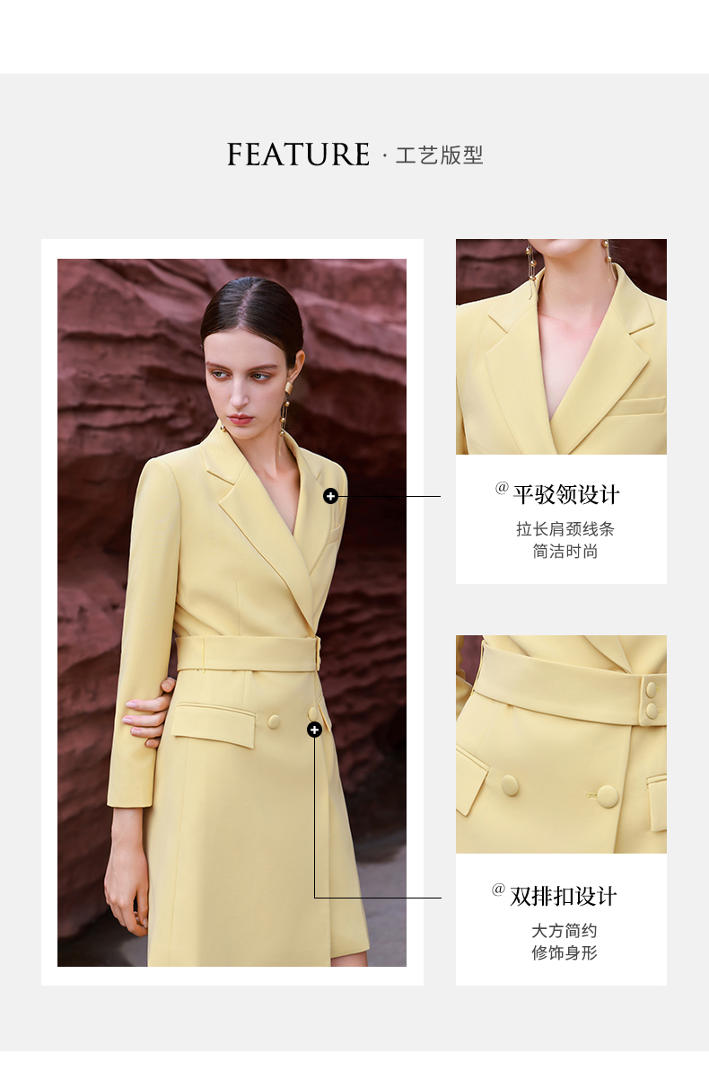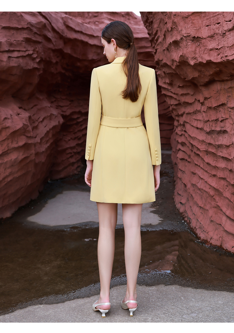 IWY/洋气黄色连衣裙女高级设计感西装修身显瘦气质主持人上镜职业装olQ13314