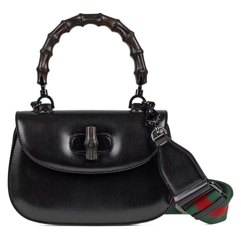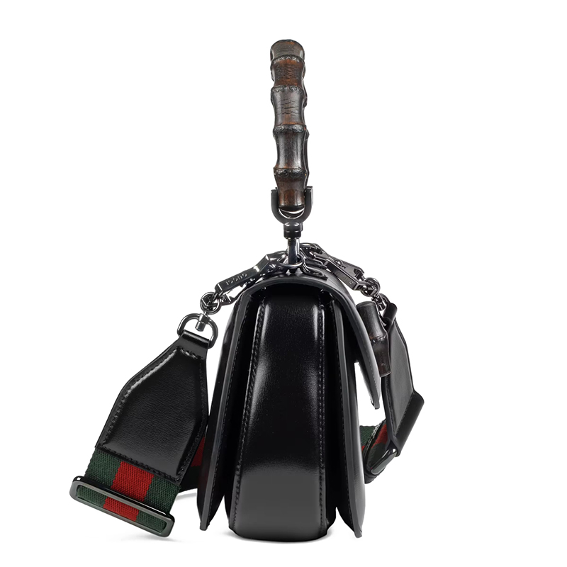 【包税】GUCCI/古驰 2021秋冬新款 女士小号黑色皮革竹节配件附皮革和织带互换肩带竹子提手饰面斜跨单肩手提包67579710ODP1060