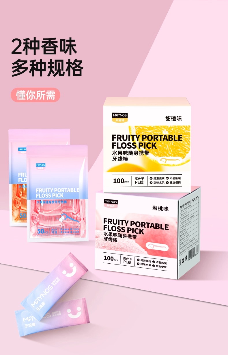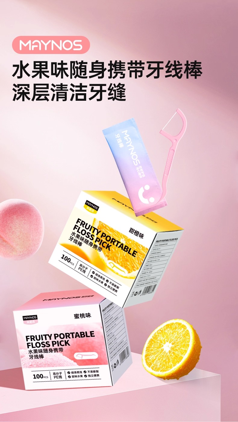 【MAYNOS水果味随身携带牙线棒】牙线棒牙缝清洁一次性剔牙签