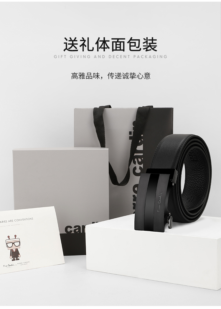 【实木礼盒包装】皮尔卡丹牛皮皮带自动扣男士腰带高档木礼盒送礼