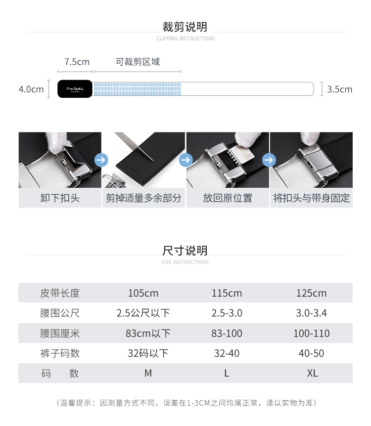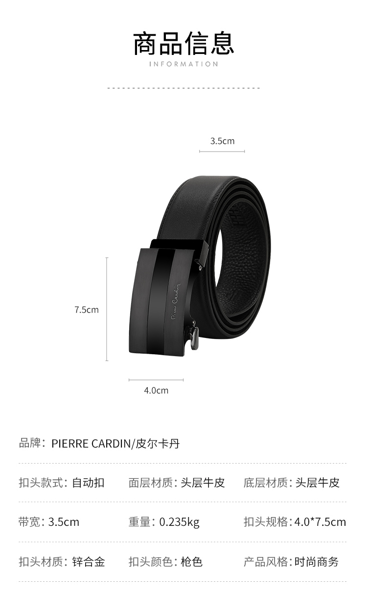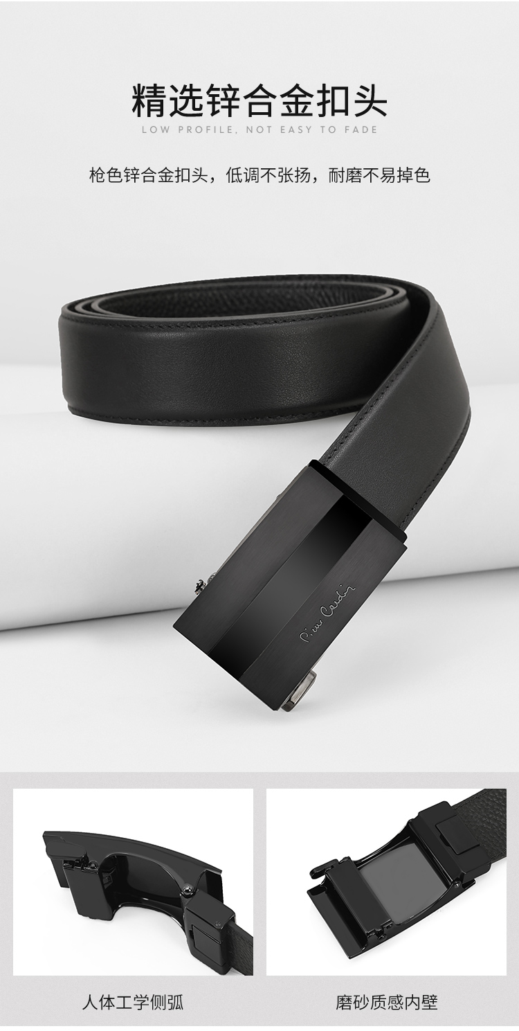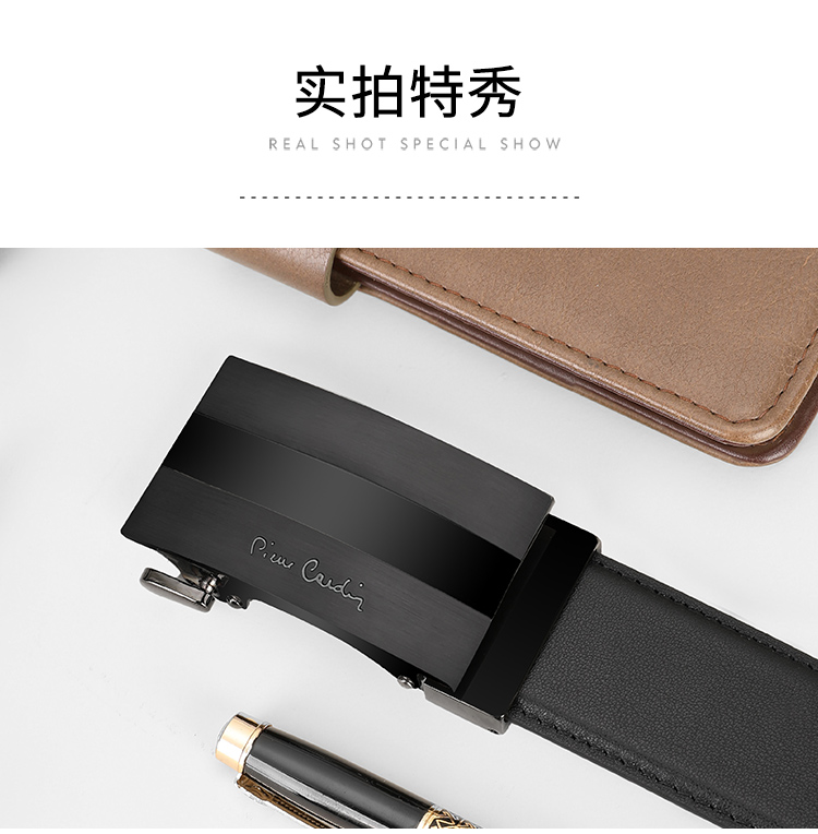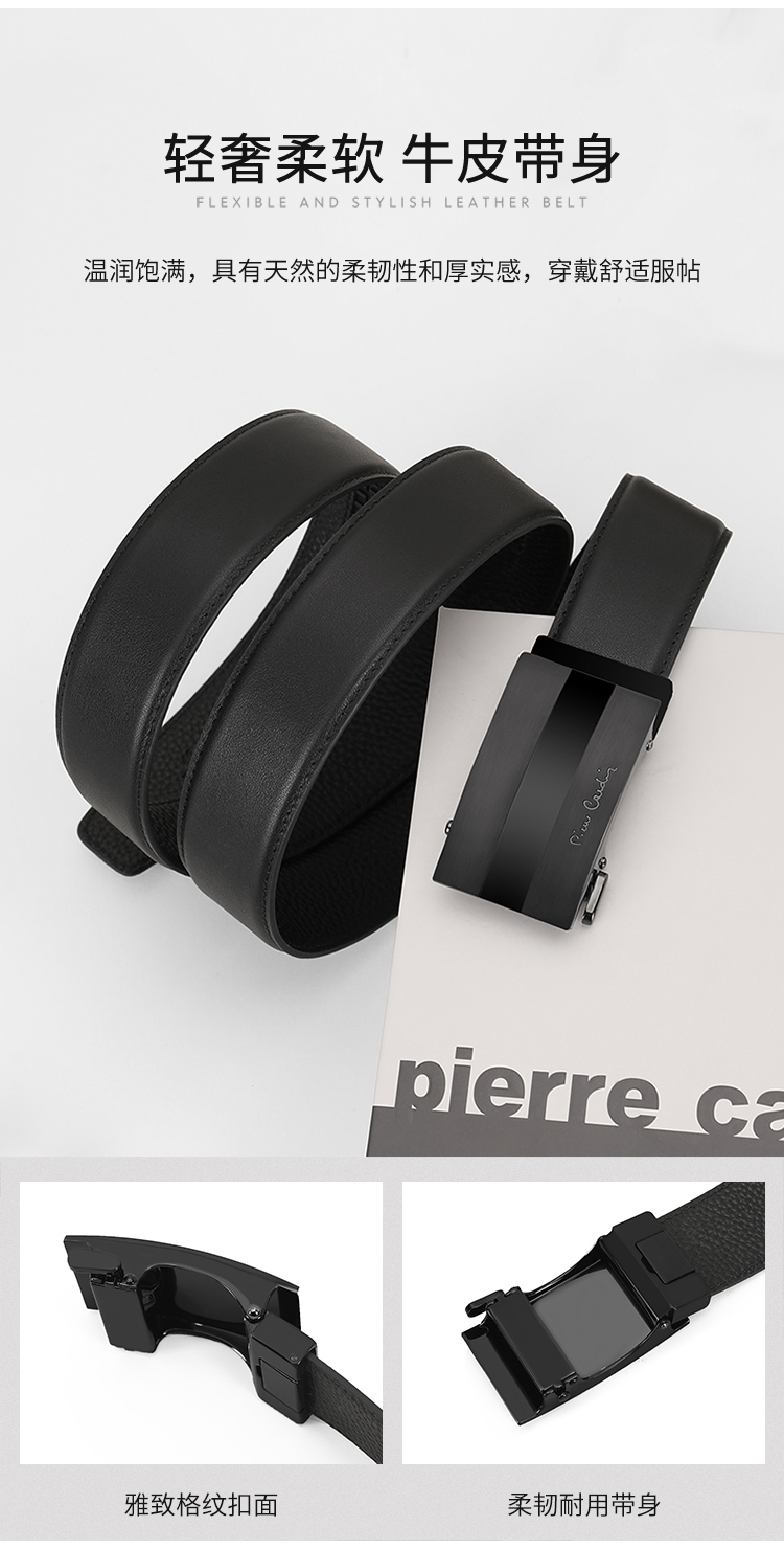 皮尔卡丹男士牛皮皮带经典大气头层牛皮商务都市自动扣男士腰带高级感牛皮男式裤腰带