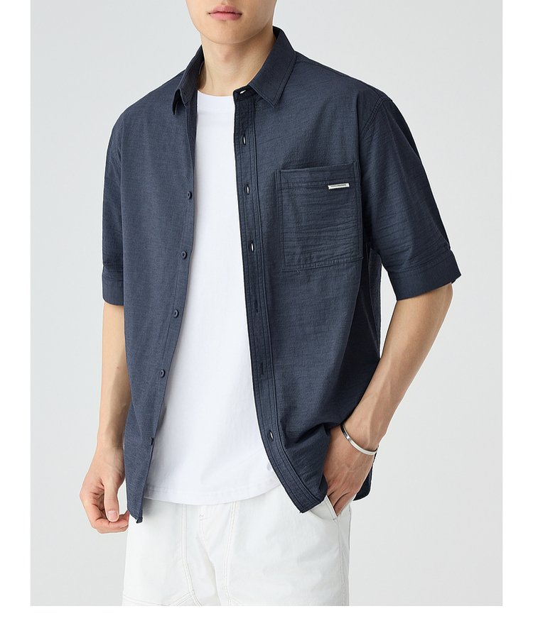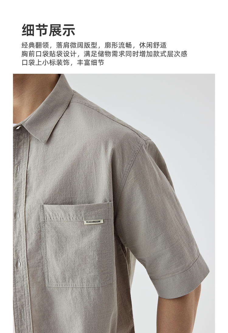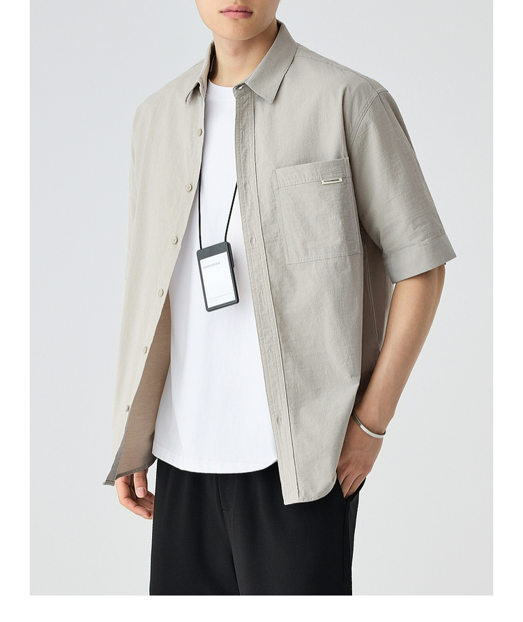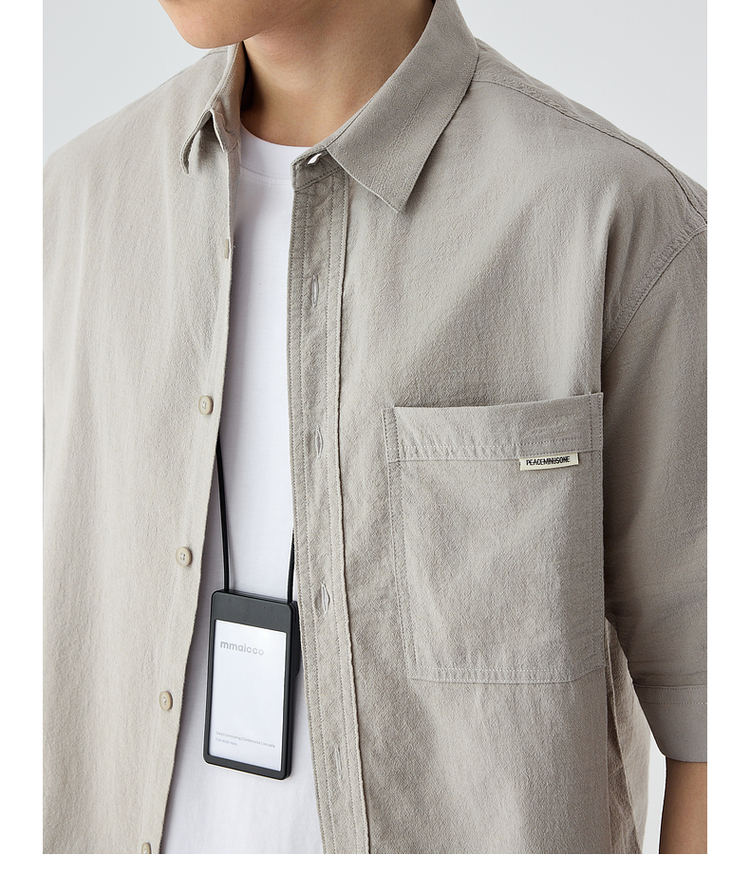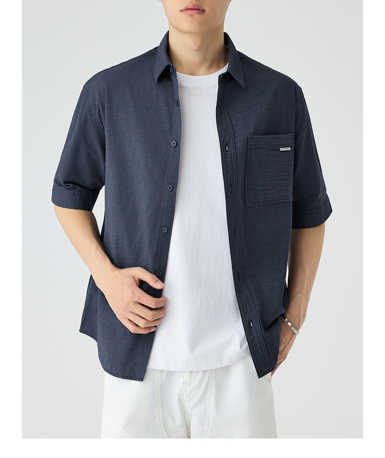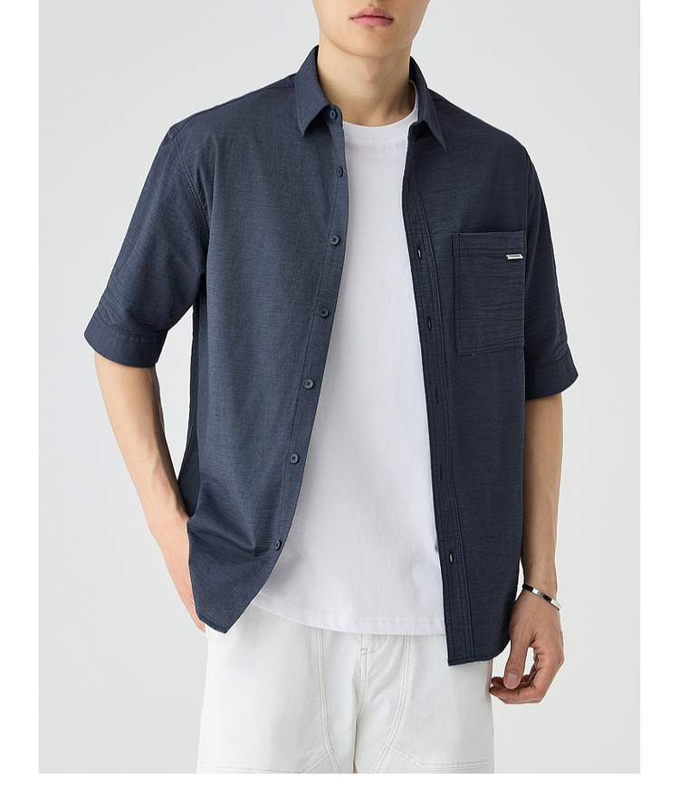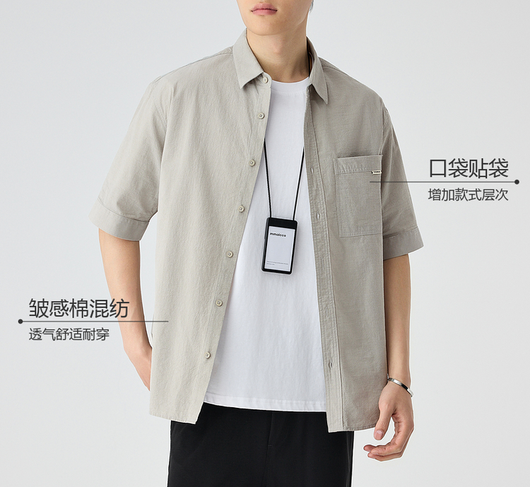 墨麦客仿麻肌理感男士休闲衬衫2025夏季新款复古宽松五分袖短袖男