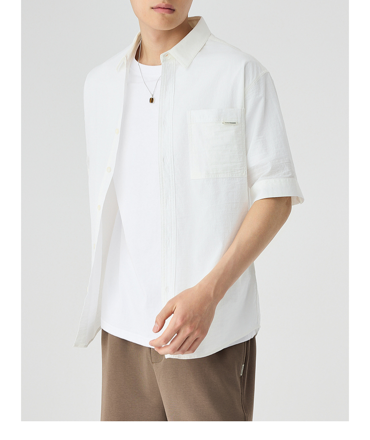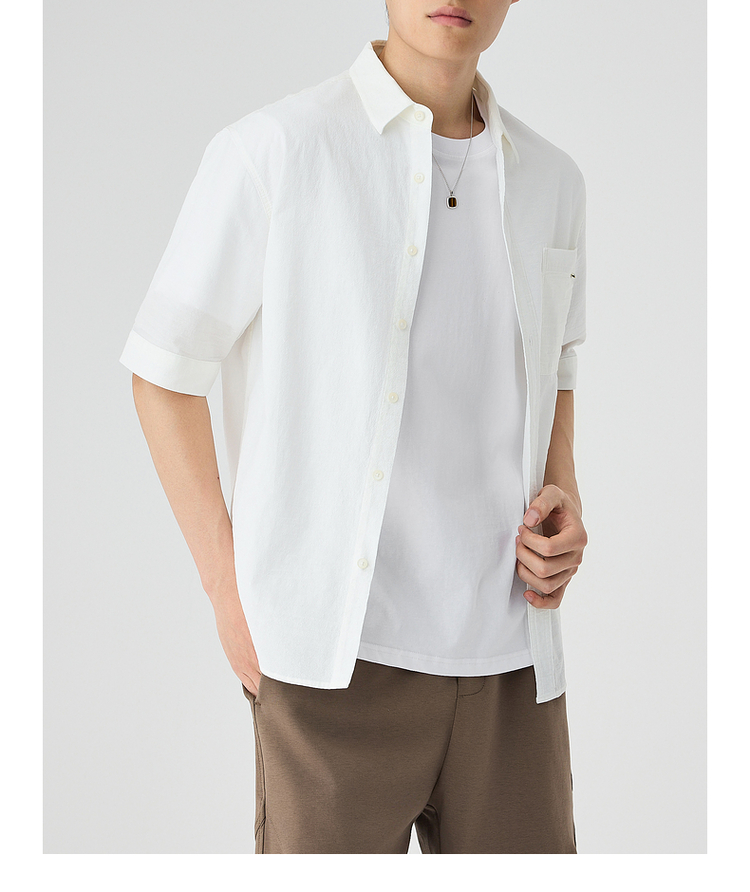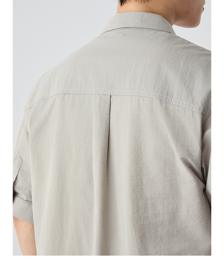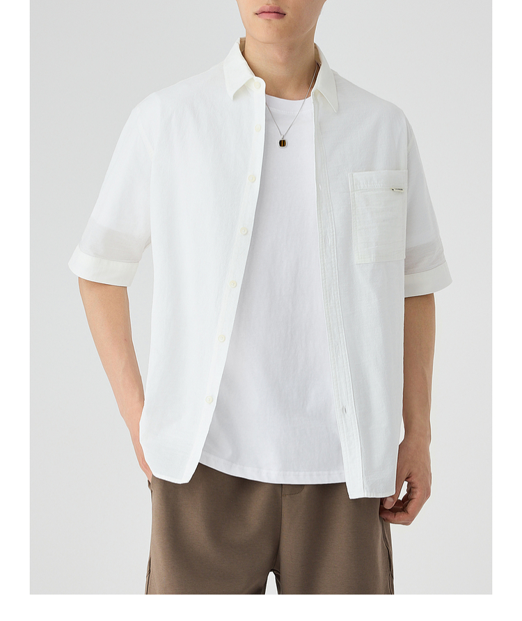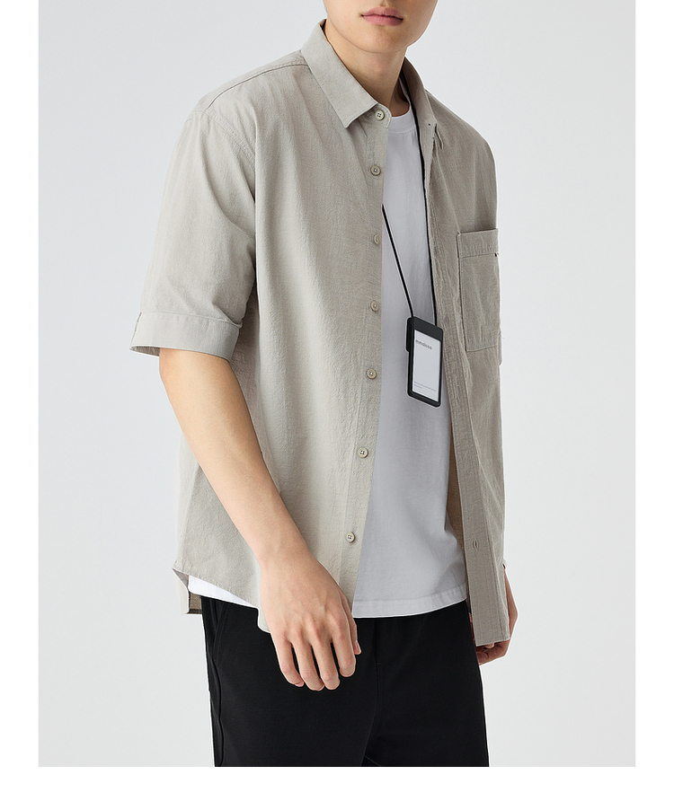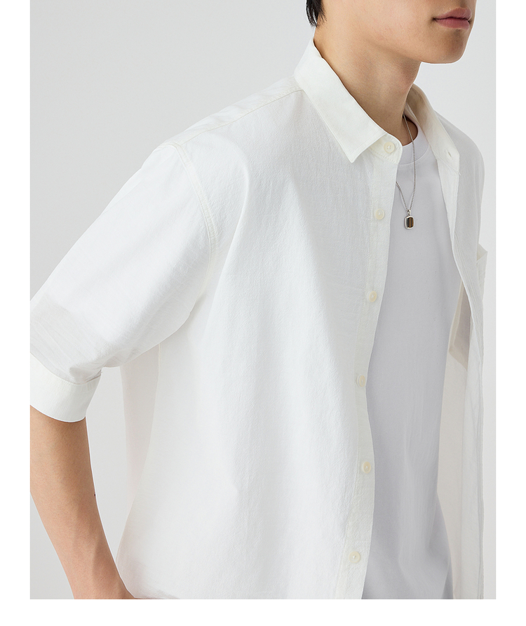 墨麦客仿麻肌理感男士休闲衬衫2025夏季新款复古宽松五分袖短袖男