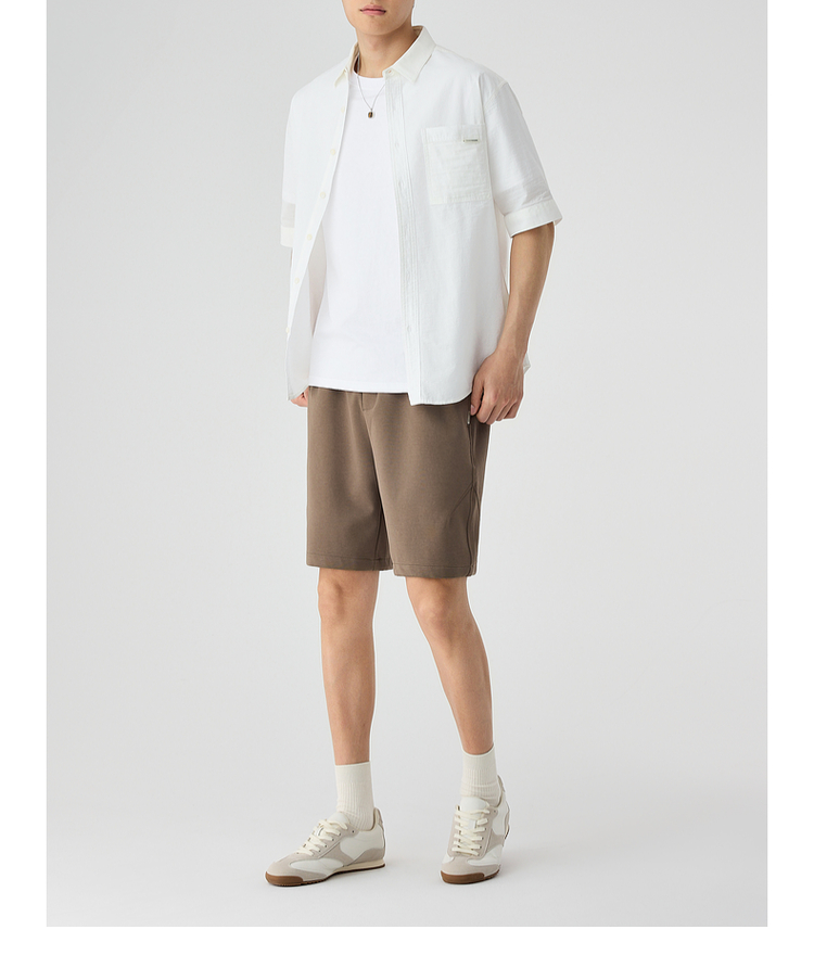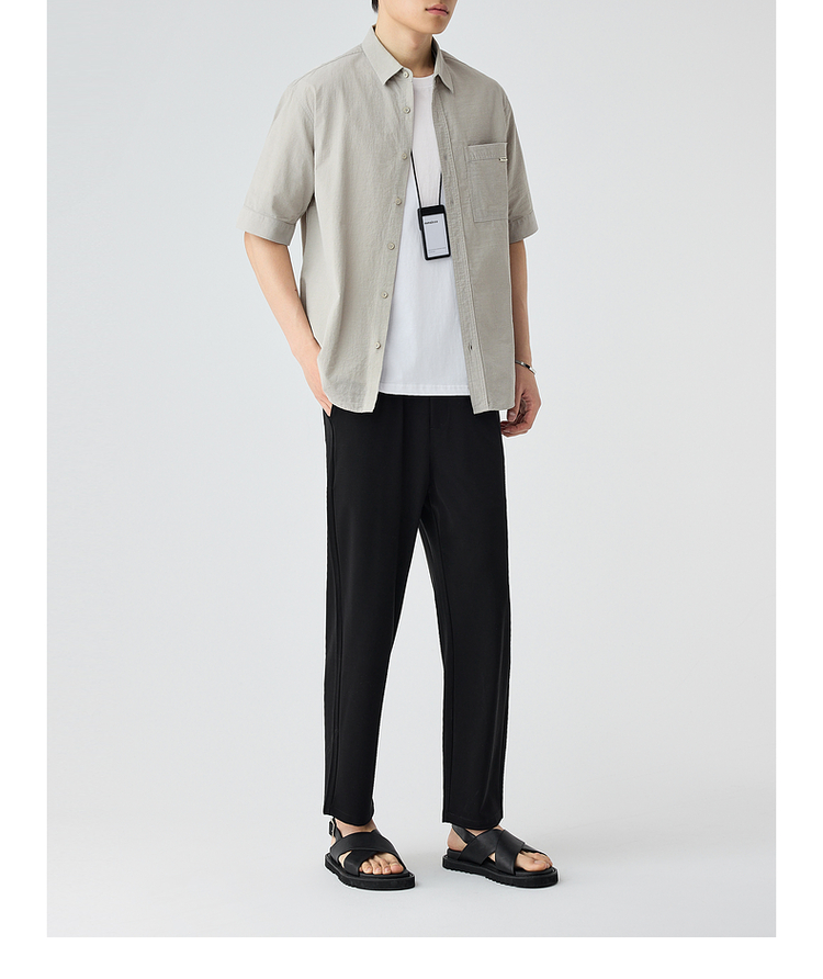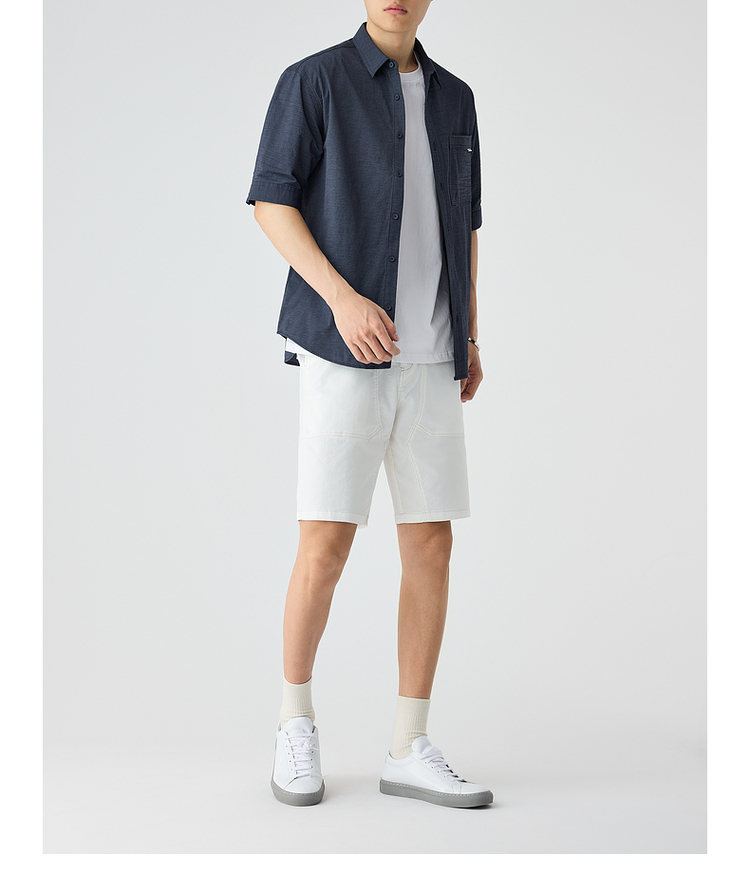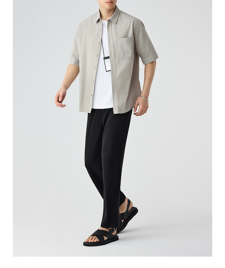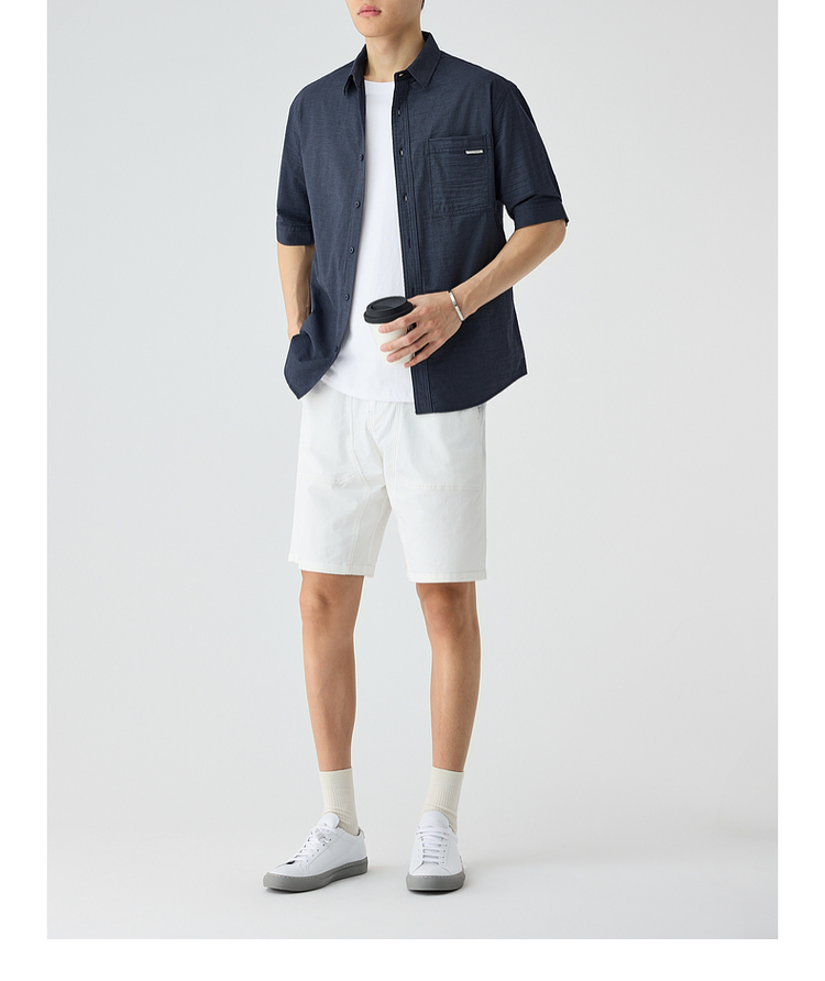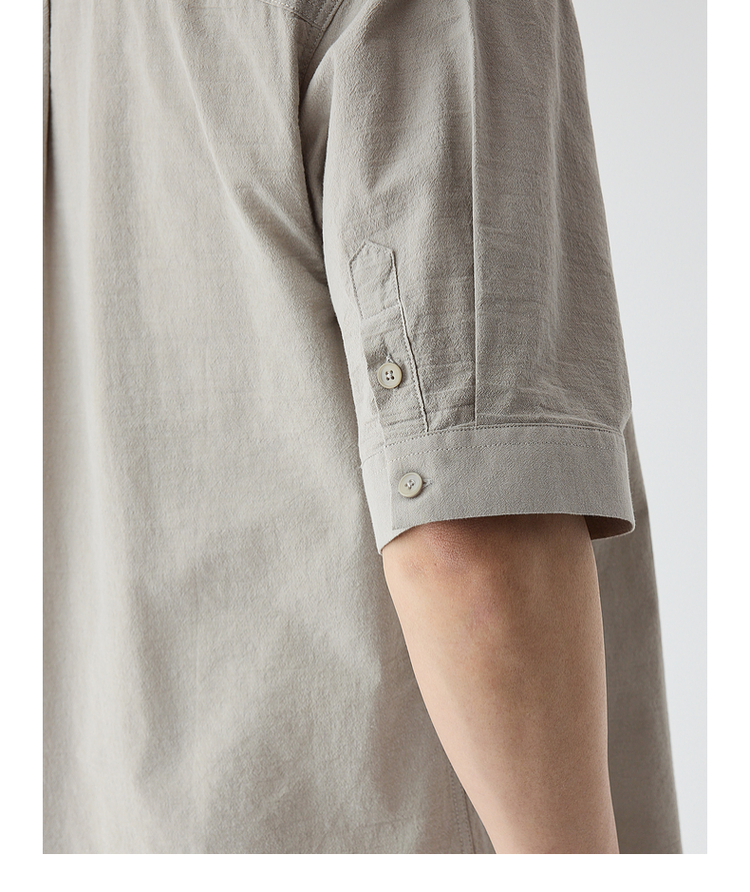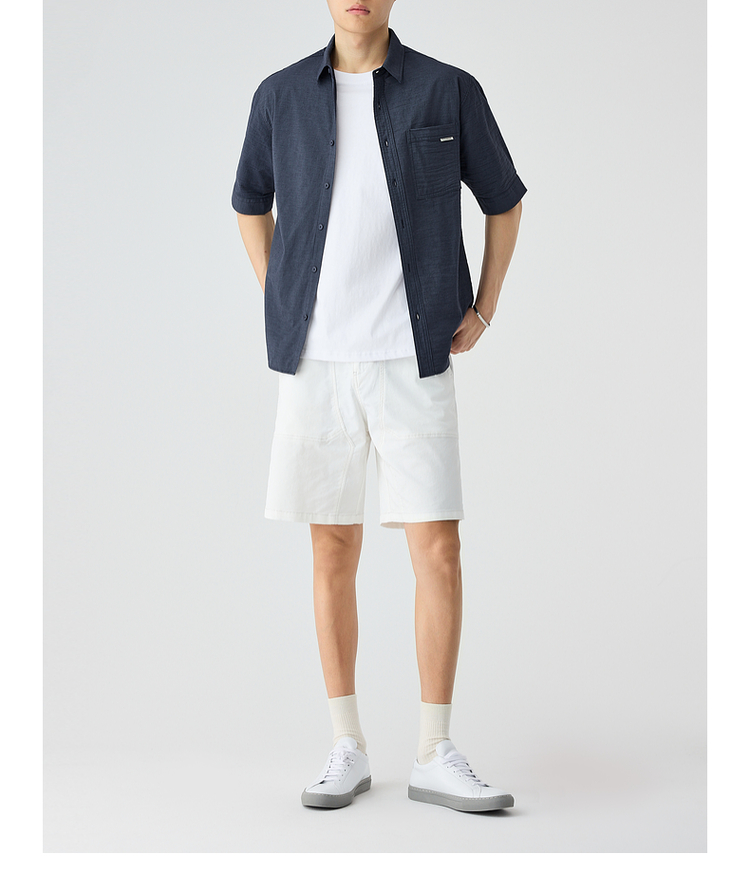 墨麦客仿麻肌理感男士休闲衬衫2025夏季新款复古宽松五分袖短袖男