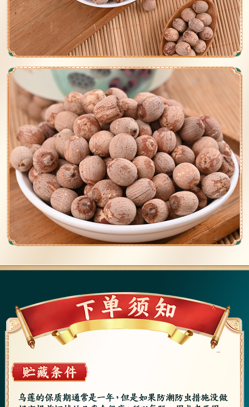 【贮藏条件】乌莲的保质期通常是一年,但是如果防潮防虫措施没做好它提前坏掉的几率会很高;所以每隔一周或者两周,有好太阳就把乌莲拿出来晾晒几个小时,干燥度差不多的时候,再把它们收到密封罐里即可,平时可以放在阴凉、干燥、通风的地方,如果天气湿热则考虑放在冰箱冷藏(不熏硫,所以存放需注意)