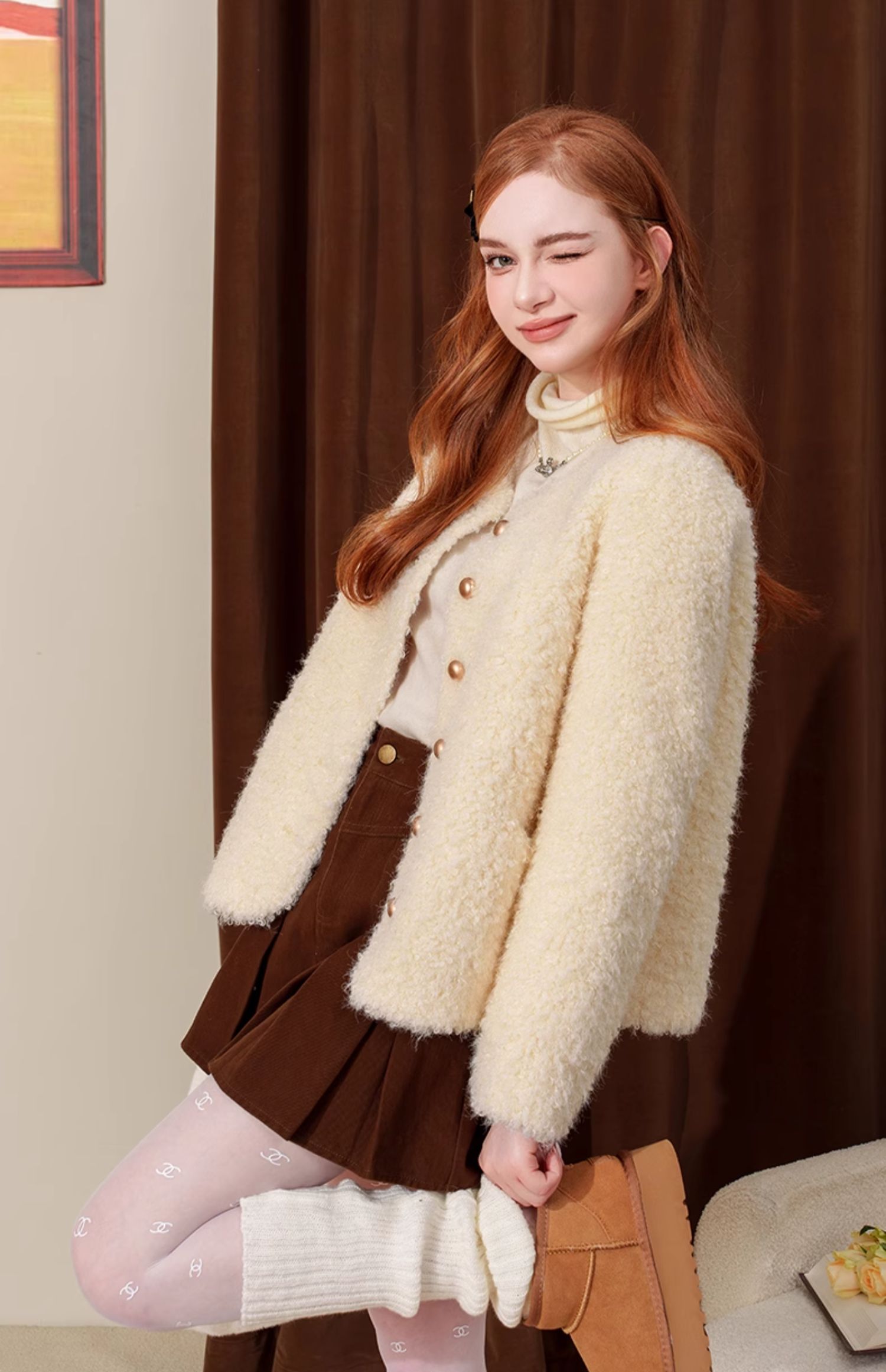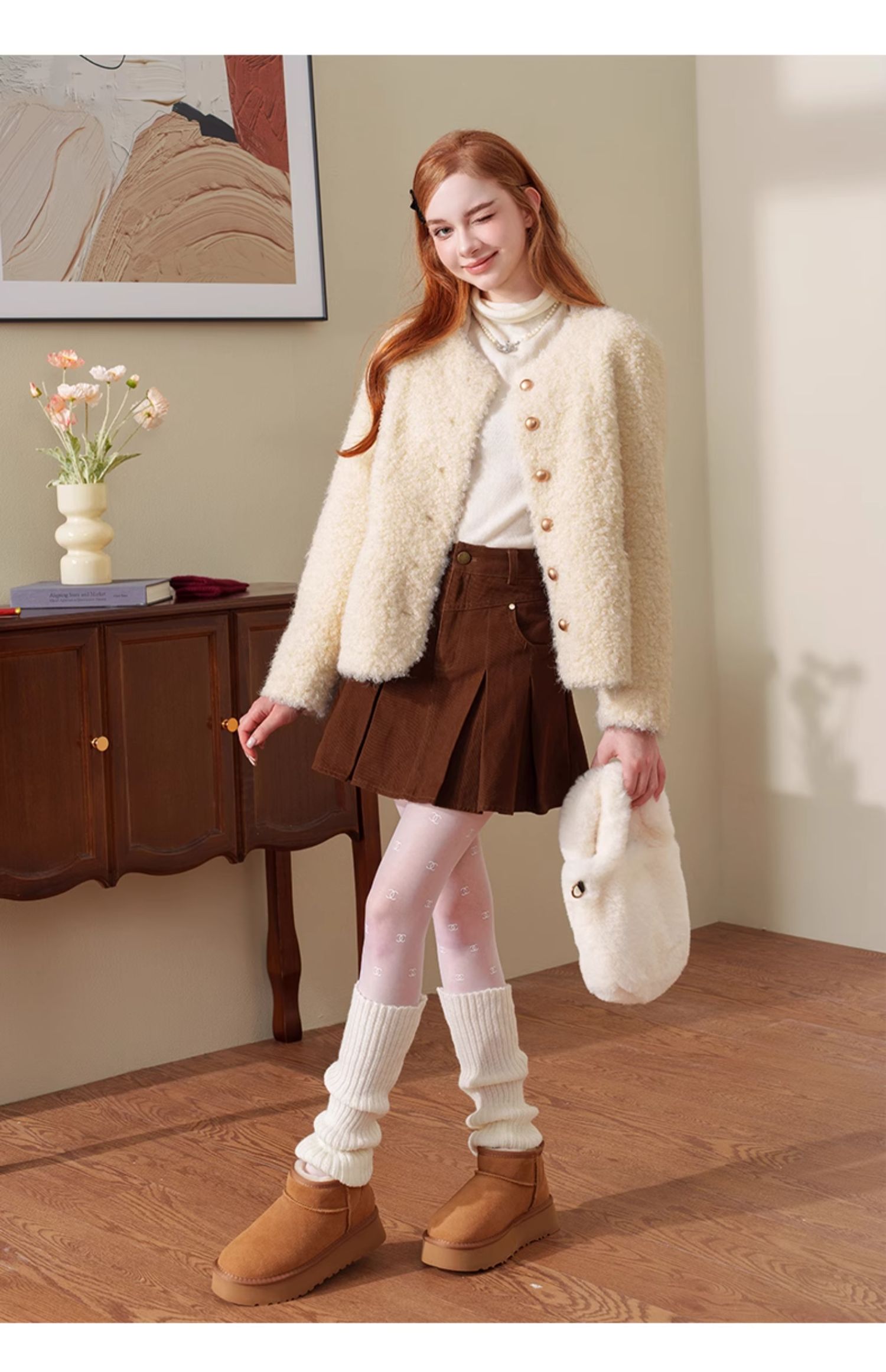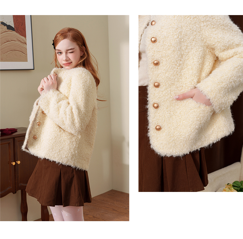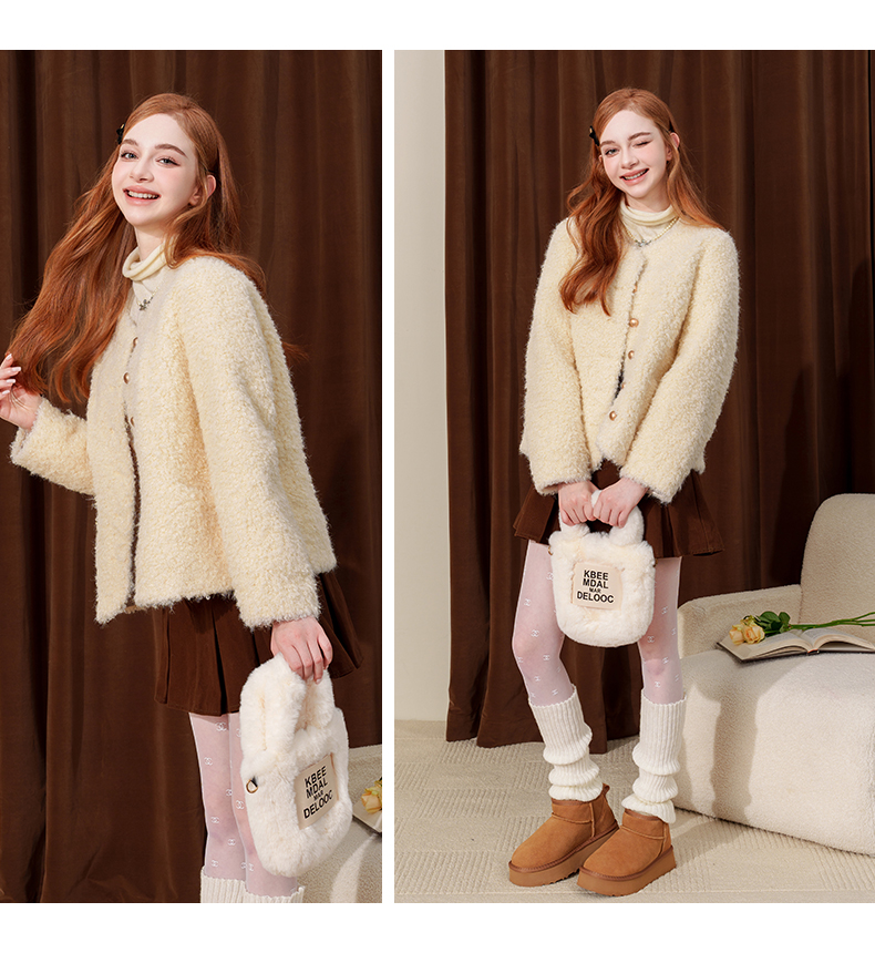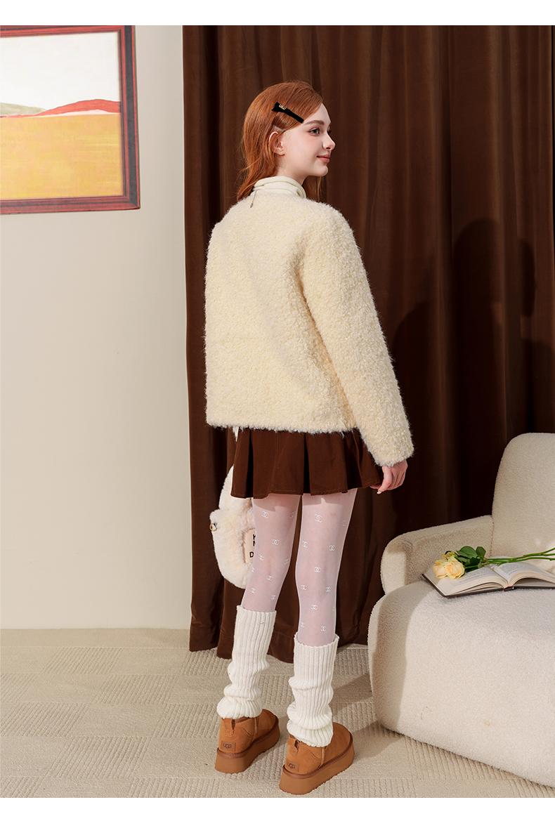 甜美小香风仿皮草麂皮绒短外套J4241604