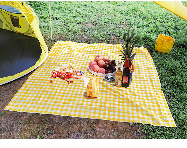 赠送地钉【免收纳用完即抛!野餐/桌布两用】一次性黄红格子野餐垫户外露营烧烤野餐垫大排档台布餐厅饭店桌布。ry