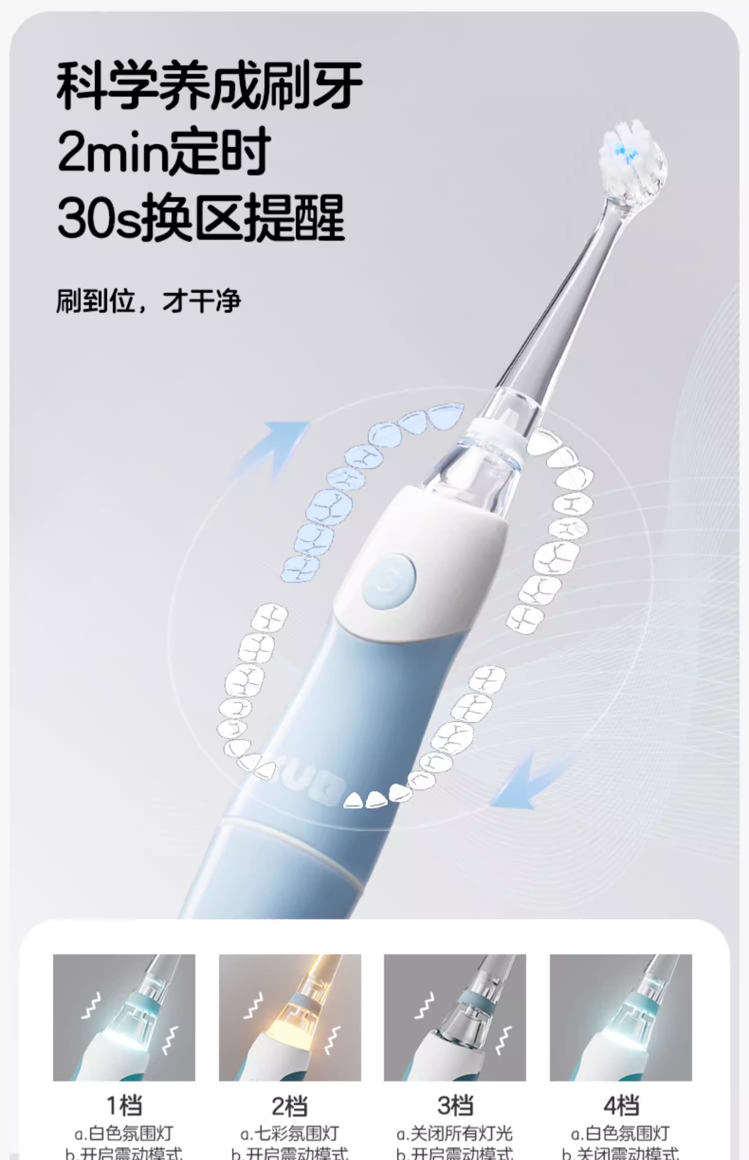 KUB可优比儿童电动牙刷非U宝宝牙刷2-3一6岁以上刷牙全自动软毛刷