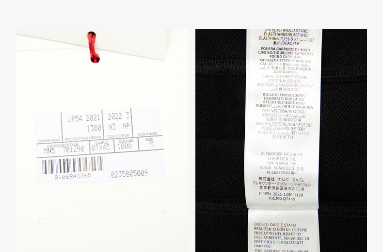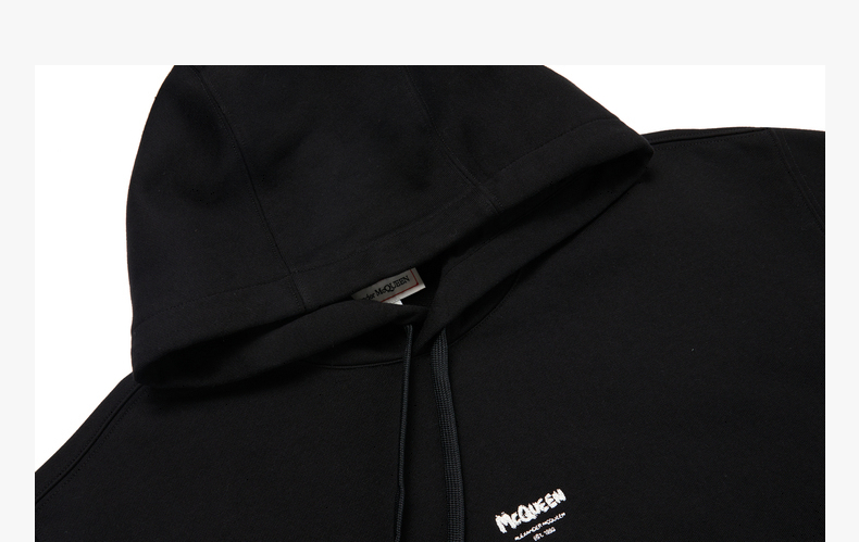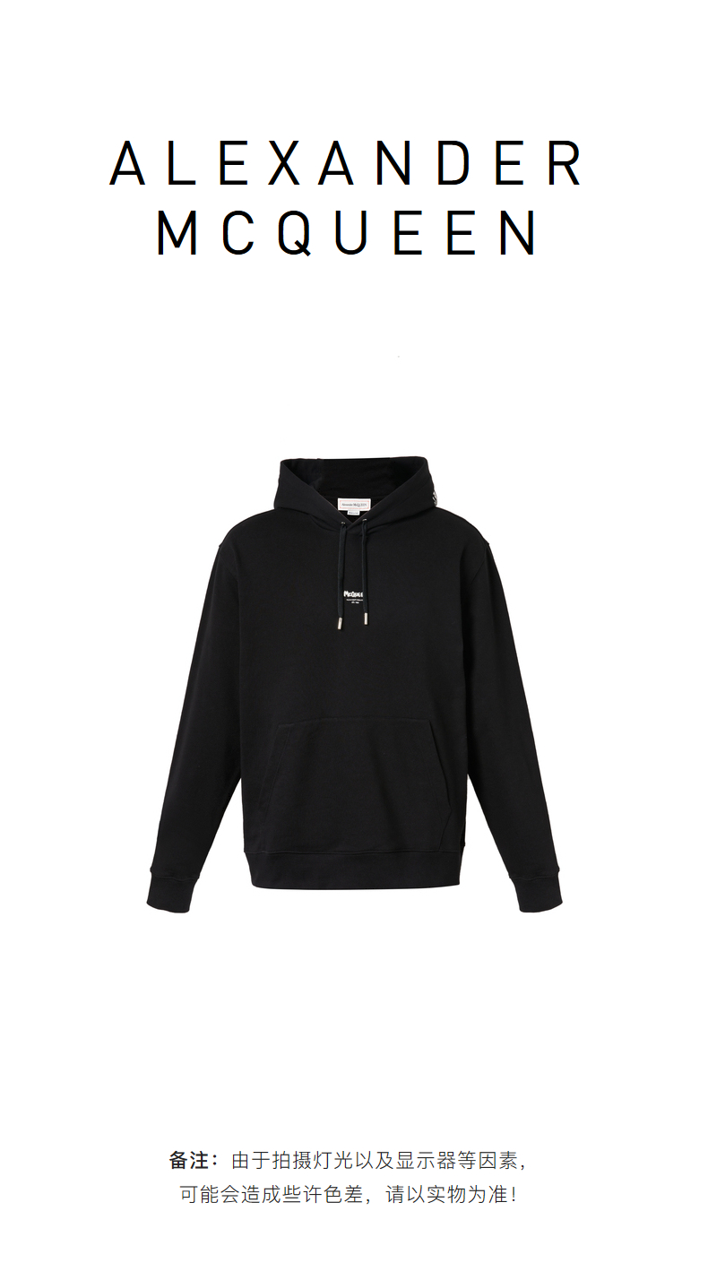ALEXANDER MCQUEEN 亚历山大.麦昆 男士McQueen刺绣标识连帽卫衣 黑色
