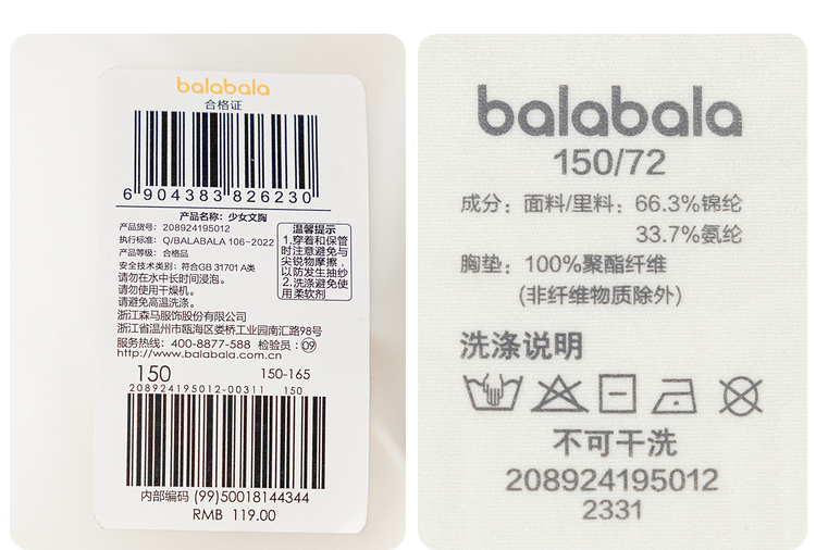 巴拉巴拉女童小背心发育期小学生少女文胸二阶段儿童内衣萌随心裁
