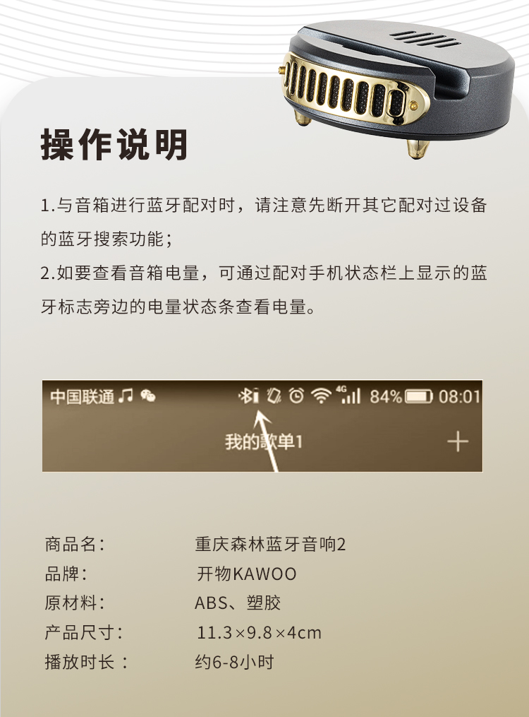 开物KAWOO 重庆森林2复古音响 手机支架蓝牙小音箱