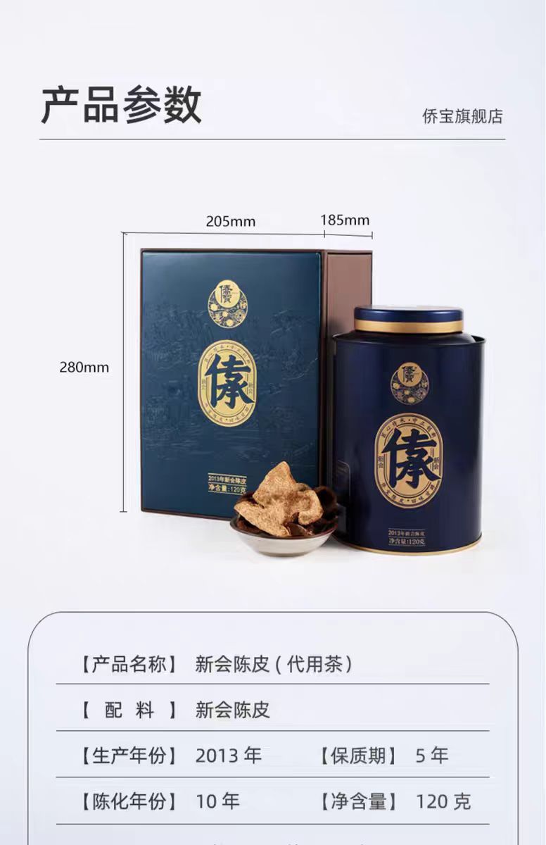 侨宝 传承10年新会老陈皮茶120克礼盒装