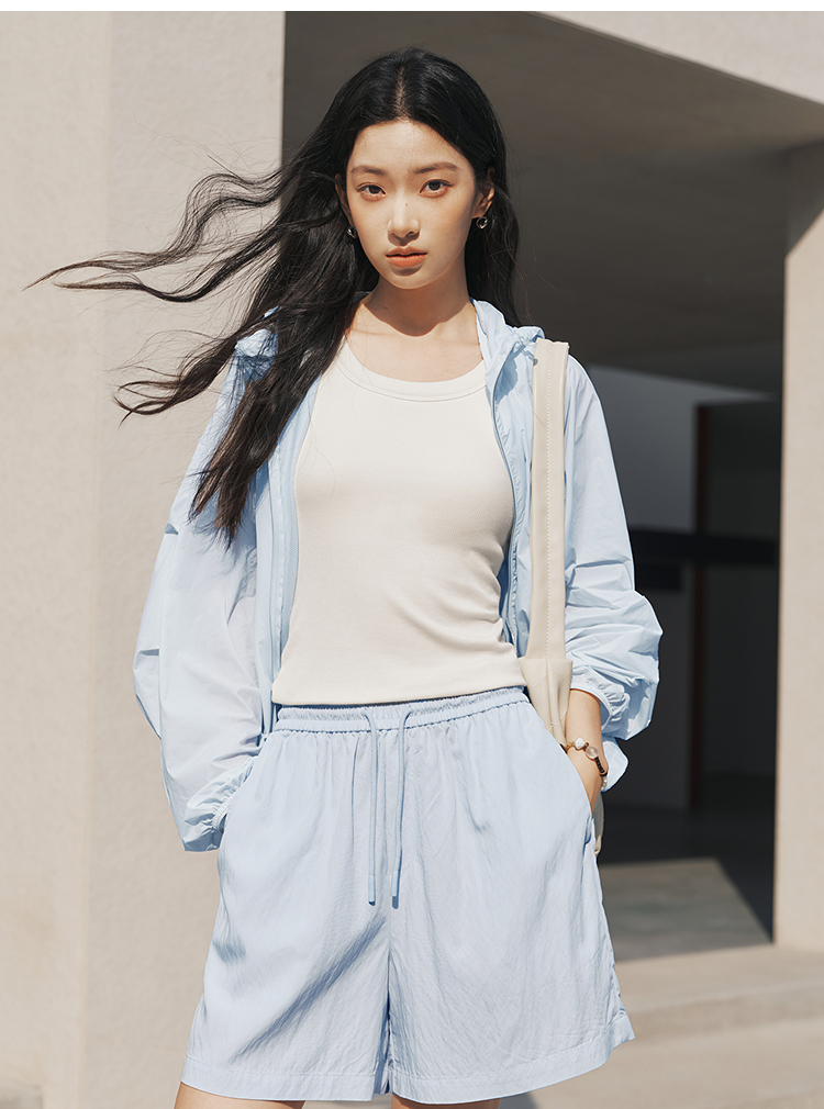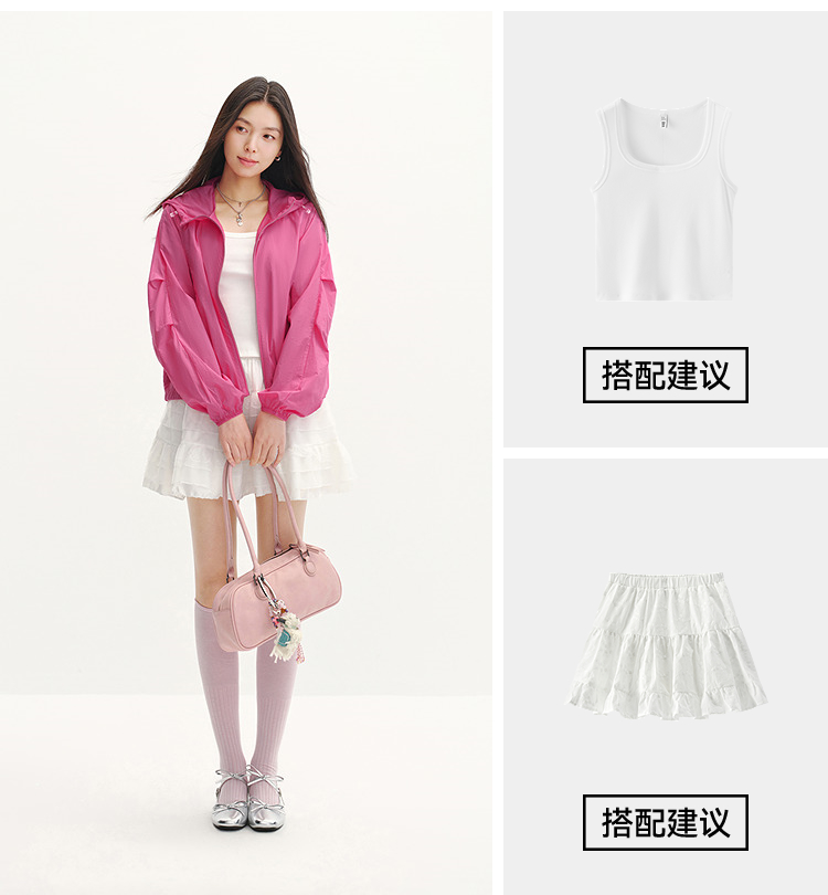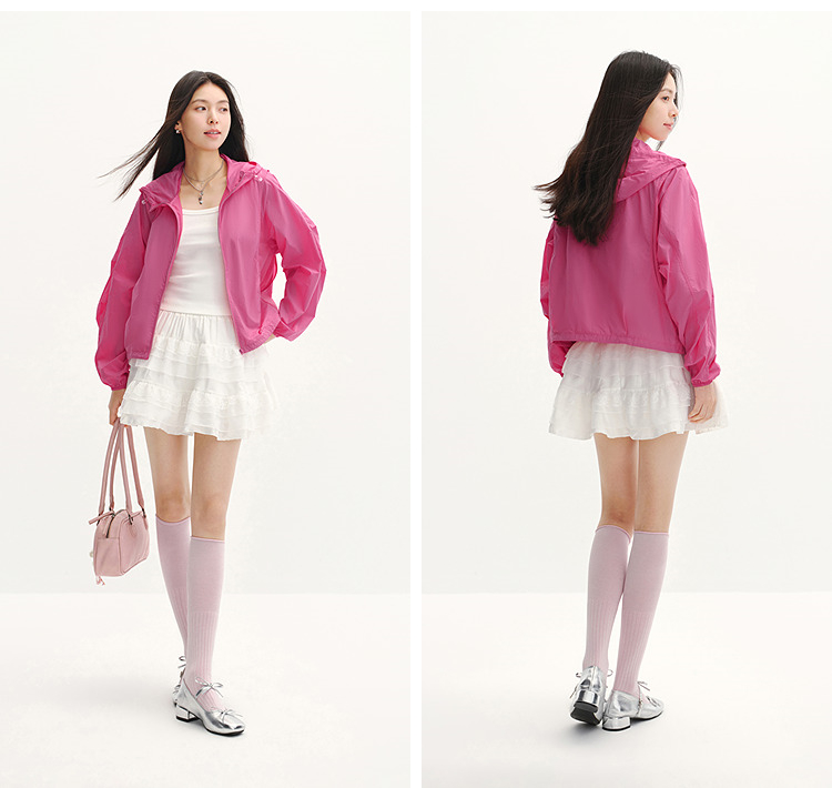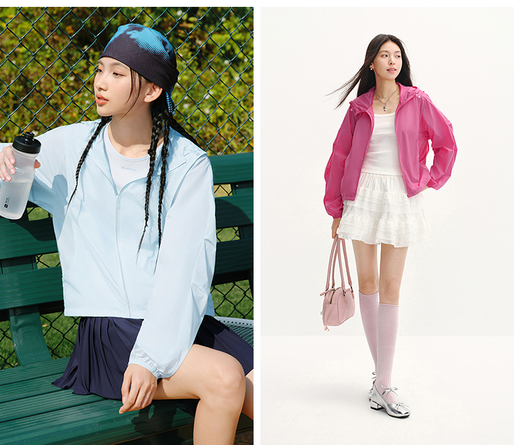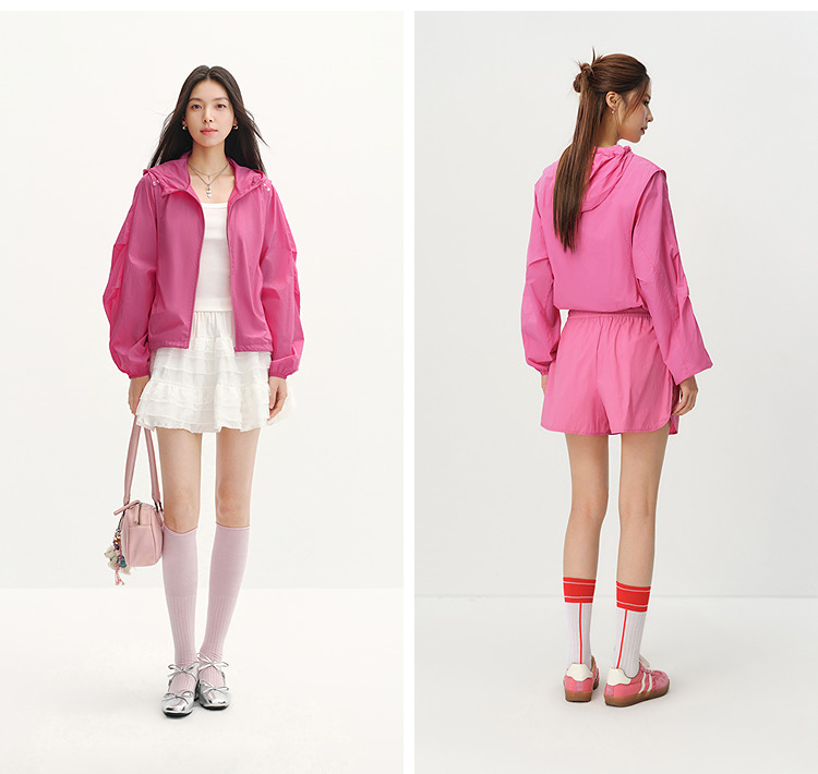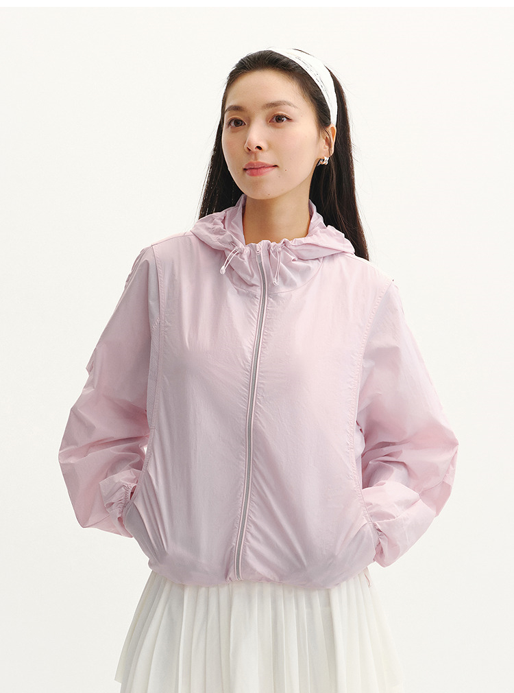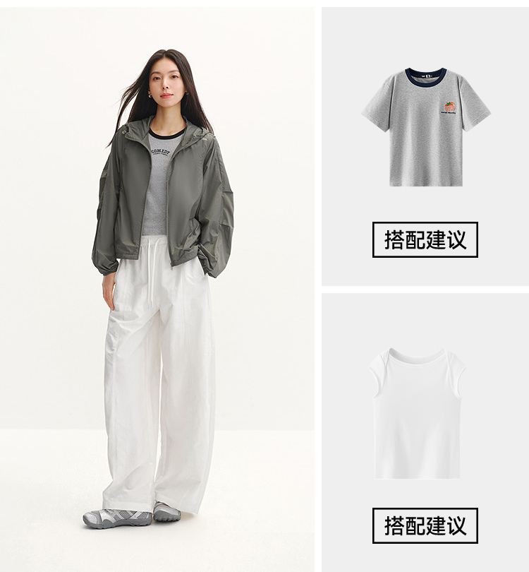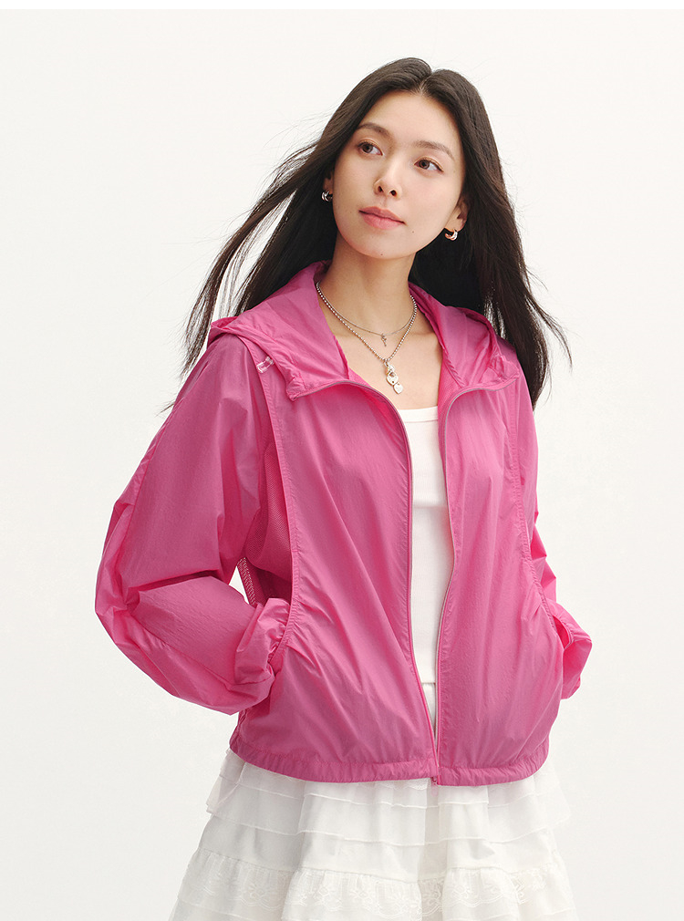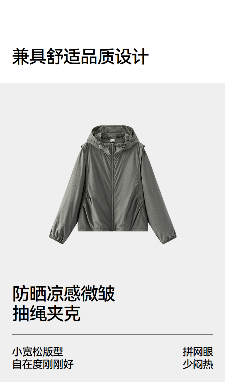 防晒外套|森马夹克女夏季凉感拼接网眼宽松连帽抽绳2026新款衣服
