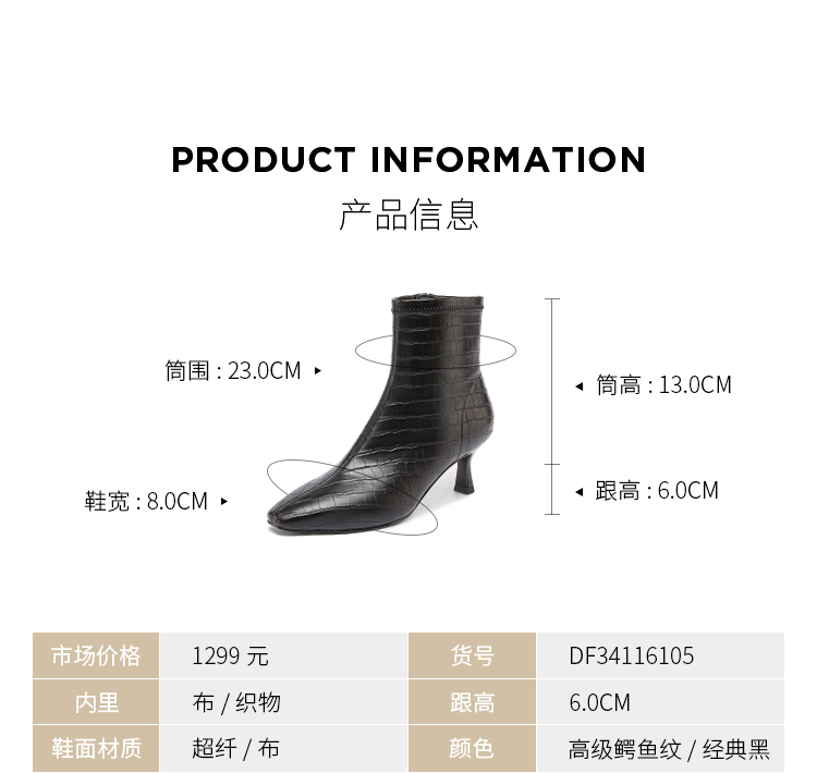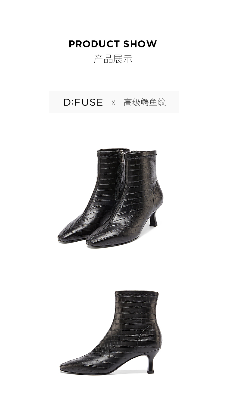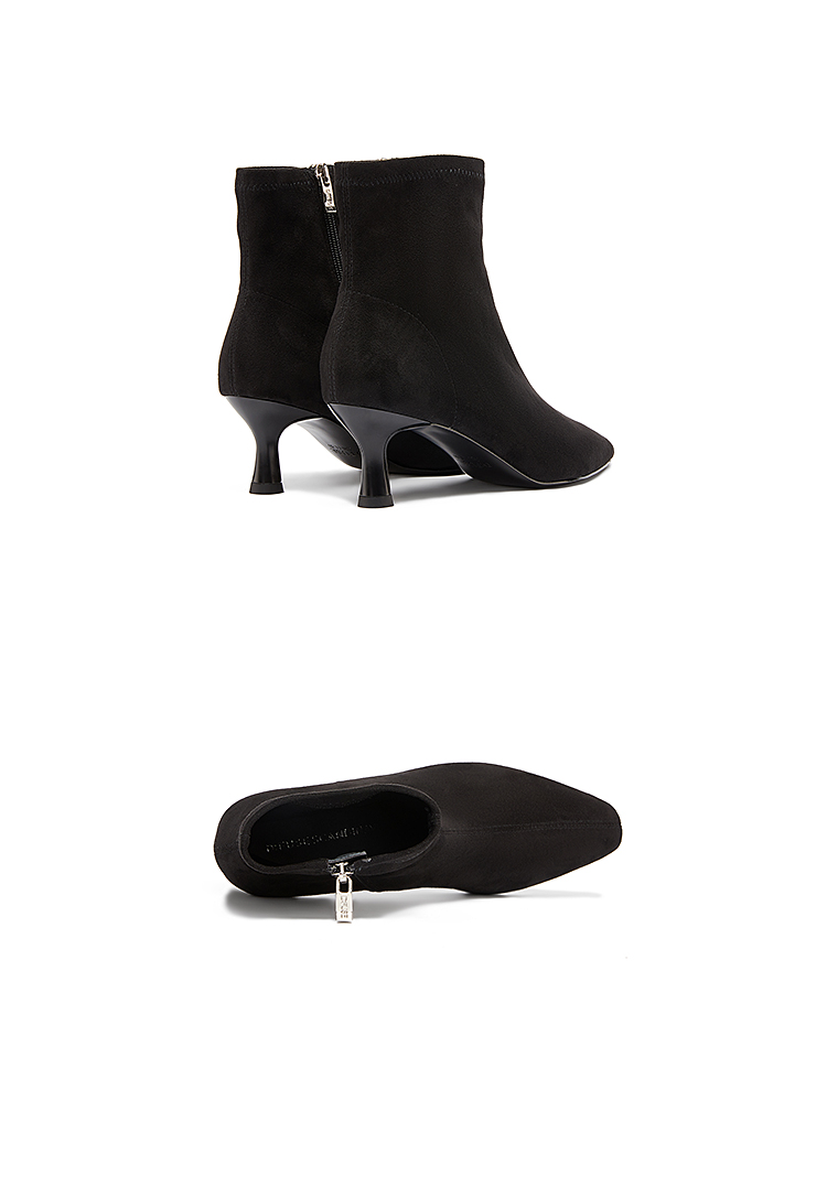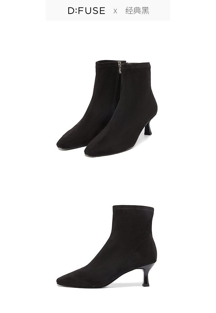 DFuse冬方头细跟弹力瘦瘦靴高跟短靴女显高显瘦绒面DF34116105