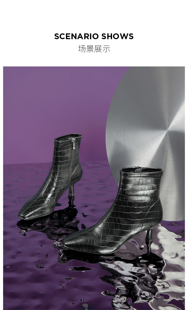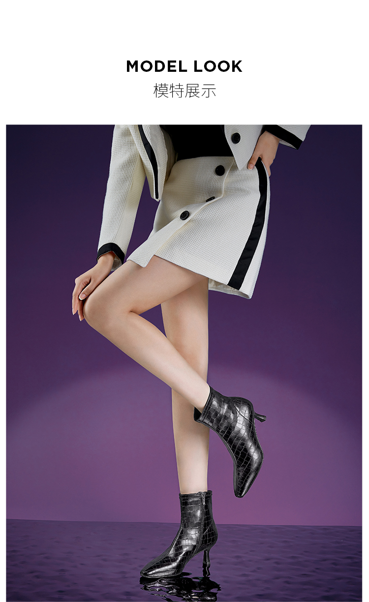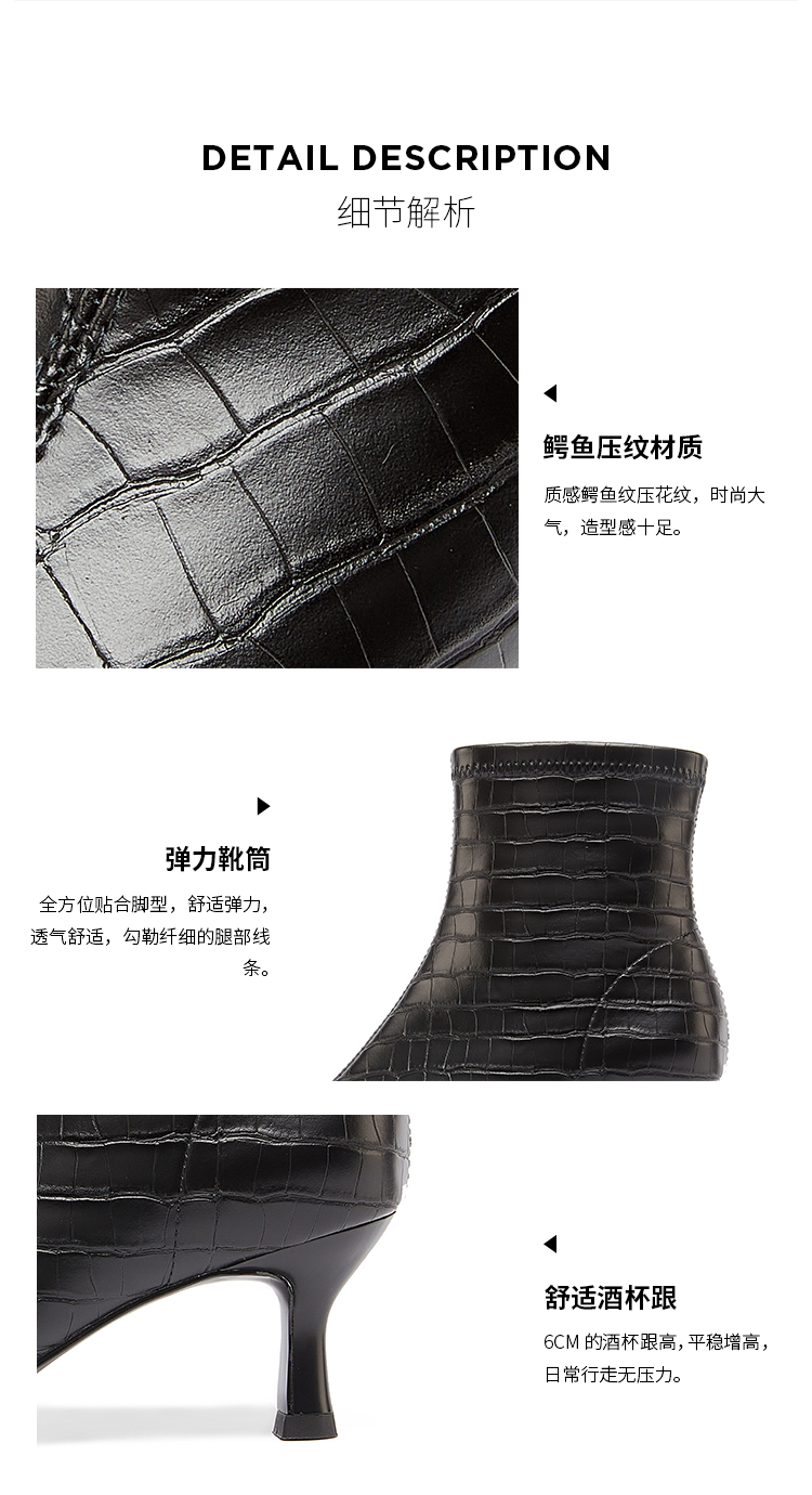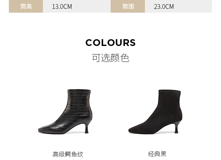 DFuse冬方头细跟弹力瘦瘦靴高跟短靴女显高显瘦绒面DF34116105