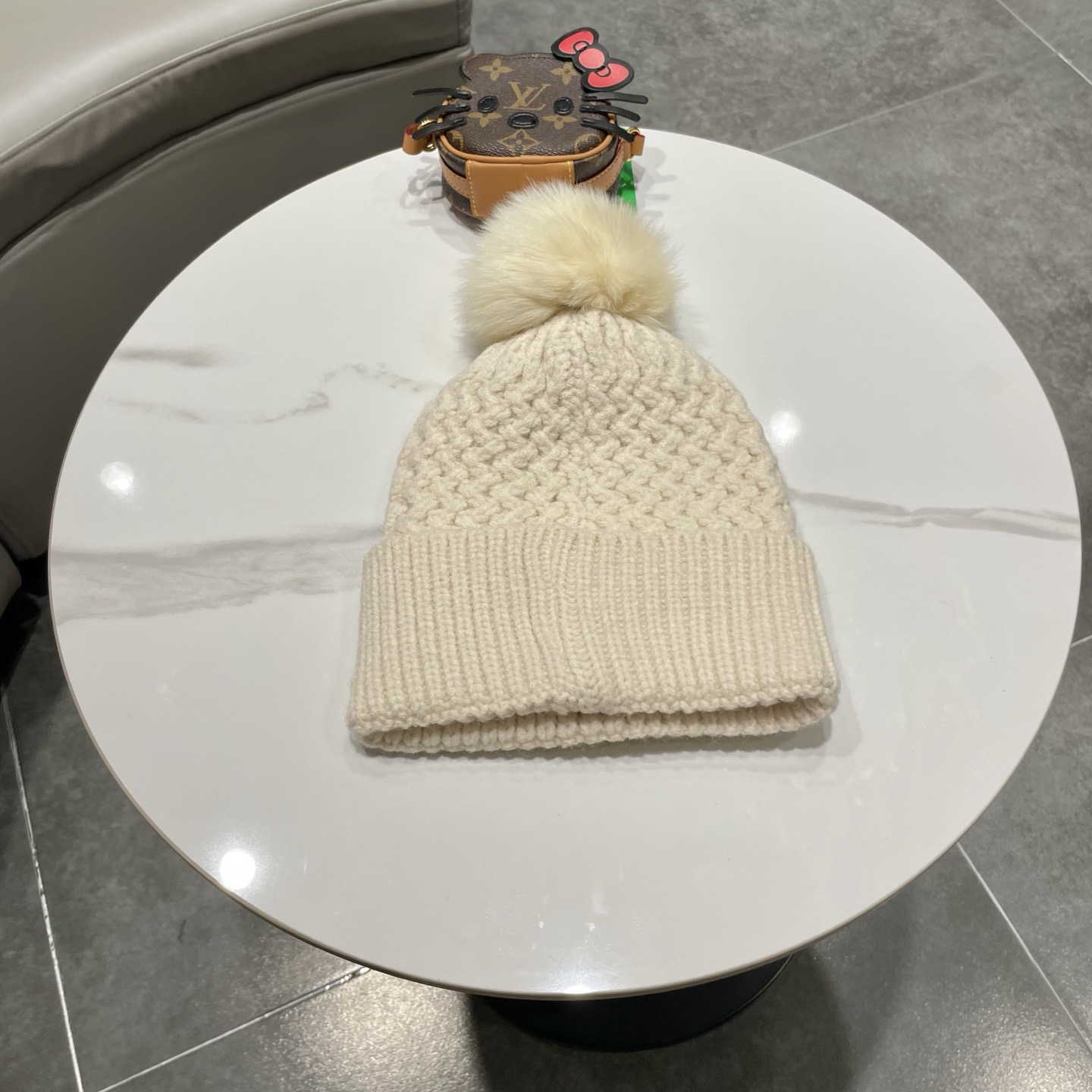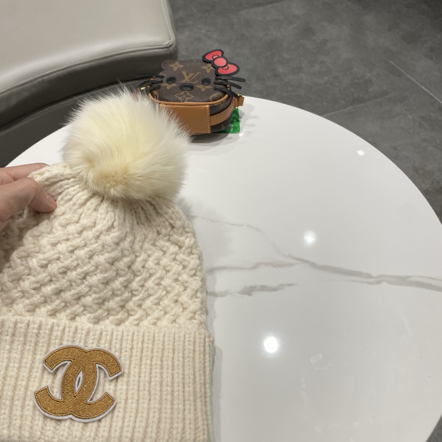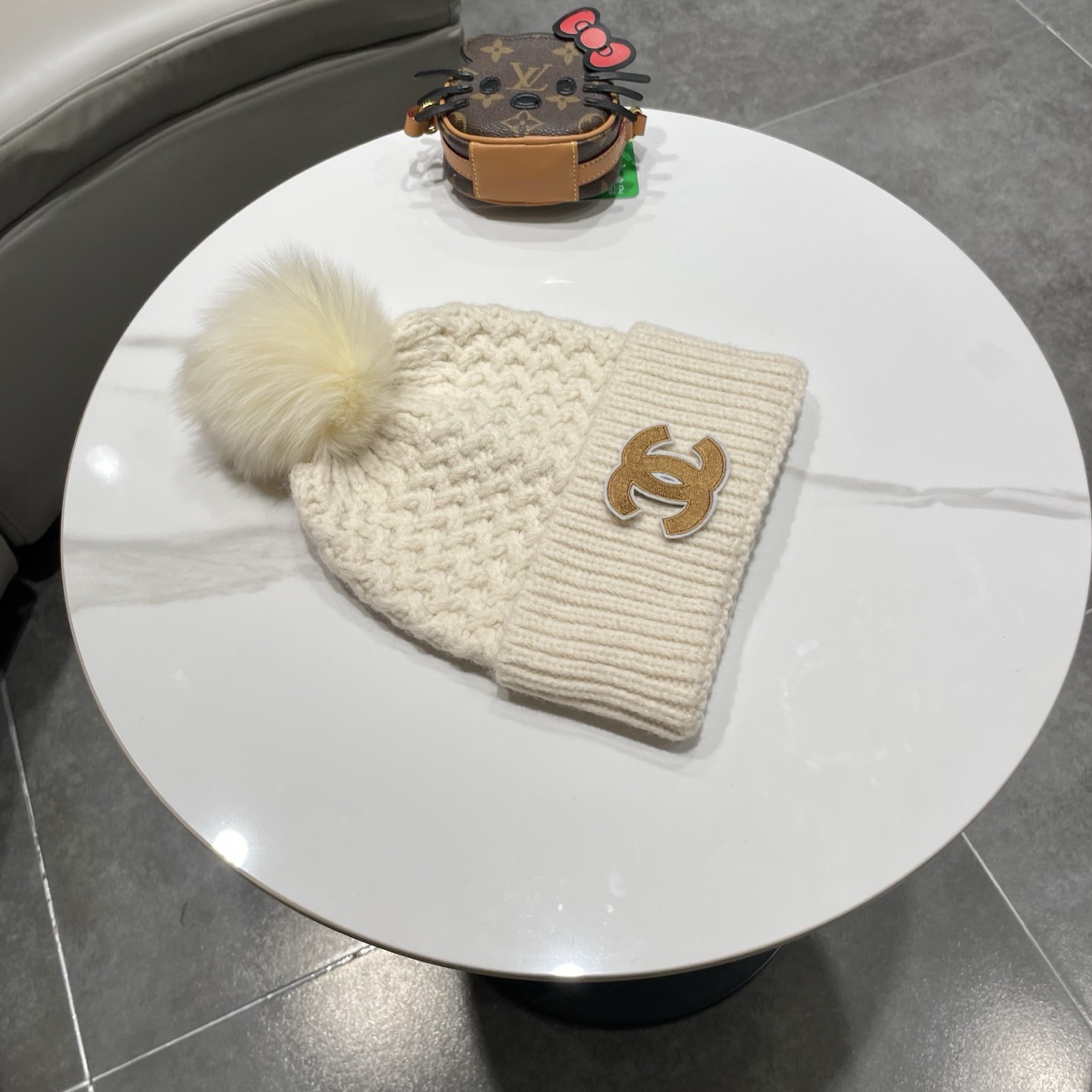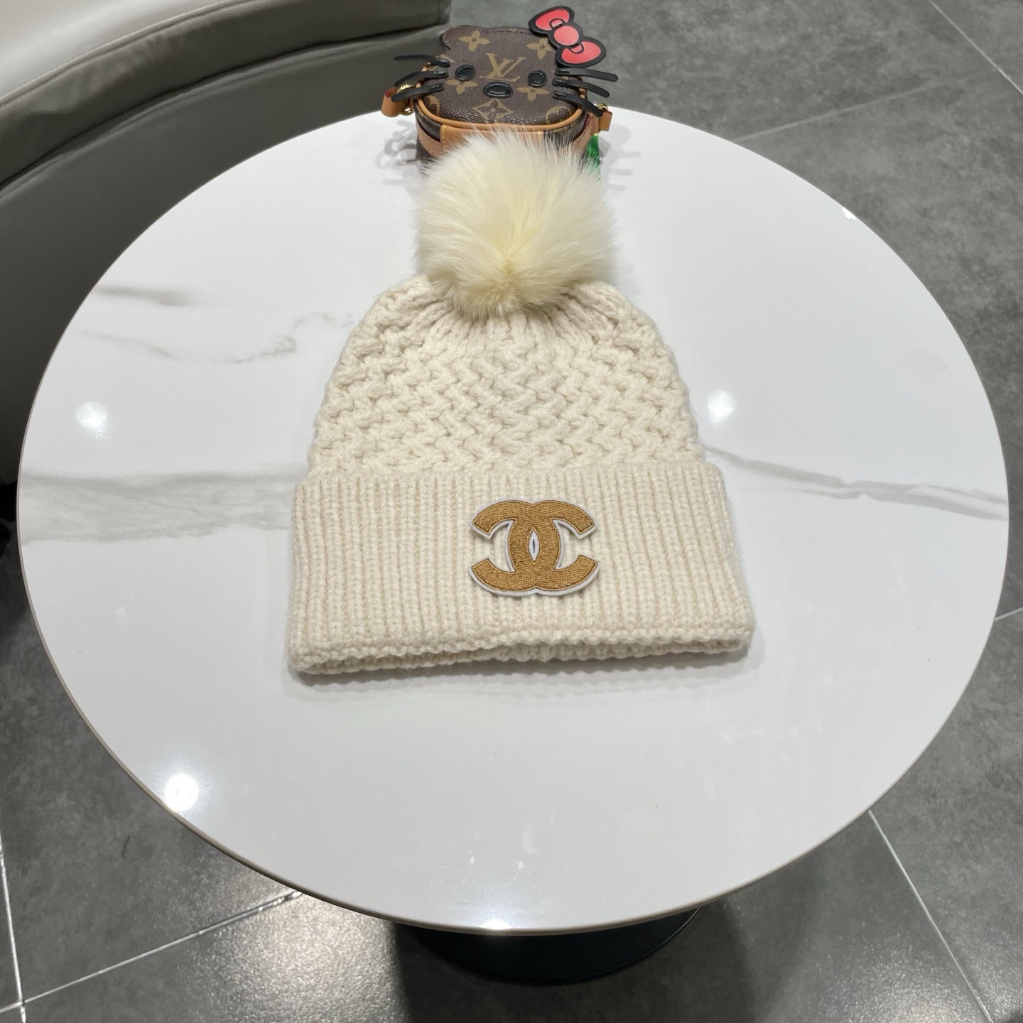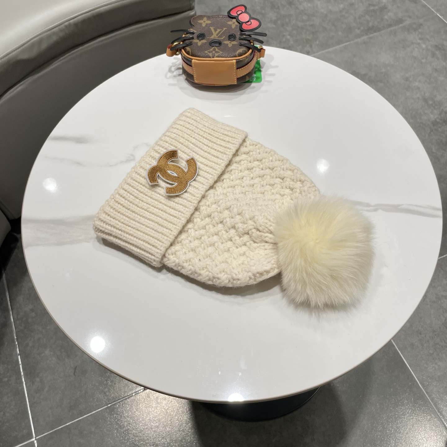 秋冬特惠💰180 香奈儿针织帽,菠萝纹理设计,金色双C标志点缀。帽子采用优质针织面料,编织工艺精致,帽身配有白色毛球装饰,时尚百搭。