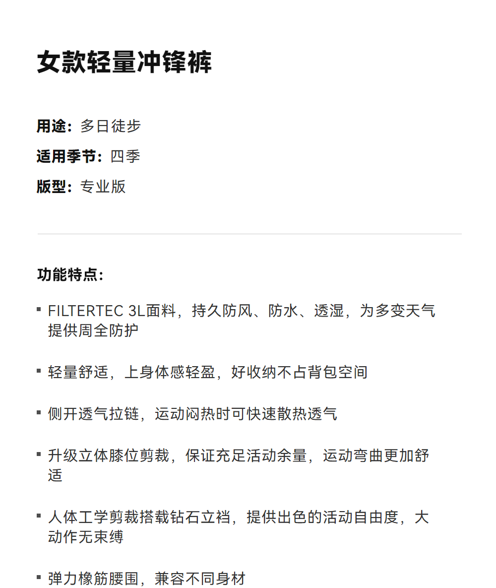 KAILAS凯乐石 女款冲锋裤 KG2611401