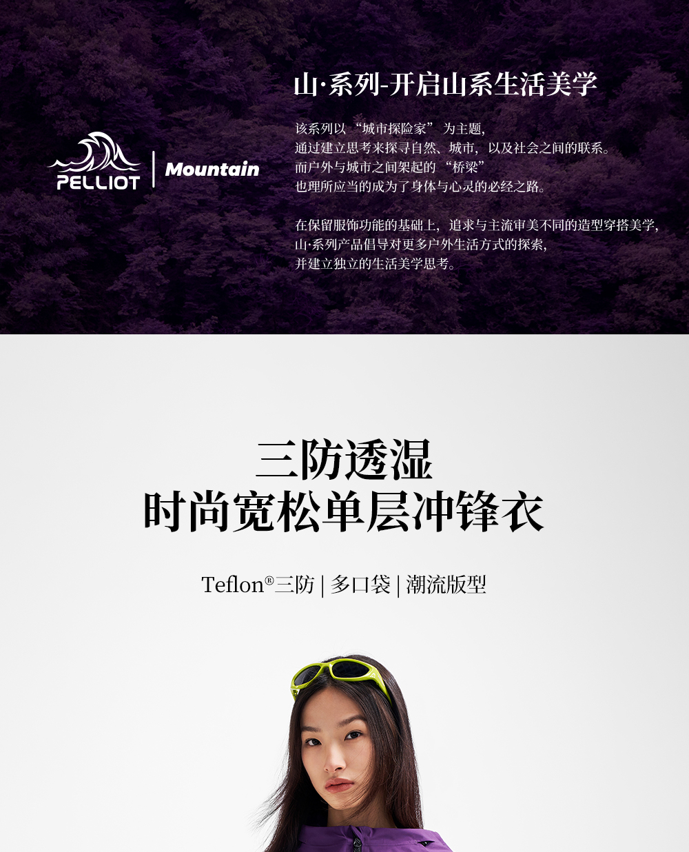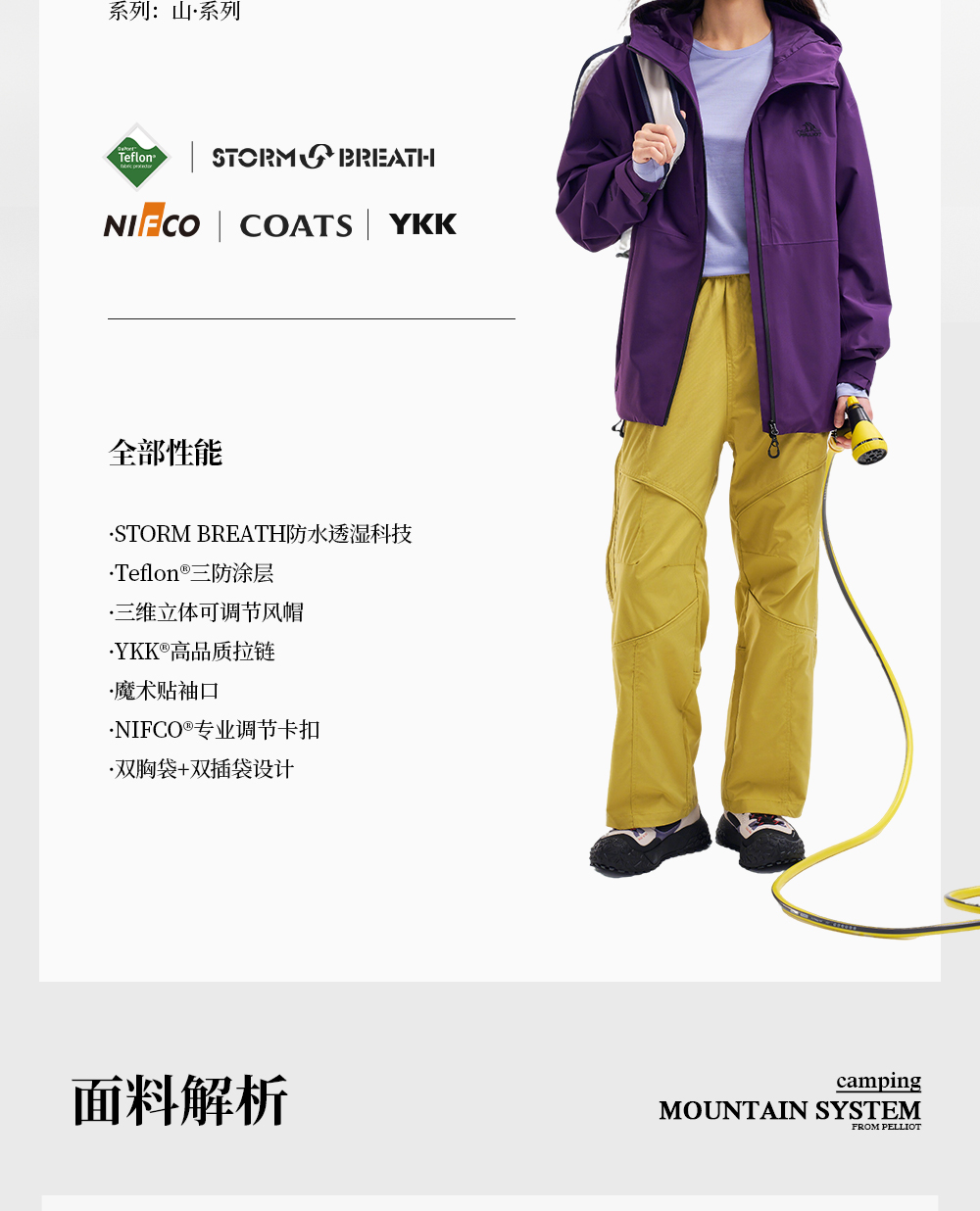 【山系】伯希和户外紫色冲锋衣2025新款防风雨时尚单层登山服外套