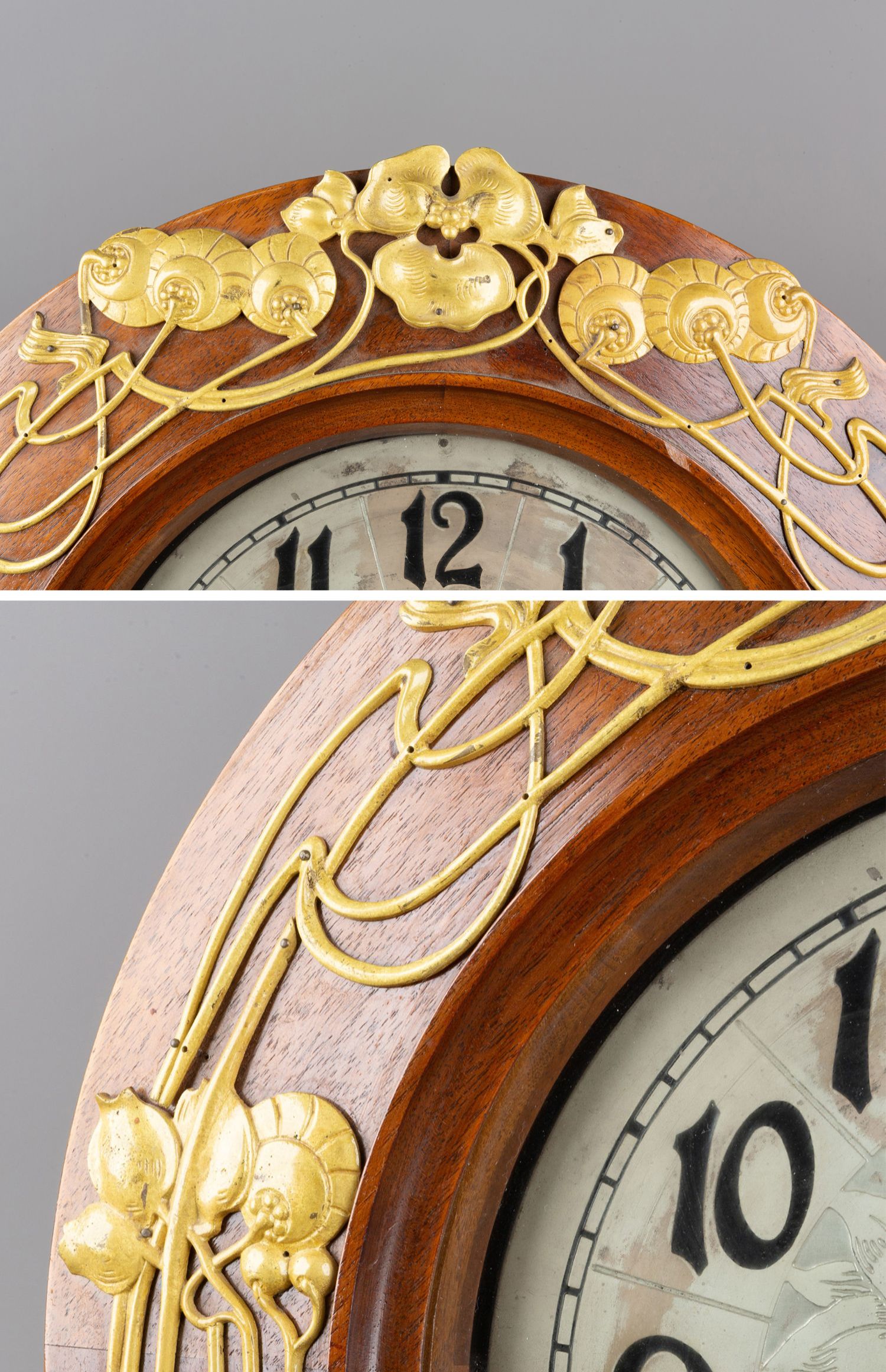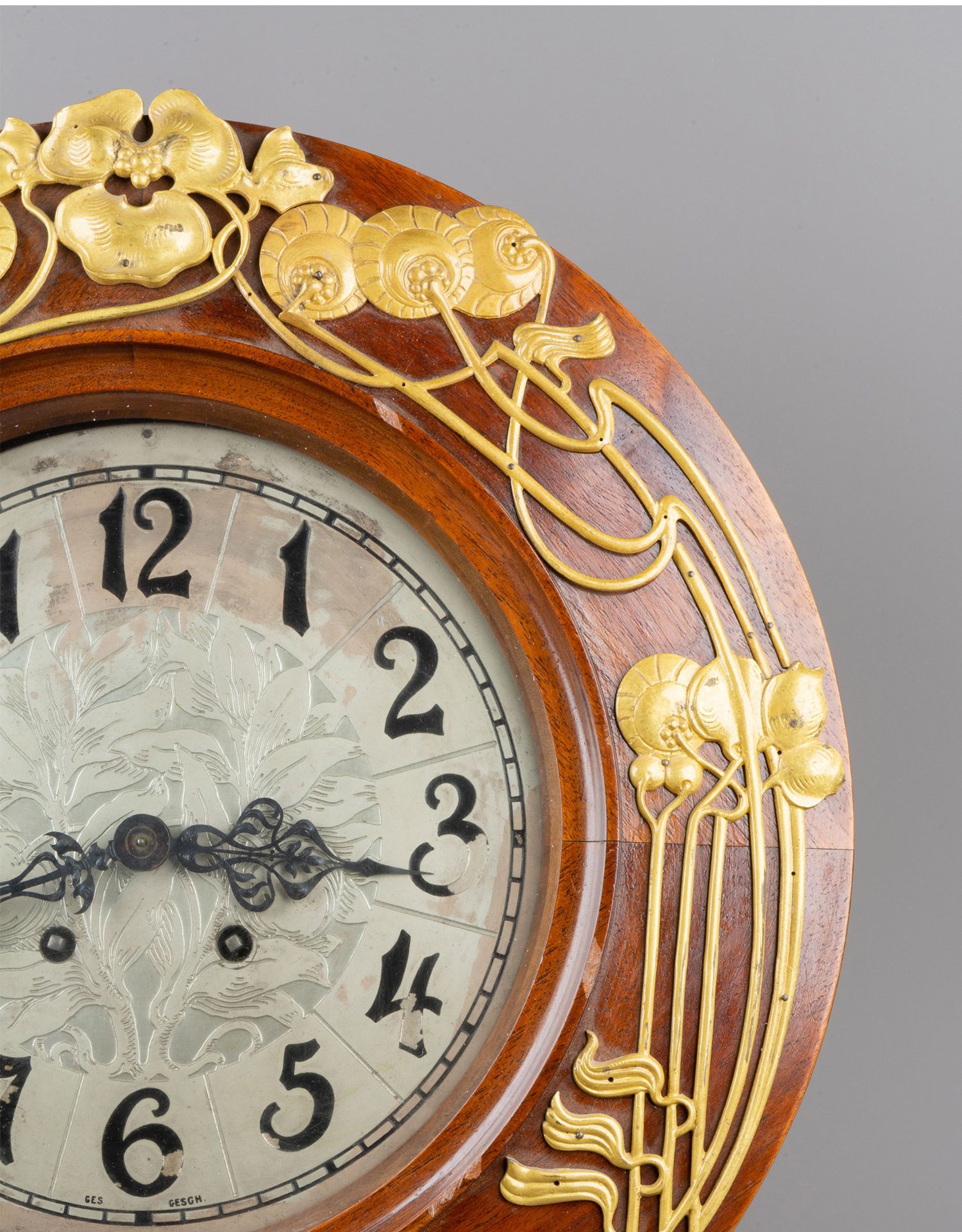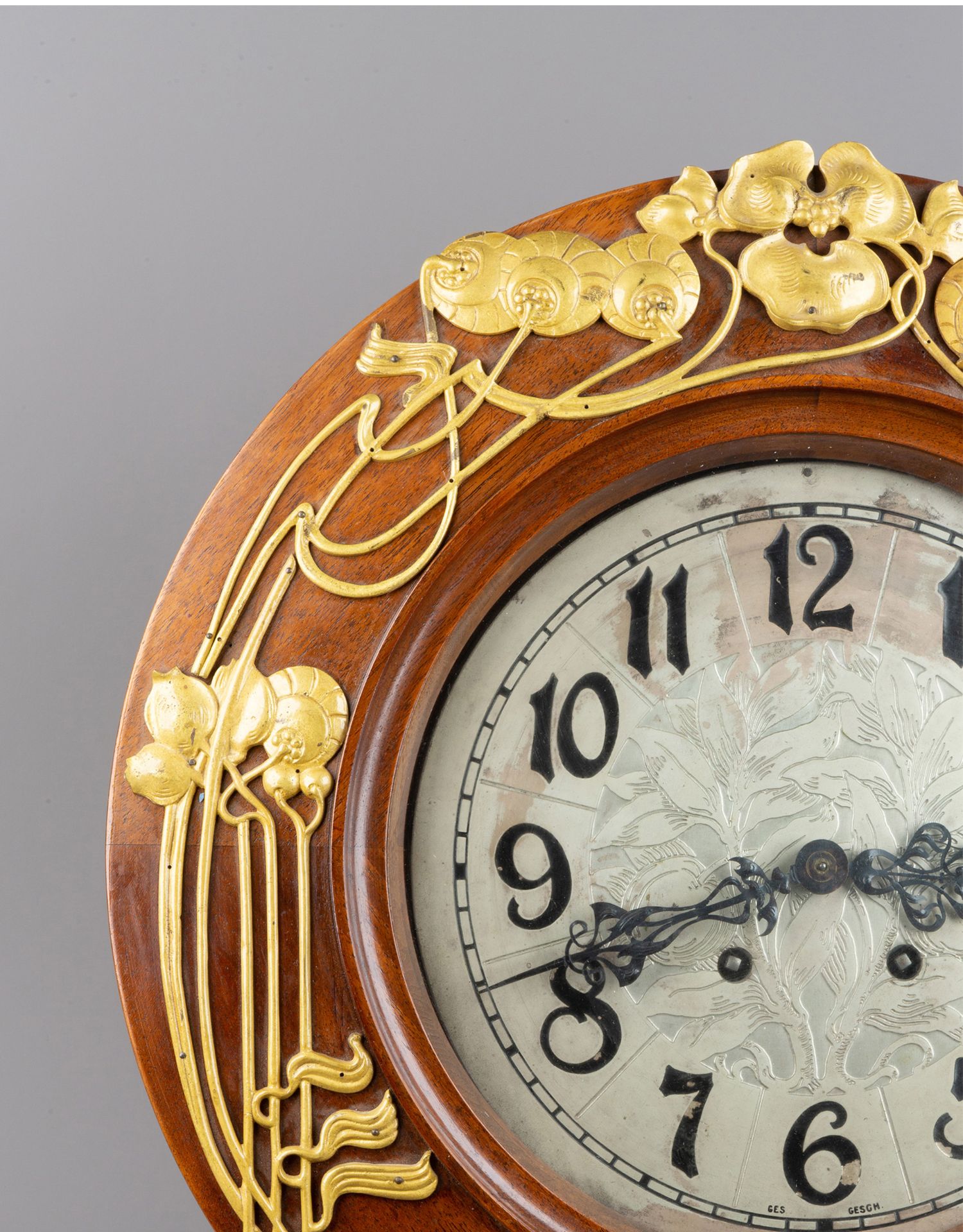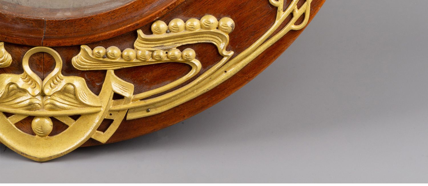 独角鹿西洋古董德国Lenzkirch新艺术风格花卉铜鎏金木质圆形挂钟