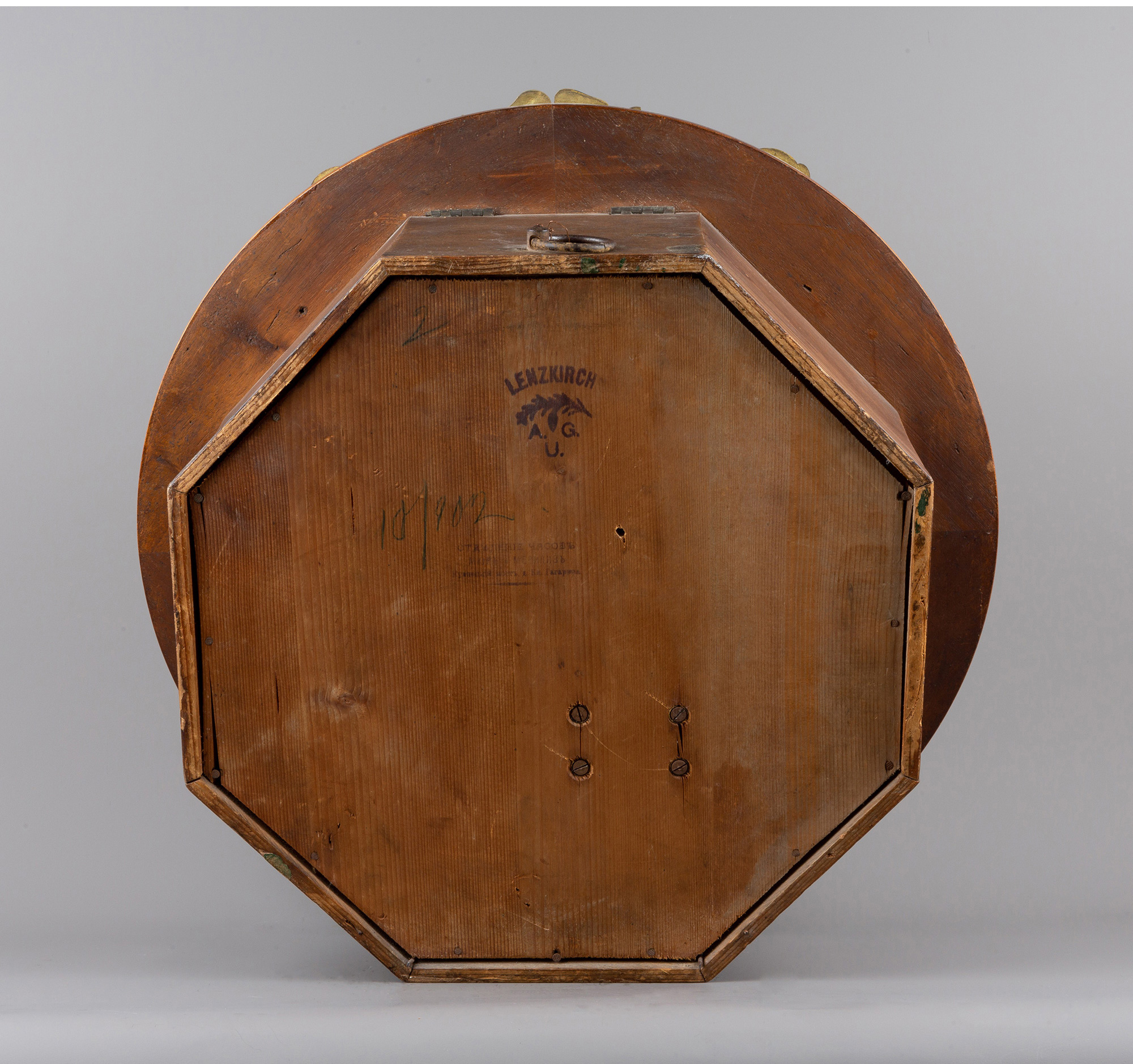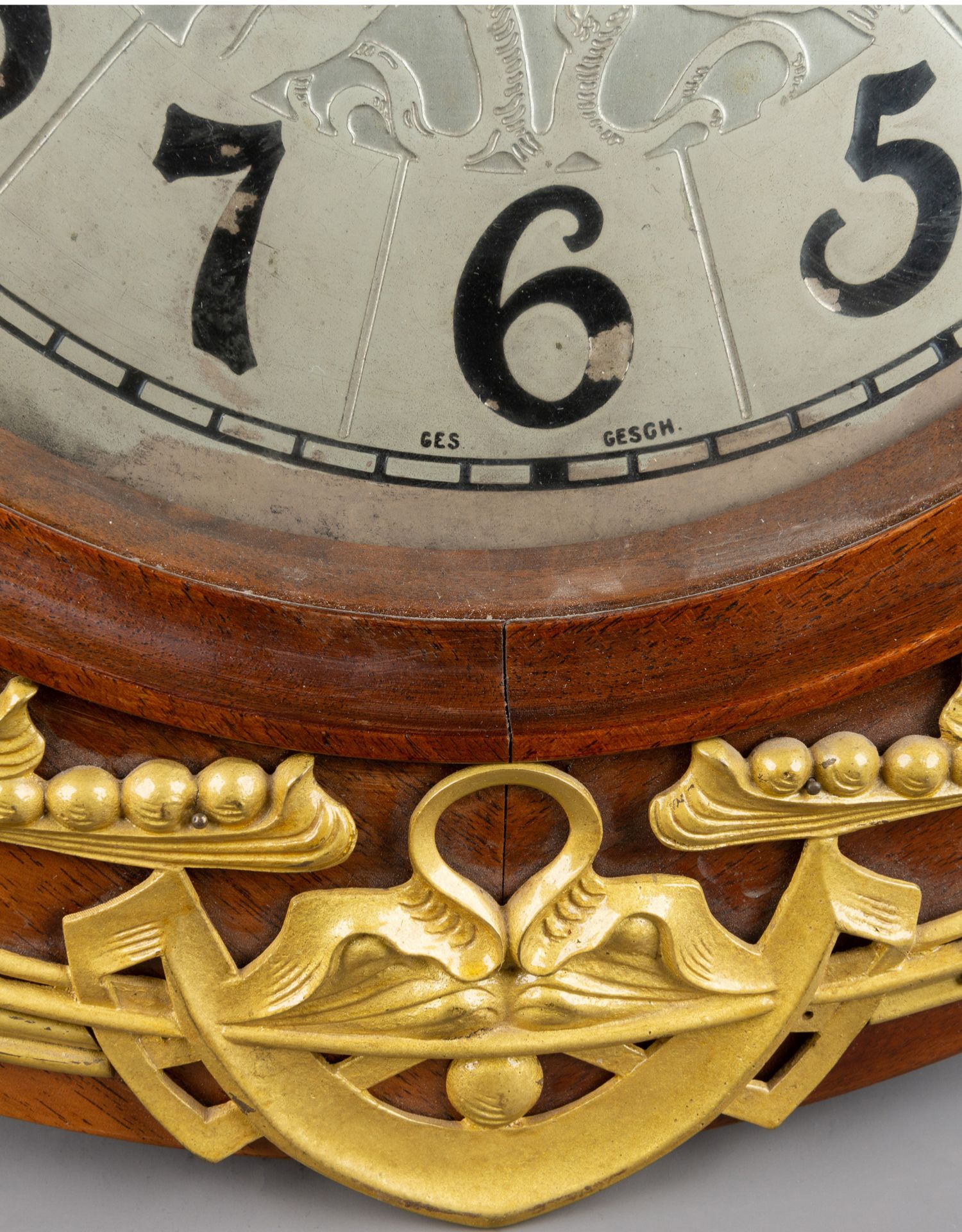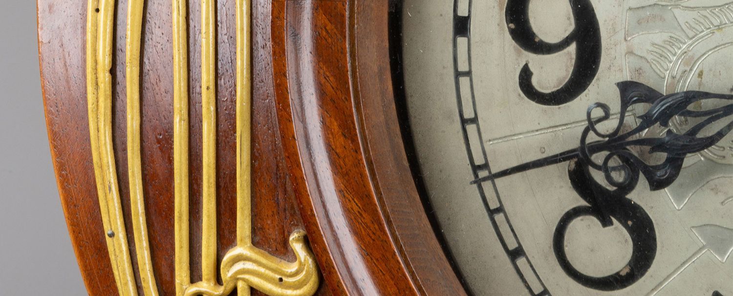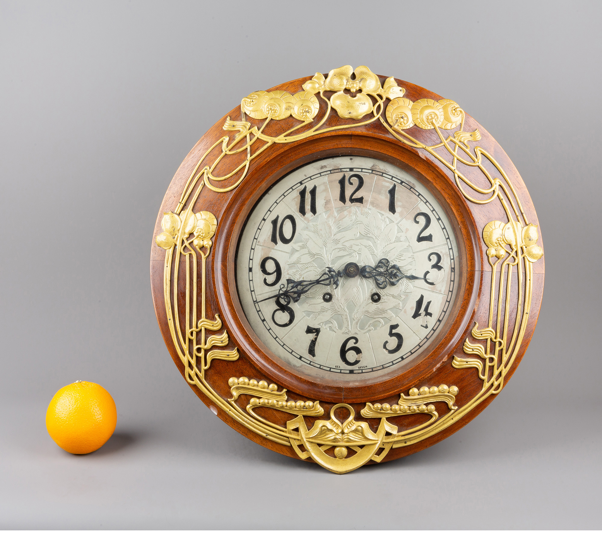 独角鹿西洋古董德国Lenzkirch新艺术风格花卉铜鎏金木质圆形挂钟