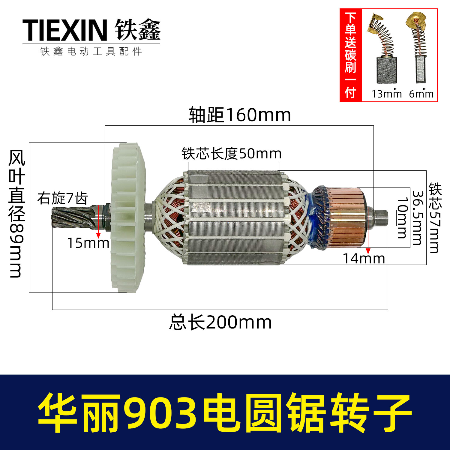 【货号02311】适配华丽903电圆锯转子7齿电圆锯电机9寸台锯7齿电机转子