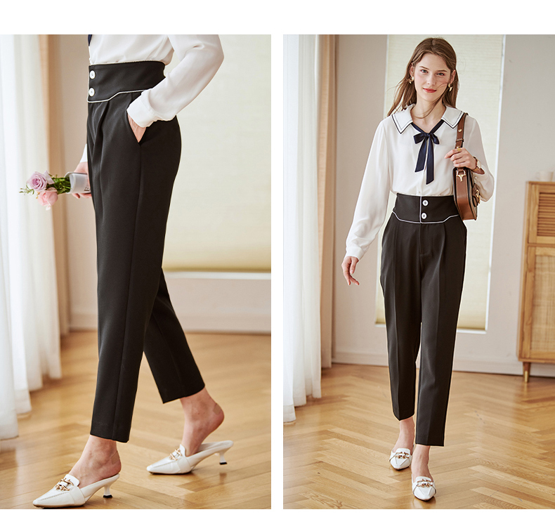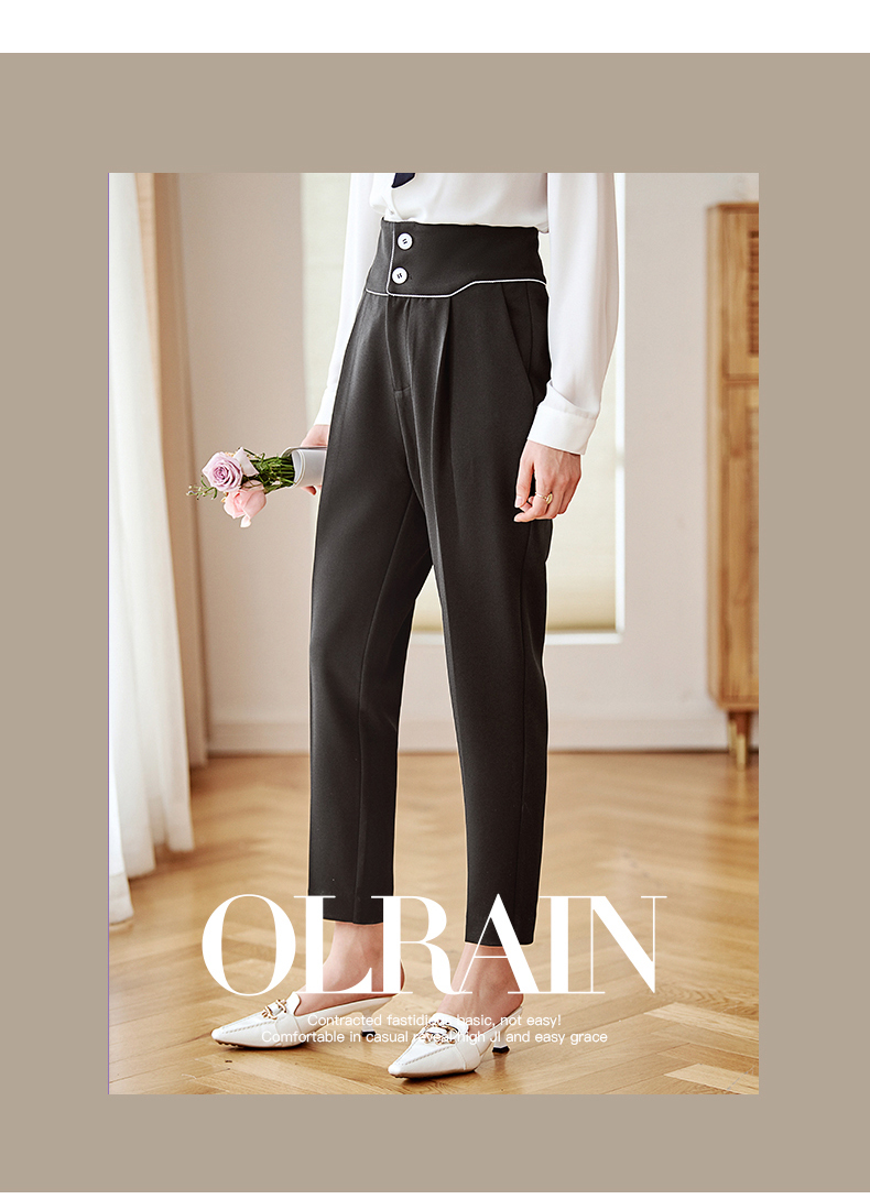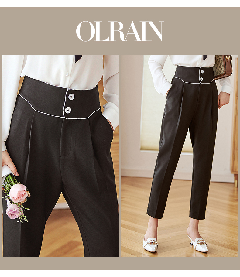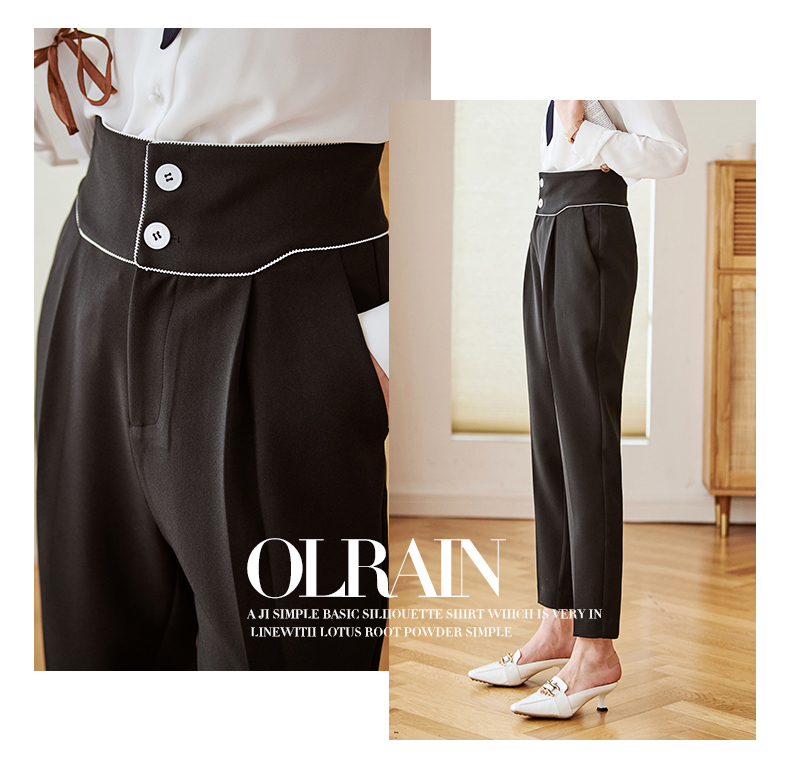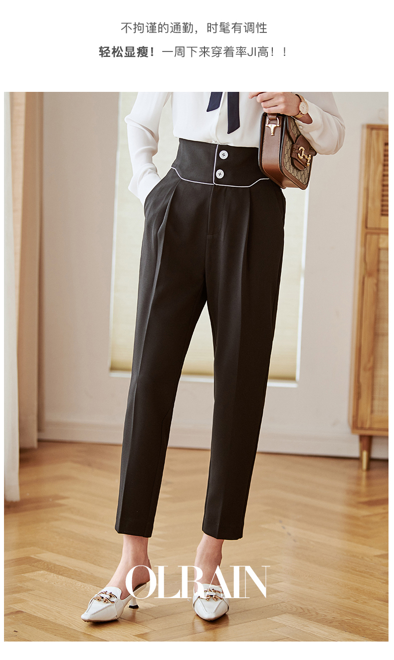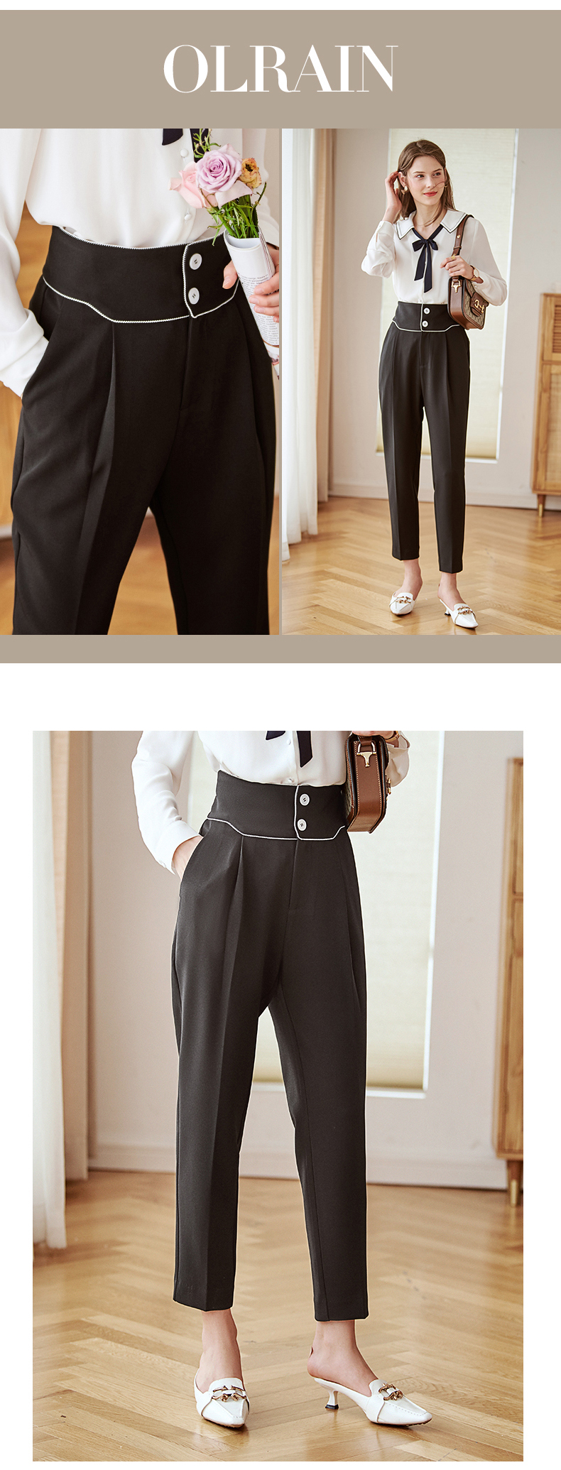 欧芮儿高腰显瘦休闲裤女2020秋季新款女装职业OL九分哈伦裤