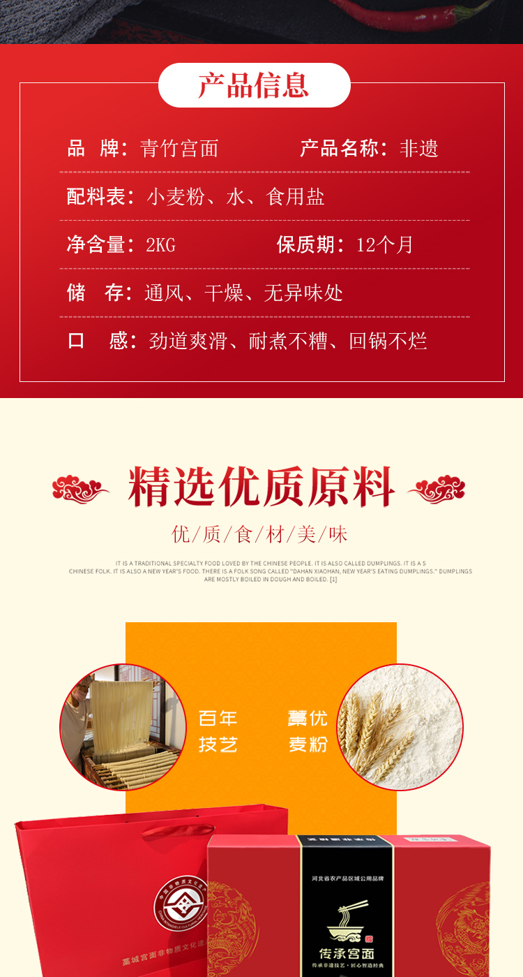 藁城宫面 青竹宫面 非遗礼盒装 非遗技艺 古法传承 老字号 国家地理标志产品 2kg(200g*10盒)