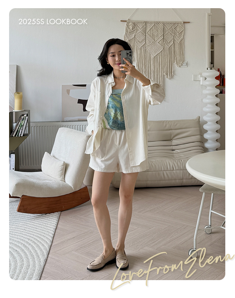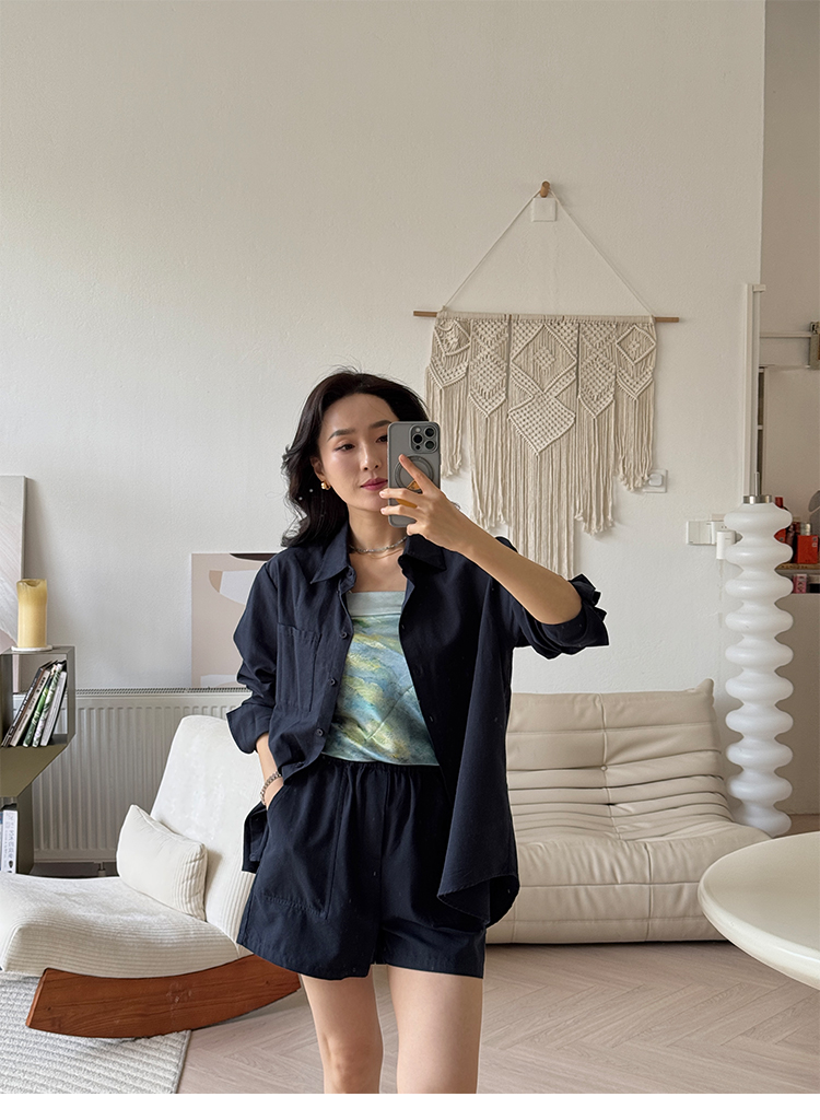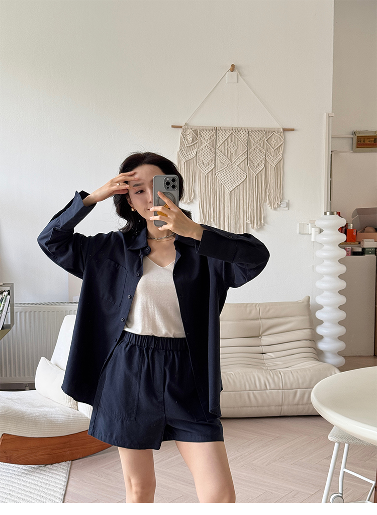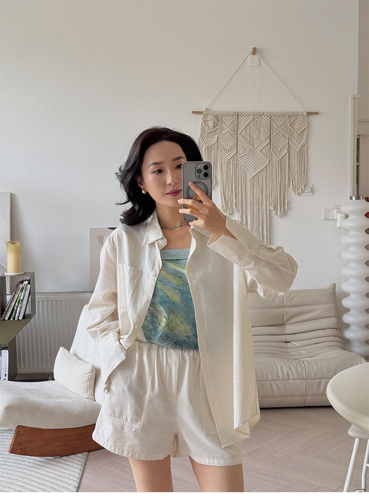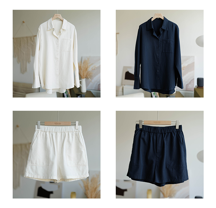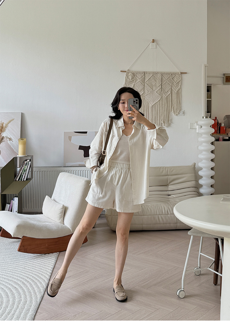 亚麻混纺 宽松简约休闲感衬衣&短裤套装