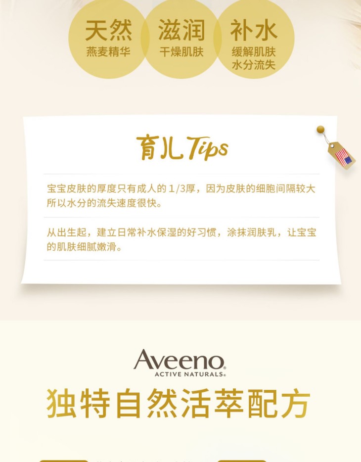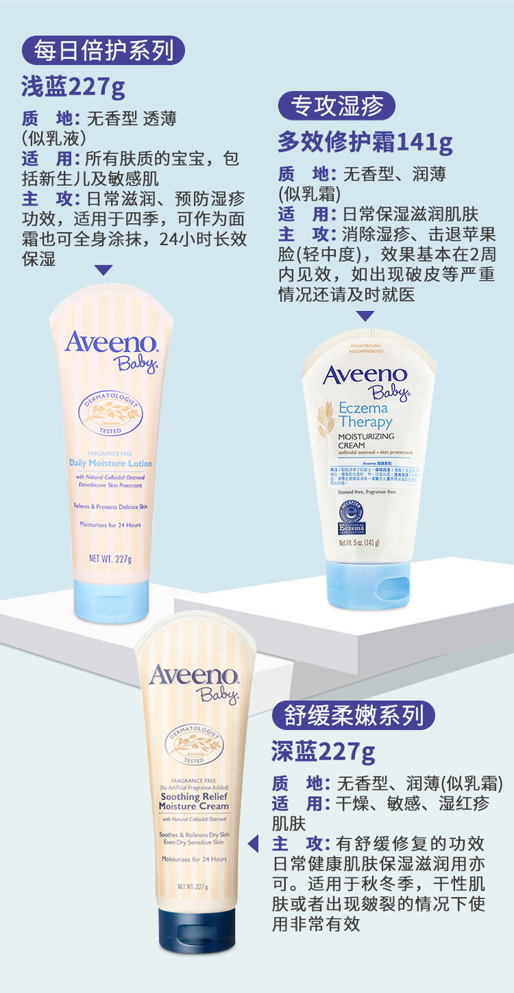 (超值)美国艾惟诺Aveeno 婴儿保湿润肤乳 护肤修复霜141g 面霜227g