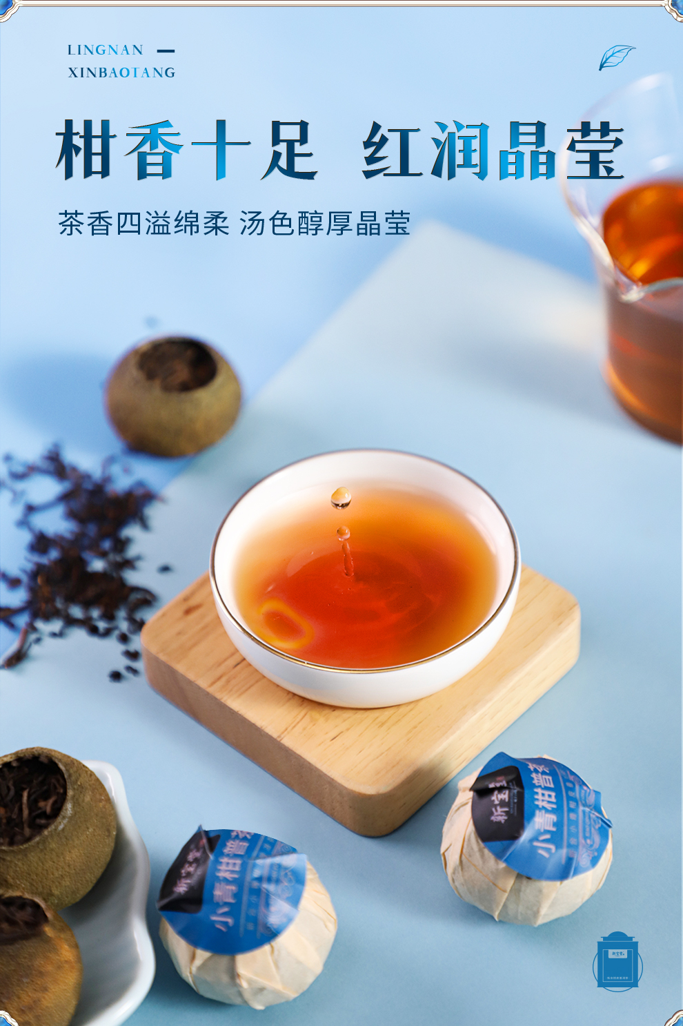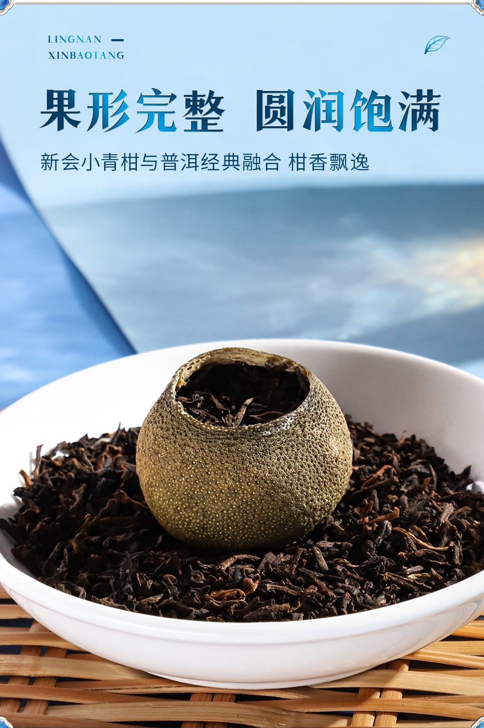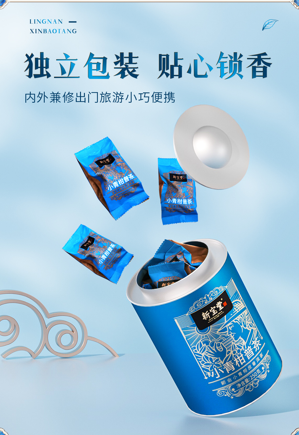 岭南新宝堂新会小青柑普茶熟茶送礼礼盒蓝罐250克