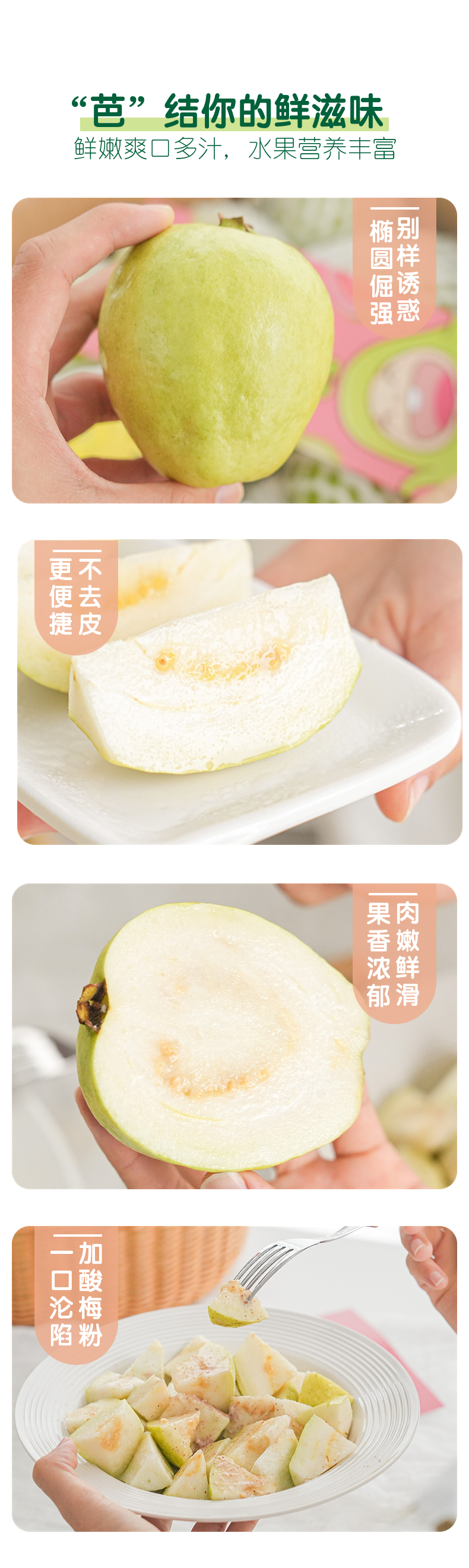 (3)、由于快递运输途中,部分番石榴表面可能出现花皮或擦伤现象,轻微碰伤削皮不影响果肉食用不在理赔范围内哦,若有影响果肉可以在24小时内提供明显坏果和面单合照申请赔付哦。