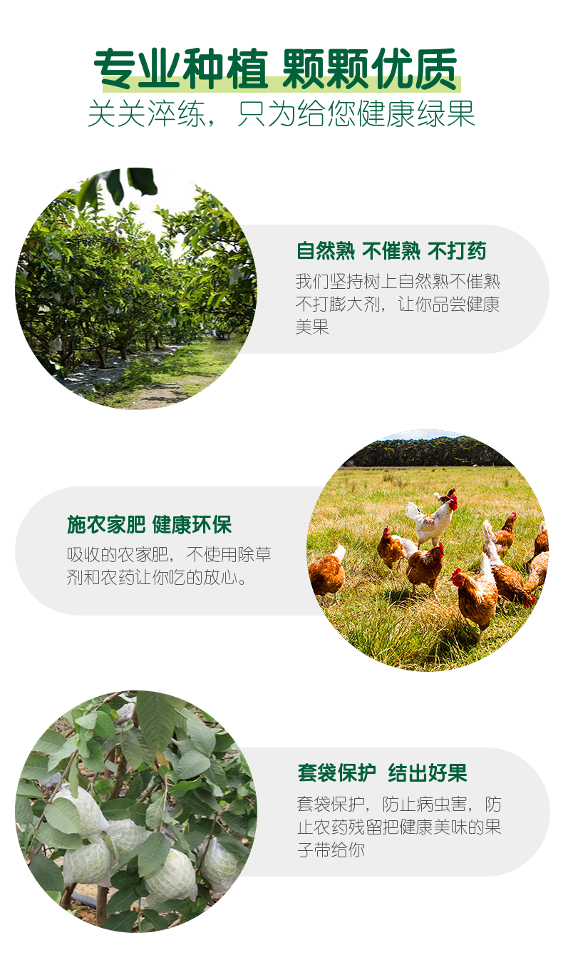 (1)、由于芭乐在生长过程中为了物理防虫是套网袋成长的,网袋会有些许的透光,如果生长在光照比较充足位置会引起红色太阳斑点属于正常现象,此类并不影响果肉的食用不在理赔范围内哦。