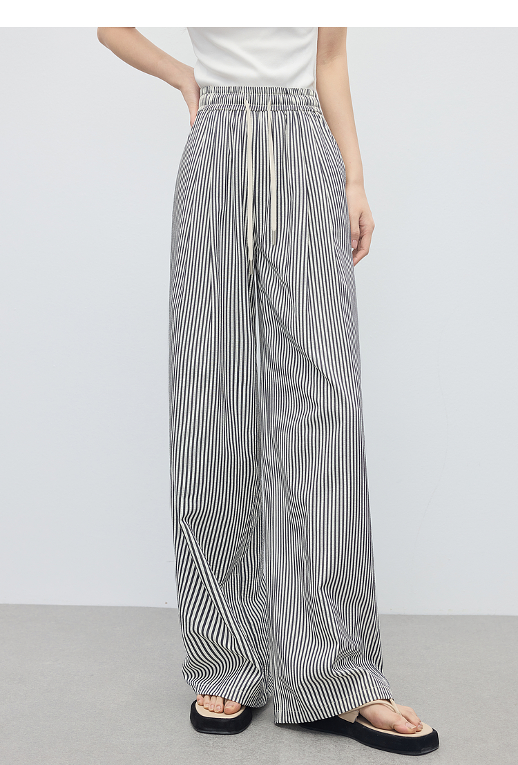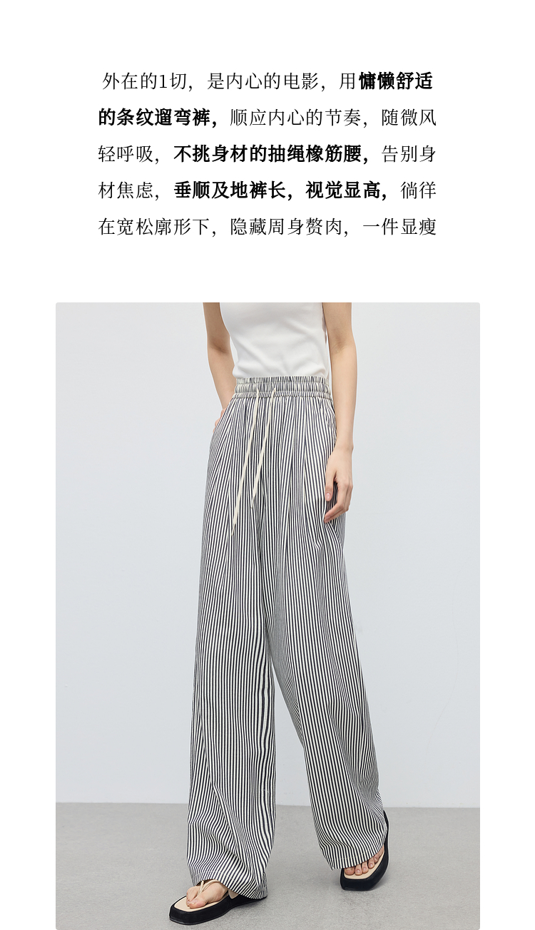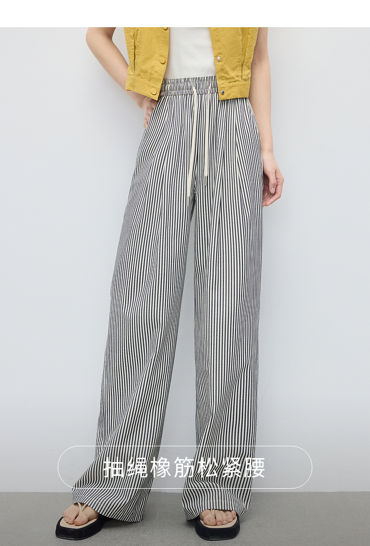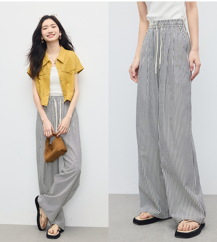 【周末秒杀】熙世界条纹阔腿裤薄款女夏季2025年新款休闲宽松遛弯裤直筒长裤子
