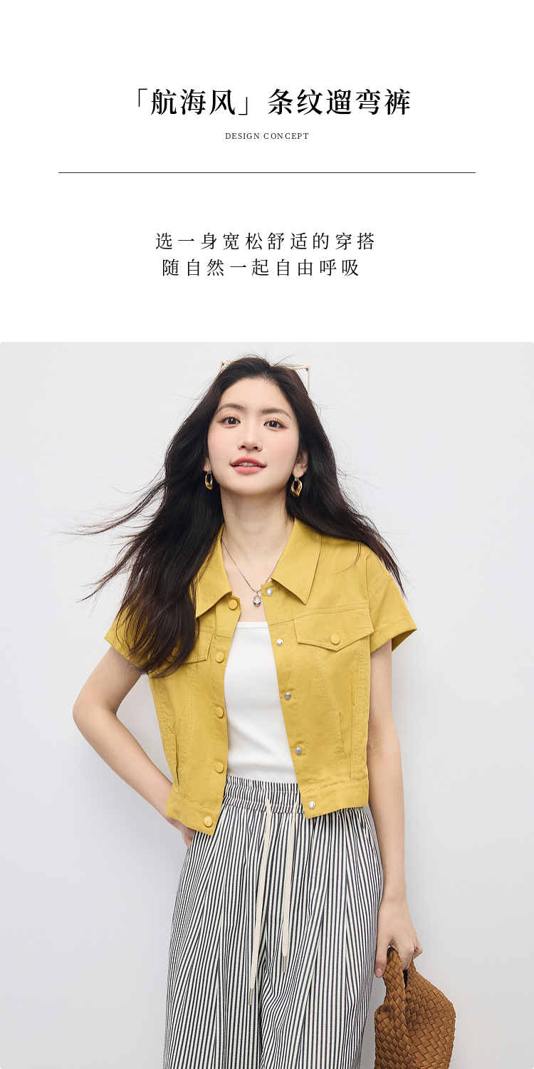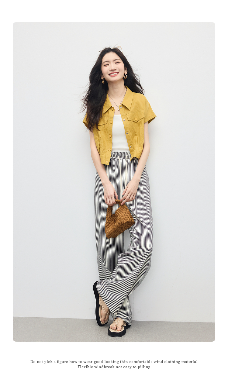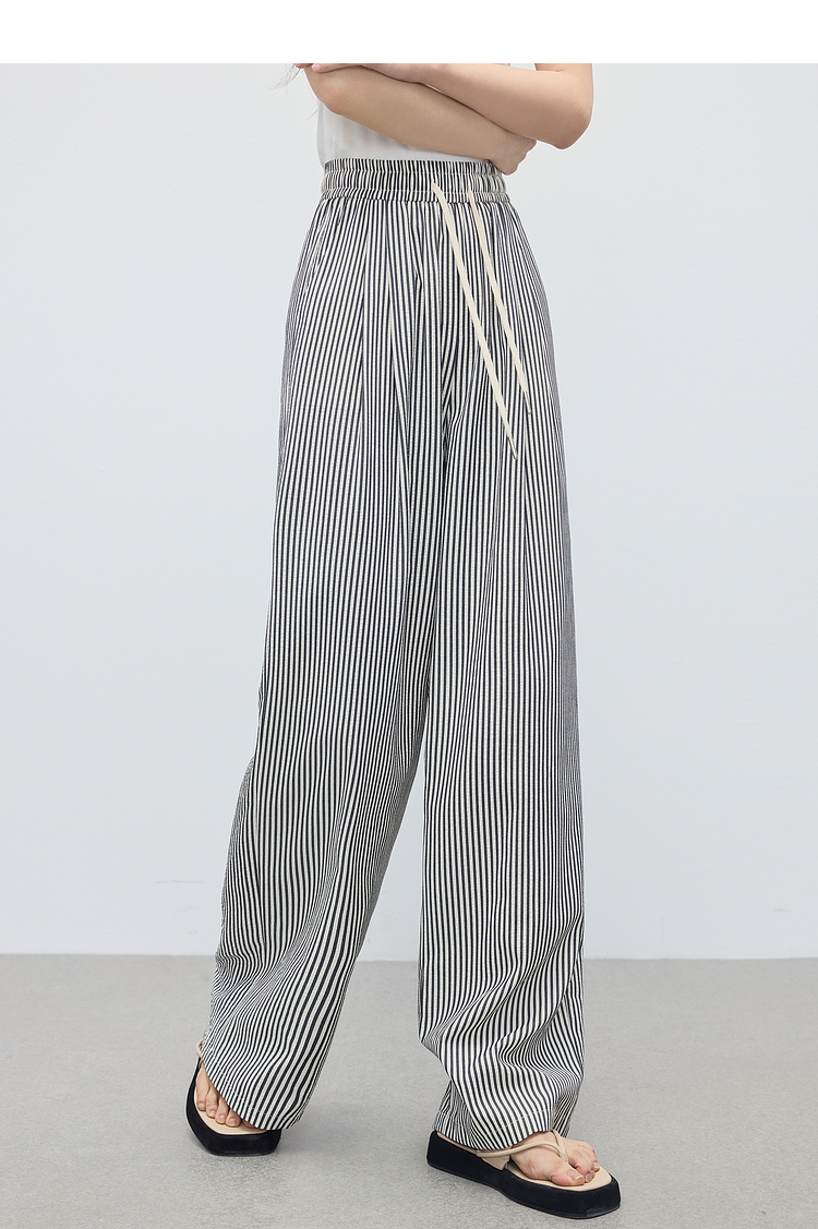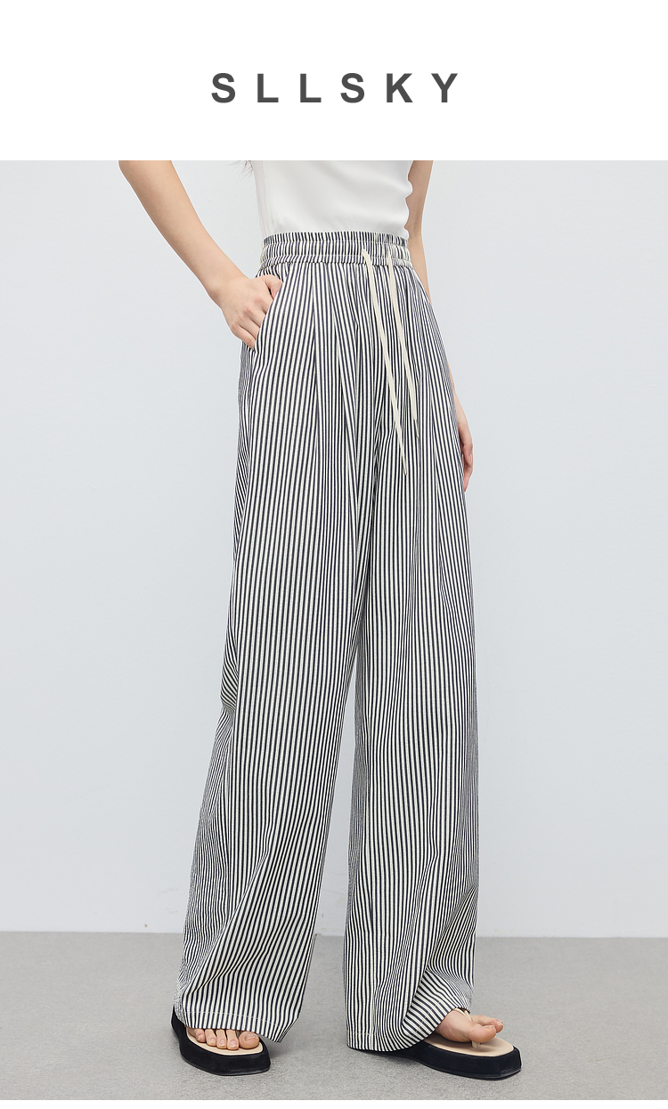 【周末秒杀】熙世界条纹阔腿裤薄款女夏季2025年新款休闲宽松遛弯裤直筒长裤子