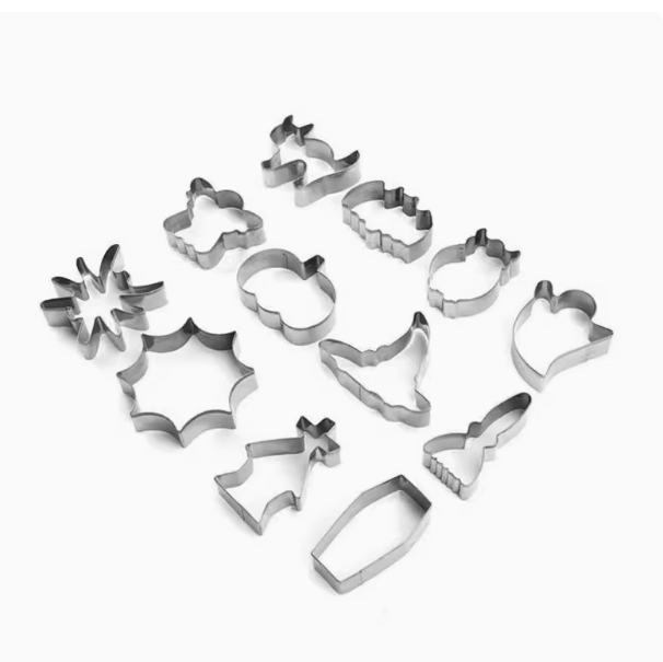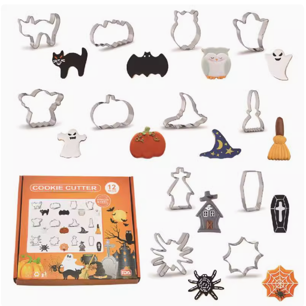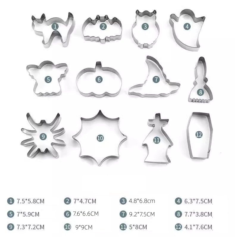 不锈钢万圣节饼干模12件套 南瓜猫头鹰蜘蛛幽灵蝙蝠等形状DIY饼干模具